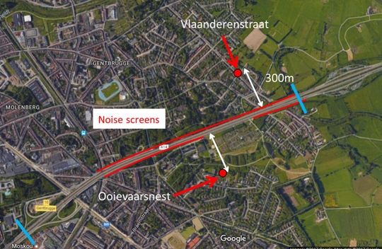 A A A Volume : 44 Part : 2 Evaluation of the renovation of an urban highway viaduct using citi- zen science low-cost noise monitoring Luc Dekoninck 1 Ghent University – Departement of Informationtechnology - Waves Technologiepark Zwijnaarde 126, 9052 Ghent, BelgiumABSTRACT A main highway in Belgium (E17) transect the urban area of the city of Ghent with a viaduct since 1970. This highway is the main north-south artery for heavy traffic from and to the ports of Antwerp (BE) and Rotterdam (NL).The viaduct has significant maintenance issues and was subjected to mul- tiple noise control actions in the past. Since 2014 a local citizen initiative named ‘Viadukaduk’ - mimicking the sound of the viaduct- is organizing the public engagement to resolve the environmental issues in a structured approach. The condition of the viaduct was rapidly declining in the last years. In March 2020, the Flemish government initiated a major renovation project. Prior to this renovation (2015), low-cost noise measurements were performed at two dwellings at either side of the viaduct. In 2020, at the beginning of the renovation, the noise measurements were restarted at the two dwell- ings. The renovation suffered from several delays and was completed in October 2021. The new sit- uation, post-renovation can be assessed on the data collected from November 2021 onwards. The two datasets, 2015 and 2020/2022 are used to perform a citizen science based noise evaluation of the renovation of the viaduct. At the south side of the viaduct a gap in the noise screens was closed. The impact of the changes in noise barrier type, road surface and bridge joints can be evaluated in the measurement point at the north side of the viaduct. Preliminary results show an effect of 7 dBA at the south side. The impact of the renovation itself is limited to 1 dBA. These types of citizen engagements are common in the air pollution field and that public engagement resulted in significant improvements awareness, the related legislation and policy actions. This citi- zen based initiative for noise exposure shows that similar public engagement and measurement cam- paigns can add value in the noise exposure field as well.1. INTRODUCTIONNoise monitoring is a standard method to evaluate the state of the environment with many aspects. Within the acoustic community, high quality noise monitoring is the standard approach for all appli- cations related to noise regulations. Yet, since over a decade, the number of applications of low cost noise monitoring has grown significantly. Numerous cities already implemented larger noise moni- toring networks, sometimes a combination of high quality and low quality measurement equipment (Barcelona, Lille, Paris, New York, etc...). Within the Flemish region in Belgium, the potential of low-cost noise monitoring has been included in the newly defined Regional Environmental Noise Indicator Framework (in Dutch) [1]. A summary of this framework is presented at Forum Acusticum 2020 [2].The low-cost noise monitoring equipment used for this application was developed at the Ghent University more than a decade ago [3, 4]. This equipment was also used in several mobile applications1 Luc.dekoninck@ugent.beworm 2022 [5-8]. A large part of these applications included simultaneous measurements of noise and air pollu- tion [5, 6, 9, 10]. A large part of the work fitted in the PhD of the author [11]. A summary of the PhD is available as a separate publication [12].The purpose of this publication is to present a long-term noise monitoring application to extend and/or facilitate the population exposure monitoring component in the Regional Environmental Noise Indicator Framework. It fits in a wider set of applications to collect data at a larger scale. The ensem- ble of different monitoring cases will support the future implementation of the framework. In prior work, another example of large-scale deployment combined education and citizen science through a STEM project in schools [13].2. THE MONITORING CONTEXT2.1. The physical situationA main highway transects a suburban area (Gentbrugge) of the city of Gent. The viaduct is built in the early seventies as a part of the European highway network. This highway is the main connection between the port of Antwerp (BE) and the port of Rotterdam (NL) towards the south, direction France. Noise screens were implemented in the early 2000’s, with a focus on the areas with the highest pop- ulation density. The design included a significant gap near an area with semi-public gardening func- tion, without permanent inhabitants. The viaduct is deteriorating and several renovation actions took place over time. During a major renovation more than 10 years ago, the road surface and the bridge joints were modified. The results were not well received by the nearby population. In 2014, a local initiative emerged with a name mimicking the sound of the viaduct and referring to a Flemish word referring to ’kaput’: ‘Viadukaduk’. Their focus was both noise and air pollution exposure with a focus on air pollution.worm 2022Figure 1: Noise screens until 2020 and the monitoring locations near the viaduct in Gentbrugge (city of Ghent, Belgium). The blue transects show the start and the end of the viaduct (PRE).In this situation, combined noise and Black Carbon monitoring was performed in the spring of 2015. The results were presented at ICBEN 2017 [9]. The physical situation and the position of the two monitoring locations is visualized in Figure 1.The noise monitoring during this exercise is used as the prior situation, referred to as ‘PRE’ in the manuscript.The viaduct caught bad publicity by concrete rot. At several point along the bridge, the concrete ruptured, pieces of concrete fell on cars and near pedestrians. An emergency renovation was neces- sary. The planned works were accelerated at the start of the pandemics. Less traffic due to the COVID lockdown reduced the impact on traffic flow