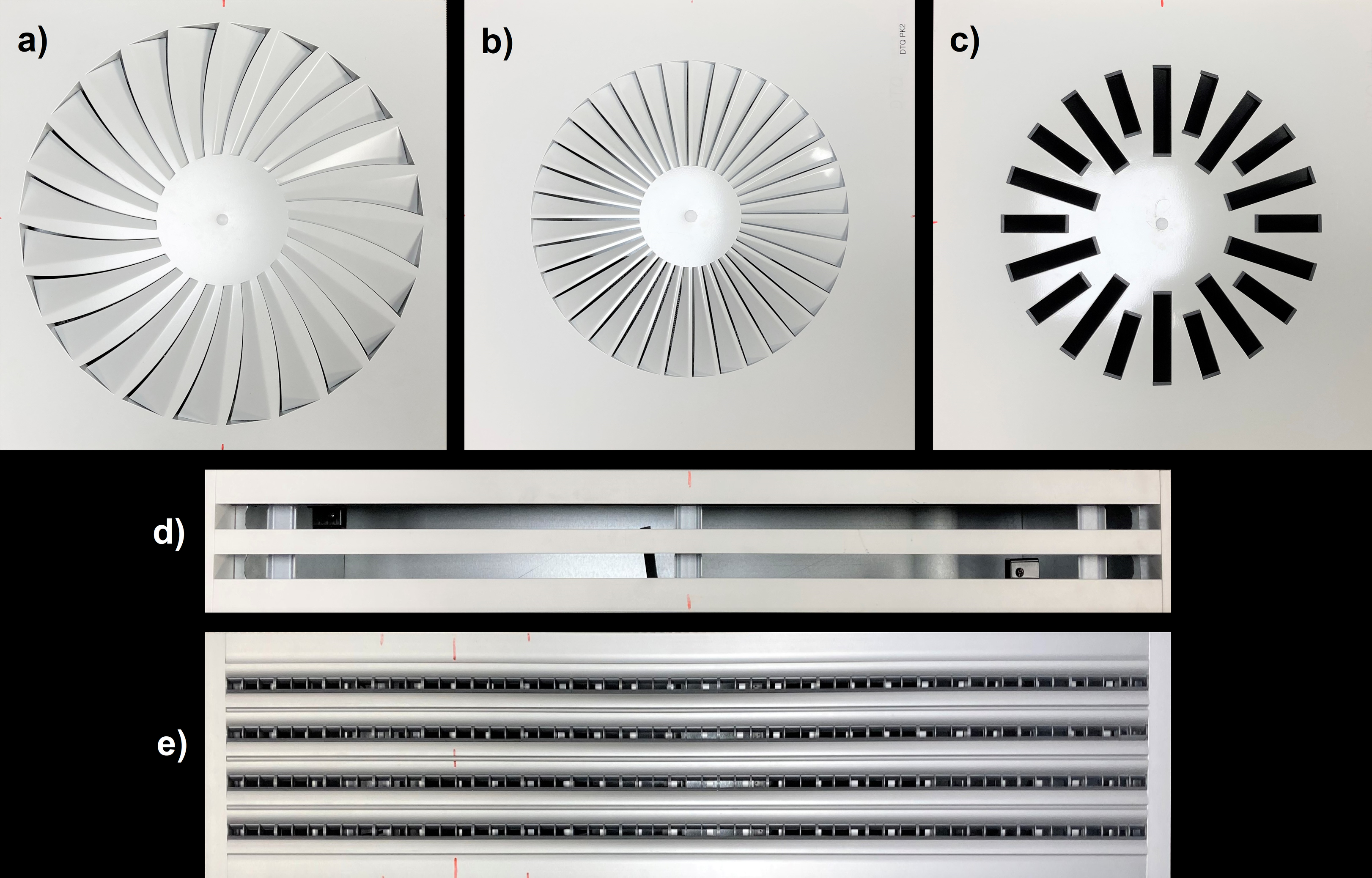 A A A Volume : 44 Part : 2 Acoustic measurements and psychoacoustic analyses of ventilation di ff usersLara Stürenburg a , 1Philipp Ostmann b , 2Lukas Aspöck aDirk Müller bJanina Fels aa Institute for Hearing Technology and Acoustics, RWTH Aachen University Kopernikusstraße 5, 52074 Aachen, Germanyb RWTH Aachen University, E.ON Energy Research Center, Institute for Energy E ffi cient Buildings and Indoor Climate Mathieustraße 10, 52074 Aachen, GermanyABSTRACT Since ventilation systems are not only used in industry but also increasingly in residential buildings, it is important to study its sound radiation and the consequences for our well-being. This research project aims to identify if geometric features of air di ff users a ff ect the rated annoyance of ventilation systems. It is known that the A-weighted sound serves as a criterion to a limited extent. Therefore, psychoacoustic analyses and evaluations need to be included to find out if there are correlations between psychoacoustic features and flow phenomena caused by the geometric features of the air di ff users. Several air di ff users were acoustically measured in a hemi-anechoic room using a developed mobile ventilation unit that supplied the necessary air volume flow. The ventilation unit could be operated in both supply and extract air configuration of the di ff users. With the measured data, the acoustic directivity of the air di ff users can be distinguished, and psychoacoustic features can be evaluated. Future listening experiments will also be extended to audio-visual experiments in virtual reality to increase ecological validity and study the role of the environment.1. INTRODUCTIONThe thermodynamic performance of air di ff users is often limited by the emitted A-weighted sound pressure level. But the A-weighted sound pressure level serves as a criterion to a limited extent when assessing ventilation noise on annoyance and pleasantness. Therefore, psychoacoustic analyses and evaluations need to be included in the assessment process. Susini et al. [1] conducted a psychoacoustic study where unpleasant sound emissions from air-conditioning units were identified with the help of1 lara.stuerenburg@akustik.rwth-aachen.de2 philipp.ostmann@eonerc.rwth-aachen.de21-24 AUGUST SCOTTISH EVENT CAMPUS ? O? ? GLASGOW listening experiments. However, the results were not linked to flow phenomena, which is an important factor when investigating air di ff users and not rotating machines such as air-conditioning units or fans. During an investigation of the acoustic quality of fans by Töpken and van de Par [2] [3], the three most important noise groups were “unpleasant”, “humming”, and “shrill”. The fan noises could be separated into these adjective groups regarding their perception, although they had the same A-weighted sound pressure level. This shows the importance of psychoacoustic parameters when investing in ventilation noises. Despite the great o ff ered information based on test person studies and psychoacoustic parameters, the results do not provide design recommendations. However, numerical simulation of two exhaust valves by Saarinen and Koskela [4] showed that even minimal changes in the geometrics could result in significant flow noise changes. Therefore, this research project aims to identify if geometric design features of air di ff users enhance specific psychoacoustic features and flow phenomena. In this paper, the acoustic measurements of air di ff users are described, and the first results of the psychoacoustic evaluation are shown. Small deviations in loudness and sharpness between the di ff erent air di ff users can be detected.2. MEASUREMENT SETUPSeveral air di ff users were acoustically measured in a hemi-anechoic room. A developed mobile ventilation unit controllably supplies the necessary air volume flow to the air di ff users.2.1. Fluid Mechanics The ventilation unit of the investigated system is equipped with a backwards-curved radial fan which is mounted inside an isolated housing to prevent noise radiation. Using a flexible hose, the fan is connected to a calibrated measurement section, which is then connected to the air di ff user. The ventilation unit is placed outside a hemi-anechoic room with only the hose entering it. The hose is guided through a small hole, which was thoroughly insulated to prevent noise from entering the hemi-anechoic room. If necessary, the hose is widened up smoothly to allow the connection to the investigated air di ff user. Depending on the configuration, the di ff users are operated in supply air direction or extract air direction. The volume flow ˙ V is measured with an orifice that was calibrated using a reference orifice that meets the standards of DIN EN ISO 5167-2 . By measuring the pressure drop ∆ p the volume flow ˙ V can be calculated by using the following expression, where ξ is the pressure loss coe ffi cient of the orifice and A the section’s cross-sectional area.s2 · ∆ pρ · ξ , with A = π˙ V = A ·4 · D 2The ventilation unit can be equipped with di ff erent orifices to allow a wider volume flow range since a certain minimum pressure drop ∆ p is required for accurate measurements. For the targeted volume flow range, two orifices are used, with both using the same section diameter D = 139 . 5 mm. The bigger orifice was calibrated to ξ high = 15 . 45 and the smaller one to ξ low = 56 . 13. The air density ρ is calculated from the measured air temperature, relative humidity and absolute pressure by using the Magnus formula [5] and the ideal gas law. Due to the operating limits of the ventilation unit, the maximum achievable volume flow is at 600 m 3 / h. In the following, the investigated air di ff users are briefly described. The di ff users cover a broad range of rated volume flows (200 m 3 / h - 800 m 3 / h) and are therefore suited for a wide range of possible applications or di ff erent room sizes. An overview of all di ff users is show