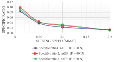 A A A Volume : 44 Part : 2 Acoustic Emission at the Wheel-Rail Contacts with Micro-Slip and Stick-Slip Laura Mariana Babici 1 Universität Politècnica de Catalunya, The School of Industrial, Aerospace and Audiovisual Engineer- ing -ESEIAT, Acoustical and Mechanical Engineering Laboratory (LEAM) Carrer de Colom 11, 08222, Terrassa, Barcelona, Spain Andrei Tudor 2 University POLITEHNICA of Bucharest, Department of Machine Elements and Tribology Splaiul Independentei 313, sector 6, Bucharest, Romania Jordi Romeu Garbi 3 Universität Politècnica de Catalunya, The School of Industrial, Aerospace and Audiovisual Engineer- ing -ESEIAT, Acoustical and Mechanical Engineering Laboratory (LEAM) Carrer de Colom 11, 08222, Terrassa, Barcelona, SpainABSTRACT The paper aims to analyse the occurrence of acoustic emission at the wheel-rail contact during micro- slip. The experimental model allows the different loads and the low sliding speeds specific to the wheel-rail contact. It is determined experimentally the appearance of the stick-slip phenomenon at the Hertzian contact of cylinder type (fixed-wheel specimen) - plane (mobile with very low speed - rail specimen). The experimental stand simultaneously measures the normal force, the friction force and the acoustic emission at different normal forces, sliding speeds and rigidities of the wheel spec- imen fixing system. The specimens are made of UIC standard materials used in the driving wheels and rails. The stick-slip phenomenon occurs at low micro-slip speeds and normal bending stiffness. Experimentally, it is found that the jumps specific to the stick-slip phenomenon (friction coefficient- COF) are accompanied by the acoustic emission (AE) at the cylinder-plane interface. The energy emitted by AE (W AE ) is correlated with the energy consumed by friction during the stick-slip period (W COF ).1. INTRODUCTIONThe stick-slip phenomenon occurs if two types of conditions are met: necessary conditions in which the kinetic coefficient of friction decreases as the sliding speed increases, but reaches a finite limit at high speeds, while the static coefficient of friction is higher than the coefficient of kinetic friction and1 laura.mariana.babici@upc.edu2 andreitudor1947@gmail.com3 jordi.romeu@upc.eduworm 2022 sufficient conditions where there is a quantitative relationship between the sliding velocity in the order of microns/s to mm/s, the moving body mass and the finite stiffness in the sliding direction). [1,2]. The stick-slip phenomenon occurs mainly at low and very low speeds and under certain condi- tions of system rigidity.For any mechanical system with finite stiffness, relative sliding motion and conventional dry friction (without special lubricant), a maximum speed can be defined until the stick-slip phenomenon occurs (stick duration is much more extended than slip duration). This speed can be considered the critical speed up to which the stick-slip phenomenon occurs. At a higher speed than the critical one, the frictional auto vibrations appear (stick duration equal to the slip duration periodic sinusoidal mo- tion with a variable amplitude dependent on damping) from a minimum speed. Therefore, in a given system (rigidity, mass, mechanical properties of materials and torque known), a critical speed of the stick-slip phenomenon can be defined depending on the variation of the coefficient of friction with the speed. In the presence of conventionally dry friction, the bending movement, characterised by elongation at relatively low speeds and finite rigidity, takes place in two forms: jerky movement (slip periods much shorter than a stick) and the periodically self-vibrations form maintained by the friction force itself at higher speeds with the specification that the amplitude of the self-vibrations decreases with increasing speed and rigidity. At the wheel-rail contact, for the drive wheels and the braked wheels, the rolling movement is always accompanied by micro-slides, dependent on the rolling speed, the normal load, the wheel-rail material couple, and the contact geometry surface between the wheel and the rail, mainly elliptical. Therefore, the necessary conditions for the stick-slip phenomenon are met [3-5].When the tangential force exceeds a specific critical value, depending on the static and kinetic friction particular to the material properties and on the normal force, the micro-slip appears). Defor- mations accompany the dynamic friction process at the level of the entire contact area, the appearance of waves of elastic, plastic and elastoplastic deformations, the formation and development of micro- cracks, and wear particles [6-9]. A less analysed aspect of the friction process at low and very low speeds is the generation and propagation of high-frequency elastic waves (in the range of kilo and megahertz), a phenomenon called acoustic emission (AE). The stick-slip phenomenon occurs mainly at low and very low speeds and under certain conditions of system rigidity. The propagation of elastic waves and oscillations as well as the appearance of microcracks in solid bodies, are manifested by acoustic emission. One of the effects of the stick-slip phenomenon is the appearance of vibrations and acoustic emission [10-11].The present paper aims to determine the acoustic emission (AE) for the stick-slip phenomenon at the Hertzian contact for dry friction. It also experimentally highlights the correlation between the stick-slip phenomenon (static and kinetic friction coefficient, sliding speed), motion dynamics and acoustic emission (AE) at the Hertzian linear contact.2. EXPERIMENTAL MODEL - GEOMETRY AND MATERIAL OF SPECIMENSThe cylindrical and plane specimens could be considered a simplified case of wheel and rail were made of material specific to the driving wheel and rail, with steel type R260 for rail (EN 13674- 1:2012) and ER7 for the wheel (EN 13262:2021). Also, the dimensions of the wheel and rail speci- mens (similar in order of size) are 