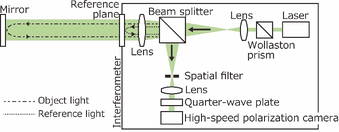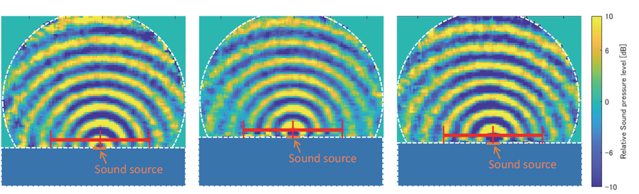 A A A Volume : 44 Part : 2 Experimental Observation of the Sound Field Around a Moving Source Using Parallel Phase-Shifting Interferometry Mariko Akutsu 1 Railway Technical Research Institute 2-8-38 Hikari-cho, Kokubunji-shi, Tokyo, Japan Waseda University 3-4-1 Ohkubo, Shinjyuku-ku, Tokyo, Japan Toki Uda 2 Railway Technical Research Institute 2-8-38 Hikari-cho, Kokubunji-shi, Tokyo, Japan Kohei Yatabe 3 Tokyo University of Agriculture and Technology 2-24-16 Naka-cho, Koganei-shi, Tokyo, Japan Waseda University 3-4-1 Ohkubo, Shinjuku-ku, Tokyo, Japan Yasuhiro Oikawa 4 Waseda University 3-4-1 Ohkubo, Shinjyuku-ku, Tokyo, Japan ABSTRACT Using parallel phase-shifting interferometry, we attempted to observe the sound waves around a high-speed moving sound source. The parallel phase-shifting interferometry can visualize the sound waves in the air based on the relationship between the air density modified by the sound pressure and the light phase of the PPSI laser. In our experiment, the sound source that emits 40 kHz sinusoidal sound was launched at 50 km/h or 100 km/h using RTRI’s experimental testing facility. From the measurement, we succeeded in observing the frequency modulation caused by the Doppler effect. Furthermore, by applying three time-directional band-pass filters, frequency distributions around the high-speed moving source are clearly imaged. Therefore, the frequencies are modulated lower and higher at the backward and forward of the sound source, respectively. 1. INTRODUCTIONAs wayside noise along railways remains an environmental issue, the characteristics of sound sources and sound propagation should be understood to reduce railway noise or improve noise1 akutsu.mariko.82@rtri.or.jp 2 uda.toki.92@rtri.or.jp 3 yatabe@go.tuat.ac.jp 4 yoikawa@waseda.jp(line ne at, r = | ia inter.noise SCOTTISH EV! VENT CAM pus = 2027? GLASGOW prediction models. For high-speed trains, railway noise is assumed to be a moving source whose characteristics differ from those of a static sound source. Meanwhile, current noise prediction models comprising monopole sources do not consider the characteristics of moving sources (e.g., the Doppler effect). Therefore, identifying the characteristics of high-speed moving sound sources is important to help improve noise prediction models. Microphones have been used in most cased to measure sound. Microphone arrays have already been developed to identify sound sources and used for measuring train noise [1][2]. The directions of sound sources and a resulting sound map can be easily obtained by processing the signals between microphones. However, microphone arrays cannot directly visualize the sound propagation path. For the visualization, the sound pressure distribution over the entire sound field should be obtained. Schlieren photography is a conventional method for visualizing air fluctuations and has also been applied to sound waves [3]. As, this method is applicable only to high-pressure fluctuations due to its low sensitivity, some particular treatment is required for visualizing the sound waves. The measurement system used in this study, namely, parallel phase-shifting interferometry (PPSI, DELTAPH PHI-100; Photonic Lattice, Inc.), is also a promising measurement technology that can visualize sound waves, including unsteady phenomena, such as aerodynamic sound [4][5][6]. Using PPSI, we attempted to observe airborne sound waves radiated by a moving source running at 100 km/h. Consequently, we succeeded in visualizing sound waves and the frequency modulation of sound waves due to the Doppler effect. 2. MEASUREMENT METHOD OF PPSI2.1. Measuring principle of PPSI Considering the relationship between sound pressure and air density, a sound field can be observed by the phase of light. The phase of light affected by sound was measured using PPSI. Figure 1 depicts the diagram of PPSI. The light emitted by the laser was split into two orthogonal polarizations: reference light and object light. The object light travels back and forth through the sound field, forming interference fringes with the reference light. The phase of these interference fringes is captured using a high-speed polarization camera (CRYSTA PI-1P; Photonic Lattice, Inc.,) [7]. This polarization camera, in which four sets of polarization filters are attached in front of its image sensor (Figure 2), can obtain spatial phase distributions. Typically, the phase of light is determined from interference fringes by adopting a phase-shift method. However, in practice, providing an exact phase shift to reference light is challenging. The following method was used in this study: the light phase was obtained from the measured interference fringes using hyper ellipse fitting in a subspace method [8], and the DC component was eliminated using a time-directional filter [9].Figure 1: Schematic of parallel phase-shifting interferometry. The parallel phase- shifting interferometry consists of an interferometer and a polarized high-speed camera. The camera can detect the phase difference between the reference light and object light.Spatial filter Lens |Quarter-wave plate High-speed polarization camera = Object light Reference ight 0 π/43π/4 π/2Image sensorLinear polarizerFigure 2: Schematic of the high-speed polarization camera. Four sets of polarization filters are attached in front of its image sensor.2.2. Converting light phase to sound pressure As mentioned in the previous section, the light phase is obtained by PPSI. This section discusses the conversion from light phase to sound pressure. At position r , changes in the air density cause alterations in the refractive index of light as𝑛ሺ𝒓, 𝑡ሻൌ 𝐶൫𝜌 𝜌ሺ𝒓, 𝑡ሻ൯1 , (1)where 𝑛 represents the refractive index of light, 𝜌 represents the air density in the atmosphere, 𝜌 represents the air density fluctuations, and 𝐶 is a constant value. Assuming an adiabatic change, the relationship between light refraction and sound