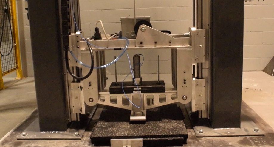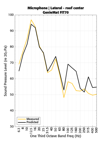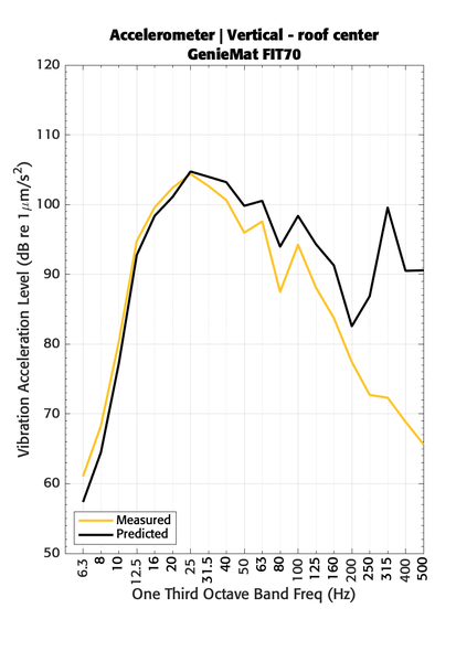 A A A Volume : 44 Part : 2 Improvements to the 1/3 octave band heavy-hard impact prediction methodGolden Matthew 1 Pliteq Inc. 131 Royal Group Crescent Vaughan, ON, L4H1X9, CanadaPatzke Tim 2 Pliteq LTD. Compass House Vision Park Chivers Ways Histon Cambridge, CB24 9AD, UKABSTRACT Previously, the authors presented a 1/3 octave band heavy/hard impact prediction method based on force pulse measurements from a drop tower. Since then, we have been applying the method with a variety of success. Previous papers presented on this topic were based on above grade applications in North American buildings. This paper will be looking at a slab-on-grade construction in the United Kingdom. This paper will be focused on the accuracy of the method and possible modes of error. It is shown that improved methodologies to measure the force pulse increased the accuracy of the prediction. 1. INTRODUCTIONOver the last 8 years, there has been an increased interest in impact noise and vibration due to heavy-hard fitness sources. The authors along with other co-authors have presented many papers at conferences on measuring the noise and vibration in labs designed for ASTM E492 [1], measuring the actual impact force with drop towers [2,3,4], creating a prediction methodology based on the actual impact force and an in-situ measured transfer function [5,6], and finally predicting the one-third octave band sound and vibration levels using data obtained with a reference drop of a 7.26 kg (16 lb) spherical mass dropped from 1 m (39.4 in) onto a thin reference flooring sheet [7]. Both predictions methodologies proved successful below 100 Hz but were less successful at frequencies above 100 Hz. This paper will apply the author’s one-third octave band prediction method to a building in the United Kingdom and use that to examine possible sources or error and how to fix them.mgolden@pliteq.com 1tpatzke@pliteq.com 2tt inter-ncie’” SCOTTISH evENT CAMPUS 3) O , o iLASGOW 2. DROP TOWERIn 2017, Pliteq finished building an automated drop tower, shown in Figure 1, to measure the impact force of heavy hard objects dropped onto fitness flooring. This drop tower is used for measure both single impacts and long-term fatigue performance. Two carriages are supported on low friction rails as to only allow one axis of motion. The upper carriage lifts the lower carriage to a selected height and releases it so that the lower carriage will impact the test specimen with close to free-fall like conditions. The lower carriage can be fitted with various load plates to adjust the mass of the lower carriage and the impact foot shape can be changed to simulate different types of weight impacts. A load cell measures the impact force pulse. Not shown in this photo, a large granite block with four load cells has been place directly below the lower carriage. This was done in an attempt to measure the force below the fitness flooring. The granite block was design to be large enough to avoid possible resonance modes in the frequency range of interest.Upper CarriageForce gaugeImpact Foot Lower CarriageTest specimenFig. 1 - Heavy Weight Drop Tower at Rest.This design has lead to three possible sources of systematic error. The first is that the lower carriage may be slowed down from friction on the rails. We have investigated the velocity of the lower carriage right before impact with displacement sensors and high-speed photography. It has proven difficult to measure the velocity with high enough precision and low enough bias to be certain the lower carriage is in free-fall. However, we have determined that this source of error seems to be well controlled. The second source of systemic error is that some of the mass of the upper carriage is below the load cell, in the impact foot, so the load cell does not experience all of the impact force. Since we can not impact the fitness flooring with the bare load cell, the error can not easily be eliminated, but it can be accounted for. Ideally, the impact foot would be massless. This would allow all of the mass to act on the upper side of the load cell. Since this is not possible we are measuring a reduce force at impact and a negative force while the carriage is rebounding. We have been exploring ways to compensate for this systematic error or to measure the impact force in other ways but have yet to find a superior solution. The mass of the impact foot also has resonances both internal to the foot and due to the mass of the impact foot hanging on sensor with the stiffness of the sensor creating a spring mass system. The third source of systematic error is likely the resonance mode due to the mass of the granite block on the stiffness of the sensors. This created a ringing decay after the impact foot has left contact with the fitness floor. These sensors are currently only used when the upper carriage is not used as the impacting source. As a last minute addition to this paper, a small scale force plate was designed, built and tested which has produced superior results when measuring small steel shots on thin fitness flooring. To date, any ringing in the data after impact has been address with exponential windowing. The authors are aware of the signal processing issues this creates but the effects can be minimized.3. ONE-THIRD OCTAVE BAND PREDICTION METHODLast year, Golden, et. al. [7] showed that data from the drop tower can be used along with in-situ measurements of lower mass impacts, a steel shot of 7.26 kg, onto a pretested sheet of GenieMat FIT08 used as a reference floor sheet. The method is summarized in Equation 1.oov sig osz 00% = 091 & sat J itd Microphone | Vertical - roof center GenieMat FIT70 ve Measured 2 8 & & (eavloz a1) jan27 ainssaig punos 100 90 40 |. 30L ′  I , F , max , DUT = L ′  I , F , max , Ref −( L dt , Ref − L dt , DUT )(1)L ′  I , F , max , DUTWhere is the in-situ measured fast-time-weighted maximum vibration level of the device under test, is the in-situ measured fast-