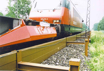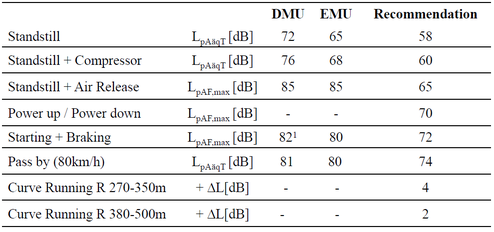 A A A Volume : 44 Part : 2 Railway Noise Reduction at the Source Only.Is this Possible or Mandatory?Markus Hecht 1 Fachgebiet Schienenfahrzeuge; Institut für Land- und Seeverkehr, Fakultät V - Verkehrs- und Maschinensysteme, Technische Universität Berlin, Sekr. SG 14, Salzufer 17-19, D-10587 BerlinABSTRACT Climate change urges CO2 reduction also in traffic. Electrified Railways are a powerful CO 2 free and energy and space efficient traffic mode already today. Modal shift is demanded but environmental noise of railway hinder rail traffic growth significantly. Noise tunnels are not only expensive but also reduce energy efficiency and increase interior noise. Noise barriers are very costly and optical obstacles. TSI-Noise values have many criticisms. They do not cover the most bothering situations, curve running and severe other critical operation conditions are missing. The noise limit values are very high. Many standard measures in all other technical fields, construction machines or road vehicles do not exist in the railway context. Even worse is the situation of the track noise. There are nearly no measures except the demand for smooth surfaces. But the noise radiation of rails and sleepers is not fix but can be reduced significantly. Even good railway practice in other countries does not push the noise reduction without legislative demands. Example are quiet high speed pantographs and tamping machines in Japan. With general measures and low noise barriers and skirts on each track side the immission limit even at densely operated lines of L DEN 55 dBA is possible.1. INTRODUCTIONThe environmental friendliness of electrified railways is well established. The only problems are airborne and structure borne noise emissions. Structure born noise emissions are limited to the immediate vicinity and shall not be covered here further. The European noise limits for vehicles, the so called NOI-TSI [1] only avoid extreme noisy vehicles. Therefore the quieter routes [2] valid from 8th December 2024 will not lead to sufficient relief. As in Germany and Switzerland also today there are no more cast iron braked freight wagons or other cast iron braked rolling stock. Most European countries see noise barrieres as the main instrument to protect people from noise behind walls. First the negative aspects of noise barrier and the deficiencies of NOI TSI are mentioned. Afterwards effective noise reduction measures at tracks and vehicles are shown in brief.1 Markus.hecht@tu-berlin.de 2. Noise barriers and noise tunnelsFor passengers noise barriers have two disadvantages. One is no visibility, see figure 1Figure 1: Noise barrier on the Berlin-Munich High speed line 2019, passenger vision from ICE-train, landscape visibility was in the past, foto author The second is interior noise increase. Most times this is in the 2 dB region and therefore not so dominant. If instead of a noise barrier a noise protection tunnel is foreseen, then the noise increase will reach 4 to 7 dB inside the vehicle according to the tunnel construction and the vehicle design. In any case more noise will disturb the passengers. Also the running resistance of the trains increases and by this more propulsion energy is needed. Up to now mainly the higher investment costs for tunnels than for noise barriers are discussed but not the further disadvantages. Another topic is reliability. Railways are accepted much more if they are a reliable mode of transport and not operated by chance. Even in the condition of few snow but strong wind noise barriers are trapping the snow mainly in between the two walls. So the high speed line between Berlin an Munich was not continous for five days in February 2021 because of snow removal failed.Figure 2: Effect of snowdrift in noise barriers3. NOI TSI deficienciesNOI TSI first was introduced in 2006, amended in 2011 and now valid is the version from 2014The first version did not have very ambiguous noise limit values and it was intended to make them stricter similar to the pollutants of combustion engines installed in non-road machinery [3], valid from 1998. Today a 13 dB reduction in NOx and particles is valid compared to the first issue. But at NOI TSI the tightening process was very weak, only few dB or nothing, more or less better specification and somehow simplification of the measurement process was the progress. There are huge differences in the specified vehicle types. For instance locomotives may be very noisy though there is much more freedom for noise reduction measures than with Electric Multiple Units (EMUs). Lutzenberger and Gutmann [4] proved that the NOI TSI values are significant above the state of the art values. But presumably the noise limits will not be lowered in next future as this would need an approval of all European countries. Also the idea of NOI TSI to define simply measurable conditions and not all critical conditions. So curve noise is completely omitted though most complaints of local residents are in curve running conditions, not only with trams but also with mainline rolling stock. Disturbance through wheel squeal is not the only problem but low frequency grumble with significant noise-level increase compared to straight track running is very dependent of running gear design. Also the power up and power down process is not limited. But NOI TSI gives just the upper limits and minimum operation conditions. Tighter limits and additional relevant operating conditions may be added for the tendering process for new vehicles. But industry is against this because of increased effort in acceptance tests is needed then. But compared to the benefits this additional effort is marginal. Table 1 shows several improvements. The variety of vehicle types is reduced. Fuel cell drive and battery driven vehicles will occur in significant numbers soon and would confuse the limits further. For residents it is not of interest which type of propulsion system is used. The limiting noise levels are 