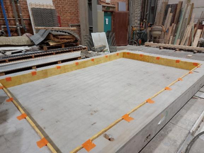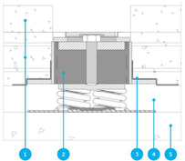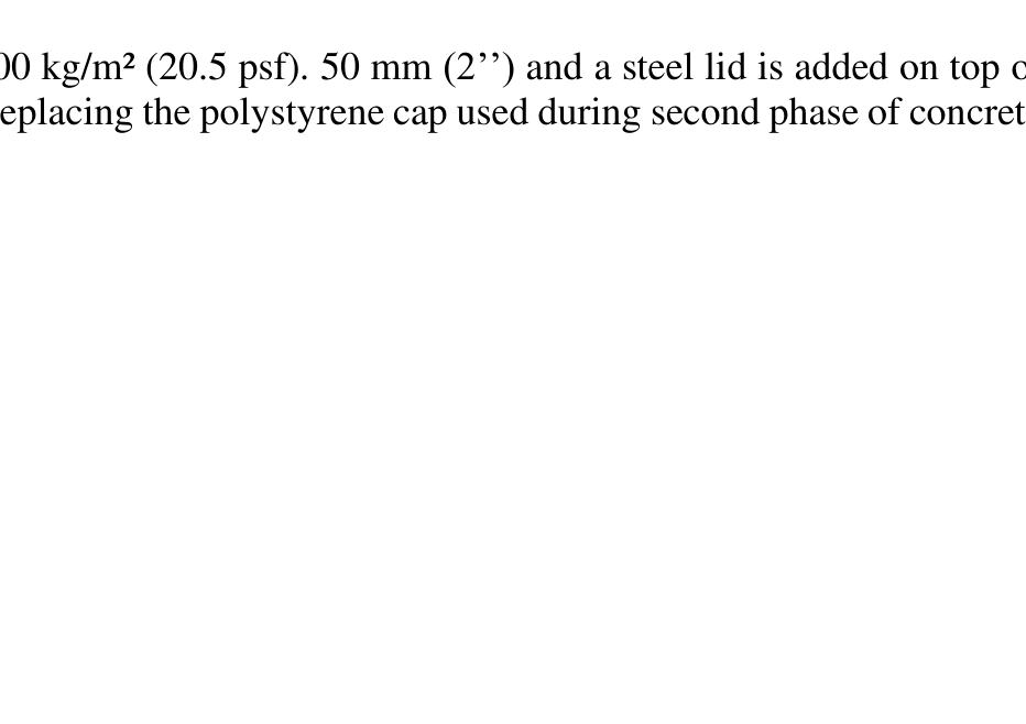 A A A Volume : 44 Part : 2 Laboratory measurements on replaceable jack-up systems Marina Rodrigues 1 CDM Stravitec nv Reutenbeek 9-11 3090 Overijse Belgium Reinhilde Lanoye 2 CDM Stravitec nv Reutenbeek 9-11 3090 Overijse BelgiumABSTRACTFloating floor systems are part of state-of-the-art modern building technology. They are an efficient option to improve the acoustical performance of buildings and can be part of box-in-box systems installed in high-performance spaces. There are many types of high-performance floating floor types, one of which is a jack-up system that guarantees that the floor is decoupled from the structural floor. With these systems, once the concrete has cured, the isolated slab is raised off the structure to the required void depth using pre-cast boxes. These boxes allow for easy adjustment of the final floor height and, if the use of the room or load conditions change in the future, can also allow the replace- ment of the isolators inside them. Replaceable and inspectable acoustical floor systems are perceived as systems with lower sound in- sulation (airborne noise) than traditional floating floor or non-replaceable jack-up systems. To measure airborne sound reduction and impact noise isolation of replaceable jack-up systems and confirm factors that can influence its performance, CDM Stravitec invested in a testing campaign, where measurements were made considering many variables, such as: concrete floating slab thick- ness; bearings type, air void depth, steel lid installed on top of each box and insulation material installed in the air void. This paper will present the findings of the test campaign.1. INTRODUCTIONA floating floor system can have three functions, or a combination thereof: airborne nose isolation, vibration isolation and impact noise isolation.1 m.rodrigues@cdm-stravitec.com2 r.lanoye@cdm-stravitec.comworm 2022 Stravifloor is the brand that represents CDM Stravitec product line of high-performance floating floors and Stravifloor Jackup-R is a jack-up floating floor system with reinforced steel boxes cast into concrete. Jack-up floating floor systems guarantee that the floor is decoupled from the structural floor (reducing the risk of acoustic bridging between the floating floor slab and the structural floor). With these systems, once the concrete has cured, the isolated slab is raised off the structure to the required void depth. Stravifloor Jackup-R boxes allow for easy adjustment of the final floor height as well as replacement of isolators, should the use of the room or load conditions change in the future. The isolators remain accessible and replaceable even after installation and concrete pour, allowing future inspection. However, replaceable and inspectable acoustical floor systems are perceived by the market as systems with lower sound insulation (airborne noise) than traditional floating floor or non- replaceable jack-up systems. To measure the acoustical performance (airborne sound reduction and impact noise isolation) of Stravifloor Jackup-R systems and define and confirm the parameters that can influence its perfor- mance, CDM Stravitec performed a test campaign (done on Belgian Building Research Institute, in- stitution recognized by application of the decree-law of the 30th of January 1947) that is described in this article. In this testing campaign, measurements were made considering the following variables: • Concrete floating slab thickness: 100 mm (4’’) and 150 mm (6’’) • With and without live load simulation • Bearings: natural rubber pads and springs • Air void depth • 50 mm (2”) steel lid installed on top of each box • With and without insulation material installed in the air void 2. TEST METHODOLOGY2.1. Impact Sound Insulation of Floors Tests were carried out according NBN EN ISO 10140 Acoustics – Measurement of sound insulation in buildings and of building elements (ISO 10140-1:2021; ISO 10140-3:2021 and ISO 10140-5:2021) and NBN EN ISO 717-2:2021 Acoustics - Rating of sound insulation in buildings and of building elements (ISO 717-2:2020). Measurements were taken from 50 to 5000Hz and 100 to 3150Hz was the frequency range for rating in accordance with EN ISO 717-2. Test were carried out on the bare slab, a reinforced concrete slab of uniform thickness 140 mm (5.5”) over a surface of 260 cm x 442 cm (8.5-ft x 5.4-ft), with 210 mm (8-17/64’’) high elevated borders that simulate the surrounding walls of an actual floor slab. The test element was mounted according to the NBN EN ISO 10140-3, in a similar manner to the actual construction and tests were carried out on each system described on section 3. Limits of test chambers, due to flanking noise transmission, were measured and registered (L n,min ), being shown on section 4. The single-number values (given by the index “w”) and spectrum adaptation terms are described in the standard EN ISO 717-2:2020. As the standards ASTM E492 - 09 and the EN ISO 10140-3 give similar procedures for the measure- ment and determination of the normalised impact sound pressure level L n , the impact insulation class IIC was calculated based on the measured values from 100 Hz to 3150 Hz, rounded to the nearest decibel, according to the ASTM E989 - 21 procedures.worm 2022 2.2. Airborne Sound Insulation of Floors Tests were carried out according NBN EN ISO 10140:2021 Acoustics - Measurement of sound insu- lation in buildings and of building elements (ISO 10140-1:2021 and ISO 10140-2:2021) and NBN EN ISO 717-1:2021 Acoustics - Rating of sound insulation in buildings and of building elements (ISO 717-1:2020). Measurements were taken from 50 to 5000Hz and 100 to 3150Hz was the frequency range for rating in accordance with EN ISO 717-1. Test were carried out on the bare slab with the size and characteristics and test elements mounted as described in the previous section. Limits of test chambers, due to flanking noise transmission, were measured and registered (R max ), be