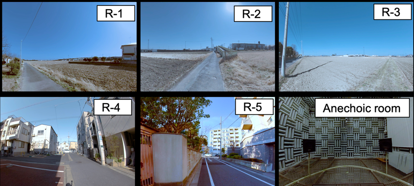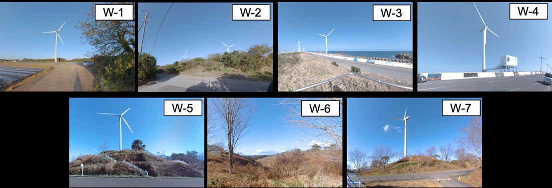 A A A Volume : 44 Part : 2 Subjective evaluation of wind turbine noise using 3-dimensional audio- visual reproduction system Miki Yonemura 1 Institute of Industrial Science, The University of Tokyo 4-6-1, Komaba, Meguro, Tokyo 153-8505, Japan Hyojin Lee 2 Seoul National University #220 Liberal studies, Seoul National University, 1 Gwanak-ro, Gwanak-gu, Seoul, Korea, 08826 Shinichi Sakamoto 3 Institute of Industrial Science, The University of Tokyo 4-6-1, Komaba, Meguro, Tokyo 153-8505, JapanABSTRACT In recent years, the installation of new wind turbines has been promoted in Japan. Since wind turbines are often installed in quiet countryside, it is necessary to properly evaluate the noise impact of wind turbine installation. Since wind turbines are thought to have visual as well as auditory effects, we conducted a subjective evaluation experiment on the loudness and annoyance of wind turbine noise (WTN) and road traffic noise (RTN) by magnitude estimation method, using a three-dimensional audio-visual reproduction system consisting of 6 channels of loudspeakers installed around the sound receiving point and a dome screen. As a result, the loudness and annoyance of WTN tended to be evaluated higher than that of RTN. These results were considered to be influenced by the amplitude modulation called “swish sound” and the low-frequency dominant frequency characteristics, which are characteristics of WTN. In addition, when comparing the differences in loudness and annoyance with and without visual information, the two attributes tended to be lower when visual information was present.1. INTRODUCTIONWind power is an important renewable energy source and is used in many countries and regions, especially in Europe. There have been a number of evaluation studies on wind turbine noise annoyance, and several guidelines for wind turbine noise assessment have been published based on the results of these studies, such as Environmental Noise Guidelines for the European Region published by the WHO [1]. Recently, the installation of new wind turbines has been promoted in Japan as well, and the need for wind turbine noise assessment is increasing.1 m-yone@iis.u-tokyo.ac.jp 2 lee.hj.sel@snu.ac.kr 3 sakamo@iis.u-tokyo.ac.jpinter.noise 21-24 AUGUST SCOTTISH EVENT CAMPUS GLASGOW In previous studies, it has been pointed out that wind turbine noise is characterized by the predominance of low-frequency components and amplitude modulation due to the blade rotation [2- 3]. Not only these acoustical characteristics, but visual impressions are also reported to affect the noise annoyance [4-5]. Various studies on sound evaluation by presenting audiovisual stimuli have been conducted not only for wind turbines but also for various sound environments such as transportation noise, and the sound environment of urban spaces [6-8]. In addition, the recent development of technologies related to 3-dimensional virtual reality has made it possible to present sound environments with a higher degree of reality.The purpose of this study was to evaluate the effects of wind turbine noise, which is increasing in Japan. Subjective tests were conducted to evaluate loudness and annoyance of wind turbine noise, using a 3-dimensional audio-visual reproduction system.2. METHOD2.1. Recording and Reproduction System for 3-dimensional Audio-visual Stimuli Figure 1 shows the audio-visual recording system. Audio-visual stimuli were recorded using a panoramic camera (Gopro, Fusion) and an ambisonics microphone (Sennheiser, AMBEO VR MIC). The sound field microphone was connected to a multi-channel recorder (TASCAM, DR-680 MK-II). To analyze the original sound field, a sound level meter (RION, NL-52) was also connected to the recorder and recorded simultaneously.CameraMicrophonePanoramic Camera(Gopro, Fusion)RecorderAmbisonics microphone (Sennheiser, AMBEO VR MIC)Sound Level MeterFigure 1: Recording system.For the presentation of audio-visual stimuli, 6-channel speaker system [9] with a dome screen were used (Figures 2 and 3).Audio-visual stimuli were composed of a 6-channel wave file and a MP4 video. The 4-channel ambisonic sound (A-format) was converted into 6-channel (B-format). The color of the recorded video was adjusted using a video editing software (Adobe, Premier Pro) so that the color of the projected video is close to the original color. In the recording described above, two video data were obtained for each of the front and rear cameras of the panoramic camera, but only the video taken by the front camera was used for the projection. The stimuli were played using a personal computer with a projection software (Amateras dome player).The sound stimuli played by the computer were input to a digital mixer (YAMAHA, DME64N) via an audio interface (RME, Fireface 802). The digital mixer corrected the frequency response with a 1/3 octave band equalizer. This adjustment included correction for individual loudspeaker differences and shielding by the screen. As shown in Figure 2, sound emitted from the loudspeakers placed in front of and above the subject is interrupted by the screen and its frequency characteristic changes. The corrected sound is passed through a D/A converter (YAMAHA, DA824) and a speaker amplifier (YAMAHA, XM4080), and is reproduced from 6 loudspeakers (TANNOY, T12) installed in an anechoic room.As for the presentation of visual stimuli, a dome screen with a diameter of 3.6 m was hung from the ceiling. A projector (BenQ, TK800) was located behind the subject to project the visual stimuli through a fisheye lens.Figure 2: Diagram of 3-dimensional audio-visual reproduction system.Personal Computer with Projection Software J Projector ‘Ausdlo Interaco oro — Digital Mixer COOH DIA converter oro ‘Speaker Amp, oro {6ch. LoudspeakersFigure 3: 3-dimensional audio-visual reproduction system.2.2. Test Stimuli 12 audio-visual stimuli listed in Table 1 were used. The types of sound source are divided into 2 groups, wind turbine nois