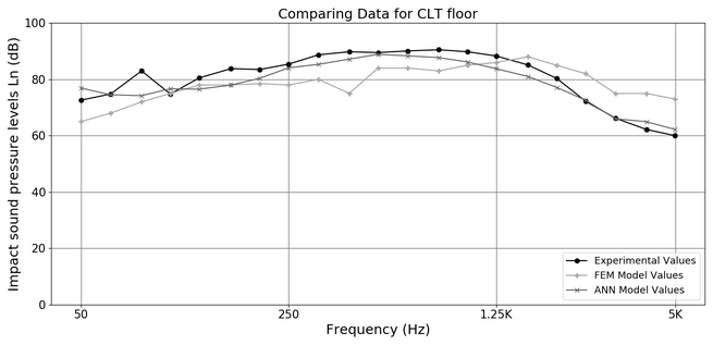 A A A Volume : 44 Part : 2 A comparison of numerical approaches to quantify sound insulation of lightweight wooden floor structuresMohamad Bader Eddin 1Department of Applied Sciences, University of Quebec at Chicoutimi 555 Bd de lÚniversité, Chicoutimi, QC G7H 2B1, CanadaJonathan M. Broyles 2The Pennsylvania State University State College, PA 16801, United StatesSylvain M´ e nard 3Department of Applied Sciences, University of Quebec at Chicoutimi 555 Bd de lÚniversité, Chicoutimi, QC G7H 2B1, CanadaDelphine Bard 4Engineering Acoustics, Lund University John Ericssons v¨ a g 1, 223 63 Lund, SwedenJean-Luc Kouyoumji 5Technological Institute FCBA All. de Boutaut, 33000 Bordeaux, FranceABSTRACT Quantifying air-borne and structure-borne sound insulation is an important design consideration for the indoor comfort in a building. Although sound insulation performance is commonly measured experimentally, numerical methods can have time-saving and economic benefits. Further, numerical methods can be incorporated within building simulations to provide an estimate of the acoustic environment. In response, this paper evaluates three di ff erent computational approaches for quantifying sound insulation in one-third octave bands (50 Hz -5 kHz) of a lightweight floor including: an analytical (theoretical) model, a finite element model (FEM), and an artificial neural network (ANN) model. The three numerical methods are tested on the sound insulation of a cross laminated timber (CLT) floor. The results of this study show that the ANN model is able to accurately predict the air-borne and impact sound insulation performance at frequencies above1 Mohamad.Bader-Eddin1@uqac.ca2 j.broyles@psu.edu3 Sylvain_Menard@uqac.ca4 Delphine.Bard@construction.lth.se5 Jean-Luc.Kouyoumji@fcba.fra slaty. inter.noise 21-24 AUGUST SCOTTISH EVENT CAMPUS O ¥, ? GLASGOW 250 Hz, but over-predicts the air-borne performance and under-predicts the impact performance at low frequencies. However, the analytical and FEM strategies provide acceptable estimations, useful during the conceptual design stage, but with higher deviations than ANN model across all frequencies. While no model is able to accurately represent acoustic behavior across all frequencies, this work highlights the advantages and disadvantages when applied to predicting the sound insulation of a CLT floor. Keywords: sound insulation, artificial neural networks, numerical analysis, building acoustics, floor structures1. INTRODUCTIONIn recent years, mass timber and engineering wood products (EWP), especially cross laminated timber (CLT), have been used widely in construction engineering due to its availability in nature and ease of use, and environmental benefit [1–3]. In the 20 th century, wood-framed structures grew rapidly to be the dominant building construction system in housing to accommodate the growing population in North America [4, 5]. Although this type of structure is ideal for sustainable buildings, solves the problem of durability, and reduces construction time and cost, a potential consequence is that the subjective sound insulation quality is considered to be lower than that of a heavy structure that has the same sound insulation data [6,7]. To meet adequate acoustic requirements, it is essential to use prediction tools and acoustic products with expected performance to provide suitable indoor acoustic quality (IAQ) in buildings. Many prediction tools such analytical expressions, finite element models (FEMs), and other statistical analyses are introduced to estimate indoor acoustic behavior inside buildings [8–11]. Those methods can reduce the cost and e ff orts of experimental acoustical tests. However, certain prediction tools showed significant deviations in forecasting the acoustic performance of structural elements [11,12]. The simplest approach of a prediction method is to use theory-based analytical expressions incorporating the mass, sti ff ness and damping of a structure [13]. This is reasonable for a single leaf, rectilinear structure, but it is not the case for multi-layered and lightweight constructions. An accurate estimation of sound insulation for double structures has been and remains to be a challenge [13]. Some construction details, such as: mechanical connections between di ff erent materials, can hardly be considered in modeling, especially using analytical methods [14]. Additionally, the diversity of construction materials makes the forecasting more di ffi cult. Moreover, the standard method for estimating the acoustic performance of building elements as indicated in ISO 12354 Part 1 and 2 [15, 16], are presently not suitable for multi-layered complex and lightweight structures [17]. The standardized methods are widely used and were developed based on data from heavy monolithic constructions [17]. The finite element method (FEM) has been utilized extensively in acoustic analysis to predict both air-borne and impact sound insulation [10,18–20]. However, the results of FEM are highly sensitive to many factors, including the influence of uncertainty and variation in the material properties, especially in wood species because of its heterogeneity and the lack of the material properties database [10, 21, 22]. Another challenge in FEM is the structural links between layers, which is critical for the e ff ective forecasting of sound insulation for double-leaf structures [23]. In a comparison study of existing prediction models [24], it was found that only five of the seventeen acoustic prediction models considered the structural connections, and just two of models considered rigidity in the modeling. Recently, the applications of machine learning (ML) have been widely used for solving complex problems in various fields, such as speech recognition, image classification, and building acoustic domain [8, 25–27]. ML can be defined as a branch of statistics in which a model can learn based on provided data [28]. An advantage of machine
