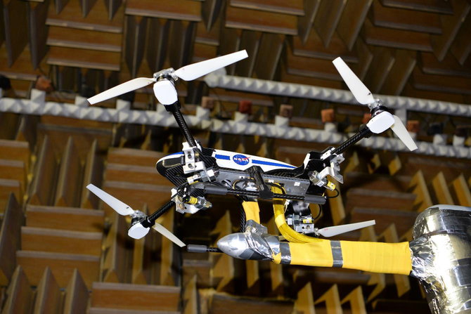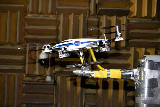 A A A Volume : 44 Part : 2 Identification and Reduction of Interactional Noise of a Quadcopter in Hover and Forward Flight ConditionsNikolas S. Zawodny 1Nicole A. Pettingill 2Christopher S. Thurman 3Aeroacoustics Branch NASA Langley Research Center Hampton, VA 23681ABSTRACT Advanced Air Mobility is a vision for a safe, accessible, and sustainable aviation system to transport people and cargo between places not served by traditional aviation. With this emerging transportation industry, there is motivation to characterize the noise of vehicles to determine their potential impacts on the community. An experimental testing campaign was conducted on a representative model of a small unmanned aircraft system in the NASA Langley Low Speed Aeroacoustic Wind Tunnel as a continuation of a previous testing campaign. The goals of the current test are to identify sources of interactional noise as well as to test custom-designed rotors and noise reduction devices. The tested noise reduction methods involve increasing the vertical distances between the rotors and the vehicle airframe as well as between the forward and aft rotor disk planes. These methods are intended to reduce rotor-airframe interaction noise in hover and fore-aft rotor wake ingestion noise in forward flight. A phased microphone array is also utilized to identify the locations of prominent noise generation for the di ff erent vehicle configurations in forward flight. Elevation of the rotors from the vehicle airframe yielded nearly 8 dBA overall noise reduction in forward flight, while yielding up to 4 dB reduction in overall tonal levels for one of the rotors in hover.1. INTRODUCTION Small Unmanned Aircraft Systems (sUAS) and Urban Air Mobility (UAM) aircraft are key components of the emerging Advanced Air Mobility (AAM) aviation industry. UAM aircraft are planned to perform passenger transport missions up to 120 km (75 miles) around metropolitan areas, while sUAS vehicles are expected to perform local missions including aerial imaging and small cargo delivery. [1] One aircraft configuration that is common to both of these vehicle classes is the multicopter. An overwhelming majority of sUAS that have been documented by the FAA are of the multicopter variety.In addition, the NASA Revolutionary Vertical Lift Technology (RVLT) project has overseen the development of a range of UAM vehicle concepts, including a six-passenger quadrotor vehicle. [2] Furthermore, previous experimental investigations have found that sUAS vehicle sounds can be more annoying than similar amplitude sounds generated by ground vehicles. [3,4] Therefore, characterization of the noise sources of these vehicles is important so that noise reduction opportunities can be identified and implemented.1 nikolas.s.zawodny@nasa.gov2 nicole.a.pettingill@nasa.gov3 christopher.thurman@nasa.gova slaty. inter.noise 21-24 AUGUST SCOTTISH EVENT CAMPUS O ¥, ? GLASGOW Previous experimental testing of a quadcopter in an acoustic wind tunnel environment revealed vehicle performance and acoustic data that agreed well with flight test measurements of the same nominal vehicle. [4, 5] This prior investigation identified noise characteristics in both hover and forward flight that were believed to originate as a result of complex aerodynamic interaction mechanisms. Specifically, these mechanisms included tonal harmonic excitations in hover believed to be due to rotor-airframe interactions, [6] as well as considerable increases in broadband noise for fore-aft rotor pairs operating in forward flight believed to be due to front rotor wake ingestion by the aft rotor. [7] The current testing campaign seeks to identify these noise source mechanisms and implement rudimentary noise reduction mechanisms.2. TECHNICAL APPROACH2.1. Facility and Test Setups The Low Speed Aeroacoustic Wind Tunnel (LSAWT) is an open-circuit free jet wind tunnel that is currently configured for a freestream Mach number range of 0 . 045 ≤ M ∞ ≤ 0 . 143 and is reconfigurable to an upper end capability of M ∞ , max = 0 . 32. More details of the facility capabilities can be found in Reference 8. A summary of the test setup is depicted in Figure 1. As shown inFlow ManagementSystemMicrophone Array Flow CollectorModel Test Stand (MTS)Tunnel InletNozzle Upstream Acoustic BafflesDownstream Acoustic4000 hp Fan Driver Unit (a)BafflesPhased ArrayFlowLaser TachometerInlet NozzleLoad Cell Flow(b)(c)(d)Figure 1: LSAWT and model test stand setups: (a) Rendered cut-away illustration of the LSAWT, (b) phased and linear microphone arrays, (c) quadcopter mounted on the MTS, (d) on-vehicle measurement devices.Figure 1(a), the anechoic test chamber is centrally located along the length of the facility, and it is acoustically treated with fiberglass wedges down to a cut-o ff frequency of approximately 250 Hz. Two acoustic arrays were utilized in this study: a streamwise linear array of 28 B&K type 4939 free-field microphones, and a commercially available phased microphone array (OptiNav ACAM 120). As shown in Figure 1(b), the linear microphone array is located along one of the facility upper corners in the streamwise direction, and the phased array is in an overhead position, just outside of the tunnel shear layer. The purpose of the linear array is to gather acoustic spectra and directivity information, while the phased array allows for noise source localization via beamforming. Figures 1(c) and 1(d) provide close-up views of the quadcopter installed on the LSAWT model test stand (MTS). Figure 1(d) shows the on-vehicle measurement instrumentation as well, which consist of an ATI-IA Mini40 multiaxis load cell and a total of four laser tachometers (one for each rotor) for tracking motor rotation speeds, all located on the underside of the vehicle airframe. More details of this instrumentation can be found in Reference 5.The test article in this study is the same Straight Up Imaging (SUI) Endurance quadcopter model hardware tested in Referen