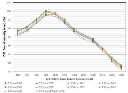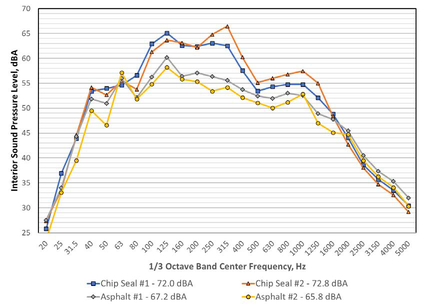 A A A Volume : 44 Part : 2 Noise and Pavement Rehabilitation Using Chip Seal Surfaces Paul R. Donavan 1 Illingworth & Rodkin, Inc. 837 North 11 th Place Ridgefield, Washington 98642 Carrie J. Janello 2 Illingworth & Rodkin, Inc. 429 East Cotati Avenue Cotati, California 94931ABSTRACT In the United States, increasing numbers of local and state highway agencies are using chip seals for highway pavement rehabilitation due to their relatively low cost and simplicity of application. These surfaces can significantly increase both exterior traffic noise levels and interior noise for vehicle occupants. Recent studies have quantified these effects using pass-by and interior noise and on-board sound intensity (OBSI) measurements. In order to minimize these effects, the California Department of Transportation (Caltrans) has conducted research on different chip seal pavement designs near the City of Bishop, California. Previous measurements of chip seal pavement have indicated an average OBSI level of 106.2 dBA with a range of ±2 dB. The five quietest test sections at Bishop produced an average level of 101.8 dB with a range of ±0.6 dB. In this paper, previous pass-by and interior noise and OBSI measurements are provided along with the comparison of OBSI data to that measured at the Bishop sites. The performance and design information on the Bishop sites are also provided.1. INTRODUCTIONChip seal treatments are used as a method of preserving existing pavement and extending life by 5 to 7 years. 1 They are particularly effective for low volume roads such as local and collector roads. However, they also have the potential for windshield damage from loose chips and do not provide structural improvement to the underlying pavement. 2 They are also known to have the potential to produce excessive noise. This has been verified by noise measurements as well as complaints from people residing in proximity to roads that received these treatments. Chip seal pavements consist of a thin layer of bituminous binding agent (or emulsion) placed on existing pavement and then applying and rolling a layer of aggregate on it. Double layer chip seal is an application of single chip seal with the first layer constructed with aggregate one sieve size larger than the second layer. 3 To address highway noise and other concerns, a California Department of Transportation (Caltrans) pavement engineer in Caltrans District 9 had a variety of different chip seal designs installed on fifteen sections of US 395 and California State Route 89 in the Owens Valley east of the Sierra1 pdonavan@illingworthrodkin.com 2 cjanello@illingworthrodkin.com Nevada Mountain range. For comparison, one section of conventional rubber asphalt pavement and four sections of Superpave pavement were also installed. To quantify the noise generation of these pavements, Caltrans Headquarters had Illingworth & Rodkin, Inc. (I&R) perform on-board sound intensity (OBSI) measurements on these sections. In addition to a California state-wide OBSI database, I&R also had chip seal OBSI results for pavements in Indiana and Washington State. For the sites in these states, interior and pass-by noise were also available from previous measurement programs.2. NOISE MEASUREMENT METHODS2.1. On-Board Sound Intensity All the measurements were made in accordance with AASHTO T 360-16, Standard Method of Test for Measurement of Tire/Pavement Noise Using the On-Board Sound Intensity Method using a new Standard Reference Test Tire (SRTT). Using the dual-probe sound-intensity fixture at a test speed of 97 kph and a ‘cold’ tire inflation pressure of 207 kPa. Air temperatures over the District 9 measurement period were in the range of 11 to 22°C. No temperature corrections were used. The microphone signals were analyzed into 1/3 octave band levels using a 5-second averaging time. The microphones were calibrated using a Larson Davis Model CAL200 acoustic calibrator set for 94 dB at the beginning and end of the measurement period. Three or more passes were made for each test section, which were averaged together during post analysis.2.2. Additional Noise Measurements Pass-by noise measurements of individual test vehicles were performed following the data acquisition methods defined in the AASHTO Standard Method of Test, TP 98-13, Determining the Influence of Road Surfaces on Vehicle Noise Using the Statistical Isolated Pass-By (SIP) Method. The measurement microphone was placed 7.5m from the centerline of vehicle travel lane, and the test vehicles were operated one at a time passed the microphone at a speed of 97 kph. The sound level of the entire pass-by was acquired, and maximum A-weighted sound pressure level was reported. Interior noise was measured with a microphone position above the right front passenger seat 74cm above the seat cushion with the seat adjusted to its center of fore/aft travel and centered on the headrest. The reported level was the average of 0.1 second levels measured over a 10-second period with the vehicle operating at 97 kph. The test vehicles were measured with their original equipment tires. 3. NOISE ISSUES WITH CHIP SEAL PAVEMENTS3.1 E xterior Tire-Pavement Noise The application of sound intensity to measuring tire-pavement noise was developed at General Motors (GM) in the early 1980s for research into tire noise source mechanisms. 4 It was later applied at GM to new car tire selection for both pass-by regulatory concerns 5 and interior noise. In the early 2000’s, it was used by Caltrans for evaluating pavements for purposes of traffic noise reduction. As part of the Caltrans research, chip seal pavements were quickly identified as producing high noise levels relative to most other pavements, as shown in Figure 1. 6 This has also been reported in other data sets. OBSI measurements were also made at an automotive test track with pavements designed to replicate those in California. The results are shown in Figure 2 and also indicate how chip seal pa