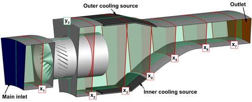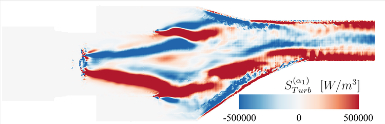 A A A Volume : 44 Part : 2 Analysis of combustion noise sources using Doak’s momentum potential theoryRa ff aele D’Aniello 1German Aerospace Center (DLR) Department of Engine Acoustics, Müller-Breslau-Straße 8, Berlin - GermanyKarsten Knobloch 2German Aerospace Center (DLR) Department of Engine Acoustics, Müller-Breslau-Straße 8, Berlin - GermanyCarolin Kissner 3German Aerospace Center (DLR) Department of Engine Acoustics, Müller-Breslau-Straße 8, Berlin - GermanyABSTRACT Noise emissions of modern lean combustors are related to di ff erent sources. Direct combustion noise is generated by heat release fluctuations, while indirect noise sources are caused by the acceleration of entropy and vorticity inhomogeneities through the nozzle-guide-vane at the combustor exit. The latter noise source is characterised by the coupling of fluctuations. When convected in non-uniform mean flow, this coupling can e.g. cause vortical or entropic fluctuations to be partly transferred into acoustics. Due to the complexity of the sources, a clear and quantitative separation of the di ff erent phenomena in terms of primitive variables presents a significant challenge. This study therefore proposes an alternative framework for the description of combustion noise generation based on Doak’s Momentum Potential Theory (MPT). The MPT defines a Generalised Acoustic Field (GAF) and describes the sound production in terms of mean energy fluxes carried by the respective acoustic, thermal and turbulent fluctuating momentum components. To confirm the ability to identify the di ff erent combustion noise sources, the method was applied to Large-Eddy Simulation data of a non-reacting swirl-combustor simulator. The coherent character and spectral behaviour of the GAF were investigated using a Spectral Proper Orthogonal Decomposition analysis and the GAF mean fluxes correlated to the source distributions.1. INTRODUCTIONNoise emissions associated with combustion processes can significantly contribute to the overall engine-core noise of aeronautical engines and gas turbines [1]. They typically feature a broadband, low-frequency behaviour that can a ff ect the dynamics of the flow in the combustion chamber as well as of the jet-exhaust gas [2]. Nevertheless, they are of particular interest for modern combustor devices, which are characterised by high-temperature, unsteady combustion processes [3]. In fact, the heat release fluctuations resulting from the dynamics of lean premixed flames cause sound production within the combustion chamber, which commonly referred to as direct combustion noise. Another noise source, called indirect combustion noise, is related to the acceleration of flow inhomogeneities-1 ra ff aele.daniello@dlr.de2 karsten.knobloch@dlr.de3 carolin.kissner@dlr.de such like entropy, vorticity or mixture inhomogeneities through the nozzle-guide-vane (NGV). Even though highly dependent on geometry and operating conditions, the indirect combustion noise can dominate combustion noise [4] and is thought to play an important role in the feedback mechanisms which cause combustion instabilities [2]. A proper understanding of the combustion noise production thus represents an important milestone in realising safer, more e ffi cient and consequently greener combustor devices. The transfer mechanism between vortical, entropic and acoustic fluctuations, which is typical for the production of indirect combustion noise, can be explained by mode coupling [3]. In general, if the fluctuations propagate in a uniform mean flow, three uncoupled types of disturbances (i.e. acoustic, vortical and entropic modes) can propagate with the flow without any mutual interaction. Conversely, if the mean flow is non-uniform as is typical in a combustion chamber, the disturbances couple with each other. For instance, entropy disturbances can then be transferred into acoustic perturbations [5]. Chu et al. [6] showed, however, that the mutual influence between the modes generally results in a complex interdependence of the primitive variables due to the non-linearity of the model flow. This, in turn, makes the distinction between the di ff erent noise sources as well as the quantification of the respective sound production challenging. Conventional combustion noise models tend to focus on the propagation of modes and to make strong simplifying assumptions for the sources characterisation. As a consequence, these models, which mostly rely on the works of Marble and Candel [7] and Cumpsty and Marble [8], define unambiguous transfer functions for acoustic fluctuations, although several extensions exist. The main assumptions include an isentropic propagation of the disturbances, a quasi-one-dimensional framework and a compactness of the nozzle. Moreover, the sources, typically treated as a known input for the system, are modelled as periodic oscillations. Several studies question these assumptions. For instance, De Domenico et al. [9] showed that a non-isentropic extension is necessary to capture the indirect combustion noise components and match the observed experimental behaviour. Weilenmann et at. [10] compared di ff erent one-dimensional models for the propagation of entropy waves with experimental and simulation data showing that the waves should be modelled by using at least a two-dimensional approximation. Semlitsch et al. [11] applied mode decomposition techniques to analyse the generation of entropy and vorticity waves for CFD simulation data of a realistic gas turbine combustor configuration. Their findings point out the unsteady and three-dimensional character of the coherent structures featured by the fluctuations, which question idealised wave assumptions. A complex and at the same time reliable description of the acoustic sources is however crucial to match the acoustic emissions at the NGV entrance. Therefore, this study proposes an alternative framework for the description of combustion noise generation based on the Momentum 