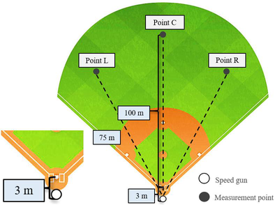 A A A Volume : 44 Part : 2 Differences in acoustics characteristics of hitting sounds in baseball games Ryohei Futamura 1 Satoshi Miharu 2 Koji Nitta 3 Kanagawa Institute of Technology 1030 Shimo-ogino, Atsugi, Kanagawa, JAPAN Takahiro Miura 4 National Institute of Advanced Industrial Science and Technology (AIST) 6-2-3 Kashiwanoha, Kashiwa, Chiba 277-0882, Japan. Mari Ueda 5 Kanagawa Institute of Technology 1030 Shimo-ogino, Atsugi, Kanagawa, JAPANABSTRACT In sports, athletes use visual and auditory information to perform full-body exercises. Some studies reported that auditory information is an essential cue for athletes: They utilized auditory information to predict ball behavior and determine body movements. However, because athletes instinctively use situation-related sounds, there is no systematic methodology to improve auditory-based competitive ability. Few studies attempted to approach the utilization of sound in games from the perspective of acoustics, and the functional acoustical features have not been quantitatively revealed. Therefore, the objective of this study is to clarify the acoustical characteristics of auditory information to max- imize its utilization in baseball games. In particular, to analyze the acoustical features of batted ball sounds that enhance defensive skills, we conducted acoustic measurements of batted ball sounds in realistic situations. The results showed that the peak gain values of fly and liner batted balls were greater than those of grounder, and the frequency components included in the hitting sound were also different among them.1 s2185016@cco.kanagawa-it.ac.jp2 s2185017@cco.kanagawa-it.ac.jp3 nita@kait.jp4 miura-t@aist.go.jp5 m-ueda@ic.kanagawa-it.ac.jpworm 2022 1. INTRODUCTIONSounds related to baseball games mainly include hitting sounds, catching sounds, and cheers. In sports, athletes use these various sounds to determine body movements and predict ball behavior. For example, when Shigeo Nagashima coaches Hideki Matsui over the phone, he hears only the sound of his swing and decides whether it is a good swing or a bad swing. In addition, Shohei Ohtani states that he is using sound potentially, and Ichiro says that "the sound of hitting is an important judgment factor". In this way, there is a need for professional athletes to utilize sound in sports, and auditory information such as sound is considered to be an important source of information and judgment ma- terial in sports. However, athletes often use sound sensuously, and measures to improve competitive- ness regarding sound use are not systematized. Therefore, there are few research examples that ap- proach from sound such as acoustic characteristics, and it has not been clarified quantitatively. The authors have reported on the relationship between the analysis of hitting sounds and movements in baseball competitions, and the practical use of auditory information [1-3]. As a result, it was sug- gested that sound may be utilized if the number of years of experience is long. The purpose of this study is to continue to make the best use of auditory information in baseball games and to obtain scientific knowledge for practically improving competitiveness from the sound of hitting a ball. In the previous report [4], acoustic measurements were taken at three points: 3 m behind the home base of the outdoor stadium, on the second base, and 100 m in front of the home base. In this paper, in order to clarify the acoustic characteristics of the hitting sound due to the difference in the defensive position of the outfield, the acoustic measurement of the hitting sound for 49 active baseball team members at the left, center, and right, which are the defensive positions of the outfield. Was carried out. 2. Measurement outlineworm 2022Figure 1 shows the measurement points. The measurement location is Kanagawa Institute of Tech- nology KAIT Stadium. The recording points are Point L (left): 75 m left front from the home base, Point C (center): 100 m forward from the home base, and Point R (right): 75 m right front from the home base.Figure 1: Measurement outline diagram3m Polat PL 10m Point © 3m Poiat R 2.1. Measurement equipment A PCM recorder (Roland, R-07) and a precision sound level meter (RION, NL-52) were installed at each measurement point 1 m above the ground (fs = 96 kHz, 16 bit). Furthermore, in order to measure the ball speed, swing speed, swing trajectory, and swing angle, a speed gun (TOA, HP-2) is installed 3 m behind the home base, and a swing meter (GARMIN x SSK, IMP001) is installed at the grip end of the bat. Was attached. The ball was a rigid ball (MIZUNO), the bat (YANASE, YUM-056) was 84.5 cm, and a 900 g wooden bat was used.2.2. Measurement participants There are 49 male members of the Kanagawa Institute of Technology baseball club (average years of experience: 12 years) who belong to the first part of the Tokyo Metropolitan Area Baseball Federa- tion. Participants stood at bat one by one and had them batting with 10 balls per person as a guide. 3. Measurement resultThe recorded hit balls were classified into eight types: left fly, center fly, right fly, left liner, center liner, right liner, short ground ball, and second ground ball. Table 1 shows the results for 41 valid data (right-handed: 38, left-handed: 3) by hitting type and hitting direction. Of the total number of hits of 334, fly: 179, liner: 79, ground ball: 76, and the average pitching speed was 92.6 km / h.Table 1 Number of hits by hit type / direction Category Direction FrequencyLeft fly 38FlyCenter fly 80Right fly 61Left liner 34LinerCenter liner 20Right liner 25Short grounder 49GrounderSecond grounder 273.1. Eight types of hit balls and differences in noise level at each point Table 2 shows the results of the Tukey test to see if there is a difference in sound pressure level due to the difference in defensive position for each of the eight types of hitting sounds. As a result, there was a significant difference i