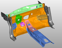 A A A Volume : 44 Part : 2 Use of sound “Phonons” in the modelling and optimization of automo- tive acoustic systems in 3DR.Morris-Kirby 1 Adler Pelzer Group Gmbh Advanced Acoustics Research Laboratory Padstow, Cornwall, England E.Harry 2 Adler Pelzer Group Gmbh Advanced Acoustics Research Laboratory Padstow, Cornwall, EnglandABSTRACT Automotive manufacturers demand components with an ever higher acoustic performance combined with lower environmental impact, tuned to the emerging EV market, and are pres- sured into reducing lead times and prototype investment. Consequently, there is a desire for enhanced simulation techniques, utilizing advanced methods. The three-dimensional aspect of many palliative treatments can be shown to afford significant benefits to their acoustic perfor- mance, both in their transmission loss and random incidence absorption characteristics.Virtual system engineering enables construction fundamentals to be created in CAD, but often acoustic treatments are chosen based on flat sample performance or simple power balance models. These do not tell the complete story. Current acoustic simulation techniques such as SEA, may present the model in a 3D environment to aid in visualization but, solving is done on a 2D matrix basis, and does not account easily for diffusion and refractive interaction caused by the complex shape of the component under investigation. BEM and FEM techniques are 3D based simulations but have a host of limitations due to mesh density and available processing power. Constructing models of individual palliatives such as wheel arch liners, dash insulations or carpets using such techniques may be of academic interest but of restricted use in the pres- sured world of component design and manufacture. It is not helped by the need to furnish the model with accurate, validated, material performance data. A modelling procedure was re- quired that could import component CAD from the product design team and rapidly create an acoustic model that could accurately predict its performance in both a transmission loss suite and associated random incidence “Alpha cabin” absorption test. Thus, short circuit the need for at least one if not more prototype test phases or enable quotations for new business to be formulated with a higher degree of clarity. Subsequently to export results from this model into a range of “full vehicle” modelling environments or compare to prototype test results. After considerable research the authors created and validated a toolbox approach using a com- bination of open-source code together with bespoke modifications and defined processing pro- cedures.1 Rod.morris-kirby@adlerpelzer.com2 Evan.Harry@adlerpelzer.comworm 2022 1. INTRODUCTIONThe approach discussed in this paper can be considered similar to that of ray-tracing, however instead of sound rays, imaginary particles called Phonons are used to carry the energy, similar to Quantum mechanics. In the ray-tracing method, each sound beam carries an intensity whose amplitude decreases propor- tionally with the square of the propagation distance, thus simulating the acoustic radiation of a spher- ical source via geometrical dispersion. Whereas each Phonon carries an elementary energy ǫ, the amplitude of which does not vary as a function of the propagation distance. The physical phenomena likely to occur during propagation (reflection, absorption, diffusion, atmospheric absorption) are not considered in the same way in the two approaches. In the "sound rays" approach, these phenomena take the form of a weighting applied to the sound intensity carried by a ray. For example, in contact with an absorption coefficient wall α, the intensity of the radius after reflection will be weighted by the coefficient (1- α). In the Phonon approach, some of these physical phenomena can be considered probabilistically. In contact with a surface whose absorption coefficient is α, the Phonon may for example have a proba- bility (1- α) to be reflected, and a probability α to be absorbed. In the latter case, it disappears from the domain of propagation. One of the major advantages of the concept of Phonons lies, above all, in considering the diffuse reflections on the walls and the diffusion reflection by congested areas, such as inside a complex structure like an instrument panel or a wheelhouse or engine bay. In the sound ray methods, the reflection by the walls is determined by image-source methods that only allows "specular" type reflections, perfectly deterministic, and this prohibits considering the phenomena of "diffuse reflection". In the Phonon approach these diffuse reflections are considered in a probabilistic way and the reflex angle can be chosen according to a variety of arbitrary reflection laws, examples shown on figure 1. It was found that the Lambert reflection law was the most suitable for our automotive studies.at) 2 @Figure 1. Reflection Laws available. It is also the same in considering the diffusion by objects distributed in the medium of propagation (such as the power unit in an engine bay for example). In the "sound rays” approach, it is necessary to know exactly the shape and the position of the object to calculate in a deterministic manner the angle of reflection of a sound beam on the object. In the phonon approach, scattering objects can be considered statistically, with no knowledge other than their spatial distribution and mean shape,worm 2022 which significantly reduces the costs in terms of calculation and definition of the field of study. This statistical (or probabilistic) description, which can be generalized to most of the physical phenomena involved in the propagation of sound, is therefore the great strength of the “phonon" approach to the "sound rays" approach.2. THE I-SIMPA GUIThe open-source code “ i-Simpa ” [2] enables the creation of an acoustic model using Phonons and this application also includes access to the Tetrahedral “mesher” and