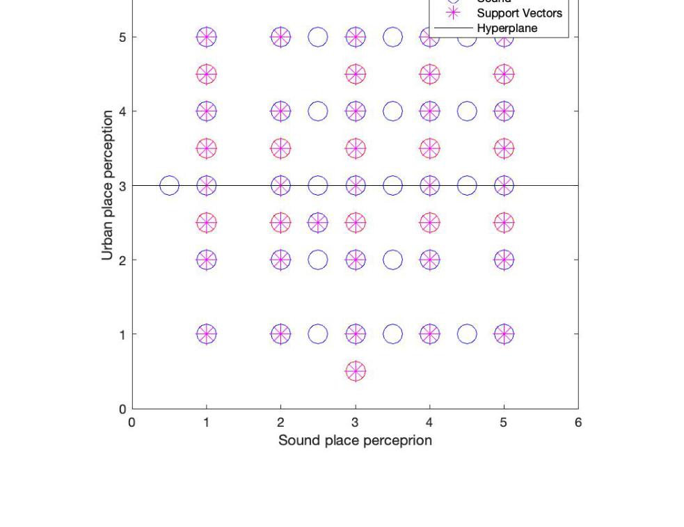 A A A Volume : 44 Part : 2 Application of the SVM algorithm for the development of a model classification of the visual and sound landscapeSamantha Di Loreto 1Università Politecnica delle Marche Via Brecce Bianche 12, Ancona, ItalyFabio Serpilli 2Università Politecnica delle Marche Via Brecce Bianche 12, Ancona, ItalyValter Lori 3Università Politecnica delle Marche Via Brecce Bianche 12, Ancona, ItalyABSTRACT To ensure adequate management of the soundscape in urban environments, urban planning authorities need a range of tools that enable them to perform this condition. Analyzing and classifying a soundscape is necessary to adapt it to the expectations of the people who inhabit it. The term “soundscape” is associated with three di ff erent research areas: ecology / anthropology, music / sound design and architecture / urbanism. In particular, in this paper, the third research area will be investigated, finding a correlation model between auditory and visual sensations of the urban landscape of the port of Ancona. The classification model that is used is the Support Vector Machines (SVM) which is proposed as a tool for a global assessment of the urban sound landscape. In this case study the algorithm is intended for the automatic classification of the sound landscape of the port of Ancona to understand how the sound perception a ff ects the visual one.1. INTRODUCTIONThe landscape represents the whole of a view that contains sound, olfactory and visual elements which simultaneously come into contact with the observer. It is known that various limits are identified in the definition of landscape, since the theme of landscape is tackled by considering it a strictly objective whole, without considering the subjectivity of those in front of it. This limit was overcome in M. Schafer’s World Soundscape Project [1], where the concept of landscape is approached on di ff erent levels.1 s.diloreto@pm.univpm.it2 f.serpilli@univpm.it3 v.lori@univpm.ita slaty. inter.noise 21-24 AUGUST SCOTTISH EVENT CAMPUS O ¥, ? GLASGOW Soundscapes defined by the International Organization for Standardization (ISO 12913 series) [2,3], have been idealized as the acoustic environments perceived by one or more people in the considered urban context. Many theories, methods and applications are available in the field of landscape perception research. Kang et all. [4] have demonstrated that human evaluation of subjective loudness and acoustic comfort depends on a large-scale subjective survey. A survey has been undertaken by the same authors on underground shopping streets in Harbin, China, to determine how individual sound sources influence subjective loudness and acoustic comfort evaluation [5]. Oberman et all [6] has discusses the soundscape assessment approaches to soundscape interventions with musical features introduced to in public spaces as permanent sound art. In the virtual soundwalk is it possible to combine the benefits of the on-site and laboratory settings. With this approach it is possible to combine more cognitive experiences. The development of models for environmental problems is becoming increasingly relevant to environmental engineers and scientists. The application of mathematical models for environmental modeling is necessary to solve complex problems. Torija et all. [7] presented a classification model that is proposed to be used as a tool for a comprehensive urban soundscape evaluation. The application of machine learning methods for environmental modeling is extensive and less discusses respect the polynomial regression models [8]. In [9] machine learning methods have shown their superior performances; the work compared the performance of 23 methods, including RF, support vector machine (SVM), ordinary kriging (OK), inverse distance squared (IDS), and their combinations (i.e., RFOK, RFIDS, SVMOK and SVMIDS), to evaluate the landscape of the Australian coast. This paper explores the sound and temporal characteristics and compares them with the physicality of spaces. The final goal is to highlight in particular how the concept of soundscape is closely related to the visual impression. The aim of the work was to highlight the a ff ecting role of sound with the visual setting by investigating the subjective sensations of the human being with a listening test created specifically for the case study. In particular, for the aforementioned purpose, machine learning modeling techniques were exploited. The paper is organized as follows: Section 2 presents the case study, measurements and subjective investigation. In Section 3 a brief discussion of machine learning method has presented and the results of simulation has discussed. Conclusion are reported and discussed in Section 4. The methodology developed in this research is applicable to other open air environments after a specific analysis of cluster and design of the place.2. MATERIALS AND METHODSThe study was carried out in the seaport area of the city of Ancona. The area is frequented daily by a large number of people, it is geographically delimited and characterized by the presence of a great variety of sound sources. The whole area was subjected to an important investigation of the characteristics of the sound landscape. The present work concerns one of the clusters into which the area has been divided: the Clementino Pier. The aim of the study was to evaluate how much human visual perception a ff ects the sound sensation in the area. The fig.[1] shows the aerial view of the port area with indication of the measurement point P. The sources, to facilitate their evaluation, have been classified, during the research, with a common framework according to the standard [3]. The taxonomy is built on three levels: types of places, types of sound sources and sound sources. The categories of place considered are internal or external. The external categories are divided in urban, rural and wild conditions. The seaport of Ancona has been classified as an