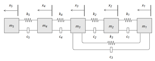 A A A Volume : 44 Part : 2 A fully-coupled vibro-acoustic model of an electronic stethoscopeSnehashis Mukherjee 1Department of Mechanical Engineering Indian Institution of Technology Palakkad India 678557Dr. Anoop Akkoorath Mana 2Department of Mechanical Engineering Indian Institution of Technology Palakkad India 678557ABSTRACTA piezoelectric based stethoscope picks pressure fluctuations originating from the patient and the physician sides. This may include unwanted acoustic signals from the patient and the doctor sides of the stethoscope, which needs to be filtered either electronically or mechanically by appropriately designing the vibro-acoustic elements of the electronic stethoscope. This work intends to establish a mathematical model of the piezoelectric stethoscope. Initially, a multi-degrees of freedom vibration model of the electronic stethoscope is developed. The model is used to compute the response of the piezoelectric plate due to the pressure excitations on the input side and that due to the displacements of the connected mechanical elements in the stethoscope. Further, a two-port lumped parameter model of the piezoelectric composite plate is developed to compute the output voltage created by the displacement of the piezoceramic disc. Here, an axisymmetric plate model is used to find the displacement of the piezoelectric composite plate. Subsequently, the vibration and the lumped parameter piezoelectric models are combined to represent the fully-coupled vibro-acoustic characteristics of the piezoelectric stethoscope. The model is further used to predict the voltage output from the piezoelectric stethoscope for certain pressure excitation at the patient side.1. INTRODUCTIONA stethoscope is the most common and crucial medical instrument that physicians use to primarily identify a prevailing medical condition of a patient. The design of an acoustic stethoscope is simple and effective [1]. There are two parts to an electronic stethoscope- (a) the chest piece, which works as a diaphragm and receives the signal, generated by the heart, (b) the bin-aural tube, which amplifies and transmits the sound to the physician’s ears.The noise cancellation and sensitivity of the chest piece are not very effective in the acoustic stethoscopes. A piezoelectric-based electronic stethoscope comes in handy here. The electronic signals generated by a piezoelectric stethoscope may be filtered or amplified appropriately to the specific requirement of a medical condition.1 snehashismukherjee1999@gmail.com / 131801028@smail.iitpkd.ac.in2 akkoorath@iitpkd.ac.in21-24 AUGUST SCOTTISH EVENT CAMPUS ? 02 ? GLASGOW L,=a J] - VvThe current work aims to develop a mathematical model of the piezoelectric stethoscope. The mathematical model has two components- (a) a multi-degrees of freedom vibration model of the stethoscope and (b) a two-port lumped parameter model of the piezoelectric composite plate (unimorph). Subsequently, the vibration and the lumped parameter piezoelectric models are combined to represent the fully-coupled vibro-acoustic characteristics of the piezoelectric stethoscope. The model is further used to predict the voltage output from the piezoelectric stethoscope for certain pressure excitation at the patient side.2. THE MULTI-DEGREES OF FREEDOM VIBRATION MODELThe electronic stethoscope consists of five parts: piezoceramic disc ( m 2 ) , steel plate ( m 1 ), transducer housing ( m 3 ), the foot ( m 4 ) and chest piece ( m 5 ). The mechanical model of the electronic stethoscope is established by creating a multi-degrees of freedom vibration model. The model (see Figure 1) deals with five discrete masses which are connected with one another via the spring-mass-damper system. This model is derived to study the response of the piezoceramic plate due to given excitation on the steel plate. Next, we derive the forced vibration equation of motion of this model.Figure 1: The multi-degrees of freedom vibration model.The Lagrange's equation [2]:. (1), (2) where T = kinetic energy, V = Potential energy, Q = Work done. Further, the T , V and Q are derived and substituted in Eq. (1) to obtain the equation of motion of the system:, (3) where,, ,x5 xa x x . Wwf m x . } AW tw m co ka m3 : @ ks ma 7 ms 6% G21-24 AUGUST SCOTTISH EVENT CAMPUS ? 02 ? GLASGOW Tr iy ay li WwW F=| #, IF Pp | JP medic p, , , k 5 is the stiffness coefficient between chest piece housing and foot, k 4 is the stiffness coefficient between foot and transducer housing, k 3 is the stiffness co-eff. between transducer housing and steel plate, k 2 is the stiffness coefficient between transducer housing and piezo, and k 1 is the stiffness coefficient between piezo and steel plate [3].For starting the analysis, the equation of motion of the vibrational model should be represented as a state-space model. In this case, the vibrational model state is:. (4) The state-space representation of the differential equation (Eq. (3)) related to the vibrational model is given as follows:, (5) where,, , .3. THE LUMPED PARAMETER PIEZOELECTRIC MODEL3.1 Two-port Electro-acoustic Model of the Piezoelectric DeviceTo convert the pressure pulses into voltage signals we consider a piezoceramic devices. The output voltage from the piezo is proportional to the strain due to bending. The Lumped Element Model (LEM) of piezoelectric material has been discussed in [4] but in the LEM the z-dependence of the material properties has been omitted. In this article, we focused on studying the system including the z-dependence of the material properties. The specific piezo element within this stethoscope is taken as an axisymmetric piezo unimorph. To construct the output equation of the piezoelectric model, we assumed that the piezo is a LEM. This LEM gives us the freedom to construct an equivalent two-port electrical circuit (see Figure 2) and to provide a simple method to calculate the voltage output of the piezo for design and optimisation. In the two-port LEM model, there a