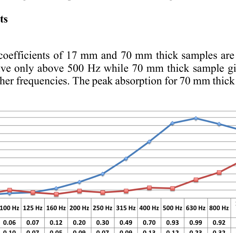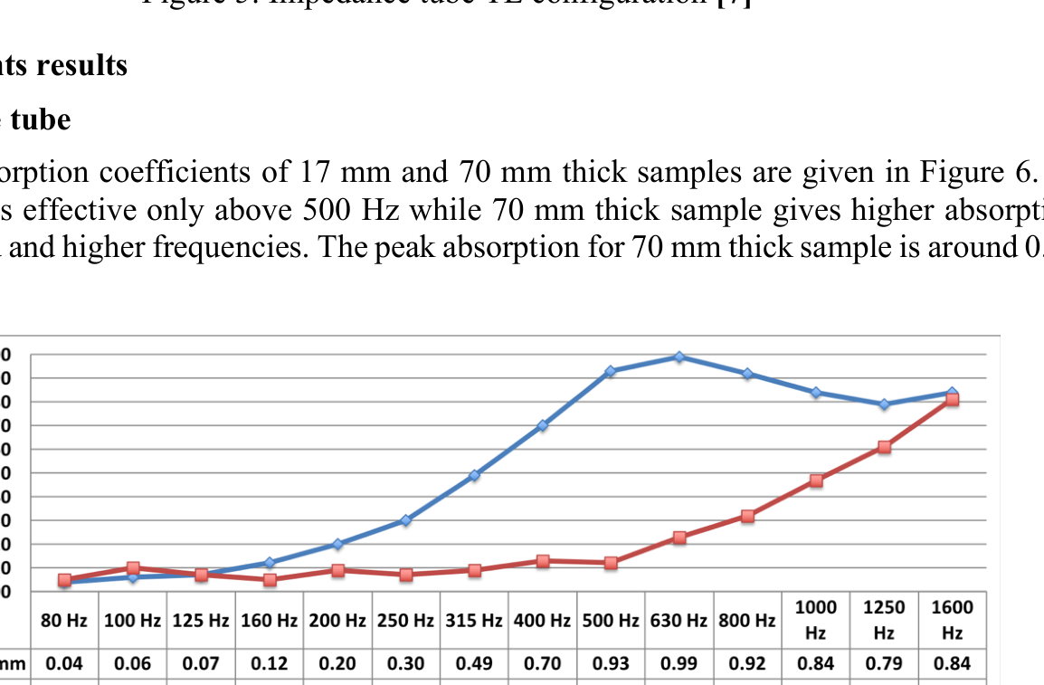 A A A Volume : 44 Part : 2 Acoustic wave propagation through panels that are made of used tea bagsStefano Mundula 1 and Haydar Aygun, PhD 2 London South Bank University School of the Built Environment and Architecture, 103 Borough Rd, London, SE1 0AA, UKABSTRACTThese days more than ever, society habits raise the necessity to consider the future of the environment. This presentation will tackle the aspect of more eco-friendly sound absorbing materials, more spe- cifically analysing the properties of consumed tea bags, starting from the collection up to the appli- cation and measurement of the final product. Many good options are often avoided, or not imple- mented for the lack of reliable properties analysis, encouraging existing materials to be chosen in- stead. The more information could be found about new materials, the more these could have a chance to be used, compared, or eventually improved. Sound absorbing panels that are made of tea bags were designed and developed to investigate sound transmission through tea-bag panels. Measure- ments were carried out on tea-bag panels in an impedance tube using a transfer function method to determine their sound absorption and transmission loss. Furthermore, the impedance gun system was used to determine acoustical properties of larger panels. Results show that 70 mm thick panels give an absorption coefficient higher than 0.8 between 500 Hz and 1600 Hz while 17 mm thick panels give an absorption coefficient that is mostly effective at higher frequencies. Up to 9 dB sound transmission loss is obtained at some frequencies.1. INTRODUCTIONTea became part of our life since 2500 B.C. Around six million tons of fermented and unfermented tea is being used by people every day across the world. Tealeaves are biodegradable but the plastic that is used to make tea bags is not recyclable or biodegradable. Conventional tea bags can’t totally decompose due to its plastic content. Therefore, these plastics can cause environmental pollution. For this investigation, the tea is supposed to stay inside the original bags after being used and then washed. However, it is a common practice to seal the bags with a sort of non-poisonous glue, even though it should be said that the main brands in the UK signed the WRAP’s UK Plastic Pact to get rid of all the plastic by the end of 2025 [1]. The bags used for the project do not contain any plastic. Despite the acoustic side of the problem, where plastic could interfere with the properties of the pure material, it is important to mention that a recent preliminary study by McGill University in Montreal Canada [2] , pointed out how the plastic in tea bags leaks into the beverage leaving billions of microplastics that can be harmful for the users and the environment, further studies will have to make clear if the phenomenon is actually harmful.According to Wong [3] Spent Tea Leaves (STL) when compressed and mixed with natural rubber latex binder present a very good resistance to fire, to termites and fungal growth, as they are rich in1 stefanomnd@gmail.com2 aygunh@lsbu.ac.ukscorn EEE DD red polyphenols (tannins). The paper shows a table comparing three types of tea, where the finest quality presents the best acoustic properties with sound absorption coefficients from 0.84 to 0.96, for the range of frequencies between 2 kHz and 4 kHz.scorn EEE DD redThe statistical facts about tea show that the countries where people drink more tea are different from the ones actually producing it the most. According to FAOSTAT [4] the global annual production in 2019 (most recent available) was of 6.101.062 tons with a global market size of nearly 50 billion of U.S dollars, 18 of which only regarding China. In-fact China seems to be massively more important compared to the rest of the list when comes to tea production, probably due to its ideal mild climate. Substantially the countries where tea farming has had the longest trading history like China, India and Kenya, continued to see tea production a very advantageous market. An interesting fact from the website statista [5] , reports that Turkey manages to be one of the top six countries producing tea, but when observing its consumption, appears to be first with almost seven pounds pro-capite in 2016, well much more compared to other countries, meaning that the Turkish production is mainly due for the local consumption. Ireland and UK confirm their tea drinking tradition as expected.2. PANELS MADE OF USED TEA BAGSThe project, as well as the acoustic performance of the material, explored the production side of the panels to better understand the potential and main difficulties that might occur.2.1 PreparationThe activity started collecting as many used tea bags as possible through a public Café. 400 tea bags were collected through public Café. Collected tea bags were washed and then dried. However, this could be optimised if implemented on a large scale with the help of industrial facilities and equip- ment, such as dryers. In order for the panels to be assembled, the tea bags have been rolled (see Figure 1), two panels 40cm x 40cm x 7.5cm were built and each panel needed about 1300 units to be com- pleted.Figure 1: Preparation processParticular attention is required for the product to be dried as mould would spread and ruin the whole panel and when assembling it is important to keep the surface as uniform as possible, with no gaps between bags. The total weight of the panel was 3.016 kg, keeping out the weight of the frame of 0.7576 kg the tea would weight 2.2584 kg, giving a density of circa 208.5 kg/m 3 . scorn EEE DD red2.2 MeasurementsFor the purpose, three different measurement procedures were used, determining the sound ab- sorption coefficient ( a ) and transmission loss (TL) of various samples with the use of an impedance tube and an impedance gun.2.2.1 Sound absorption using impedance tubeA sample of test material with a movable rigid backing is placed at one end of a tube and