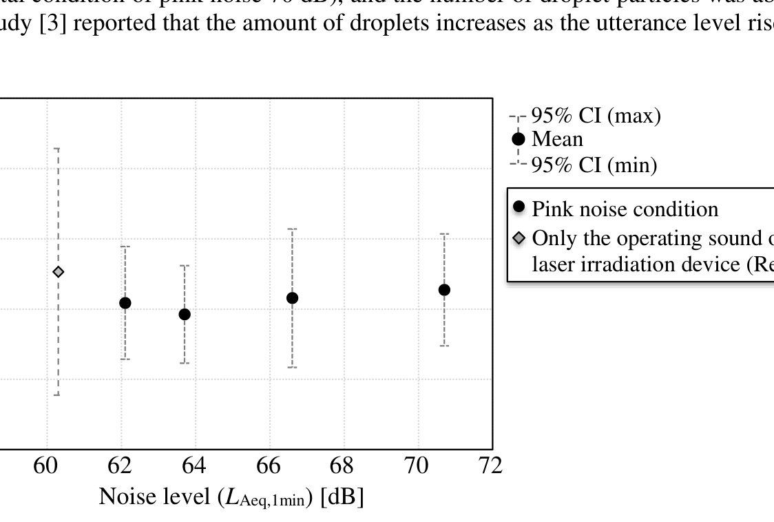 A A A Volume : 44 Part : 2 An evaluation method for risk of virus exposure by droplets with a focus on the sound environment Sohei Tsujimura 1 Graduate School of Science and Engineering, Ibaraki University 4-12-1 Nakanarusawa, Hitachi, Ibaraki 316-8511, Japan Kohyoh Kitani 2 Graduate School of Science and Engineering, Ibaraki University 4-12-1 Nakanarusawa, Hitachi, Ibaraki 316-8511, Japan Yanrong Li 3 Graduate School of Science and Engineering, Ibaraki University 4-12-1 Nakanarusawa, Hitachi, Ibaraki 316-8511, JapanABSTRACT The aim of this study was to propose a new method to evaluate the risk of viral infection by droplets from the aspect of the sound environment. To achieve this aim, we attempted to grasp quantitatively the relationship between speech levels and the amount of droplets when talking while eating at a restaurant. A psychoacoustic experiment was conducted with a speaker and a listener as subjects under a condition in which the pink noise level varied at 5-dB intervals from 55 dB to 70 dB. Based on the results, the effects of background noise level on speech level were examined and the relation- ship between speech level and the number of droplets was clarified. Although speech levels tended to increase with increases in the background noise level within the range of 60–70 dB, no signifi- cant difference was found in the number of droplets with particle sizes 125 m. 1. INTRODUCTIONIn January 2020, the first person in Japan infected with the novel severe acute respiratory syndrome coronavirus 2 (SARS-CoV-2) was identified. Even as of March 2022, the resultant coronavirus dis- ease 2019 (COVID-19) pandemic continues to unfold. The main infection controls for COVID-19 are organized by infection route [1]. Hand washing and disinfection by alcohol have been shown to be effective for preventing contact transmission, while active indoor ventilation such as opening windows is recommended for airborne infection. For droplet infection, wearing a mask and social distancing are mentioned as infection control measures. As a countermeasure against COVID-19 droplet and airborne infection, it is important to reduce exposure to droplets and droplet nuclei. Re- garding droplet infection, it has been recommended to maintain social distancing of at least 2 m from others because the spread of droplets generated during utterance is about 1–2 m [2]. For air-1 sohei.tsujimura.fifty@vc.ibaraki.ac.jp2 kitkouad@gmail.com3 yanrong.li.mech@vc.ibaraki.ac.jpworm 2022 borne infection, the Ministry of Health, Labour and Welfare of Japan has officially announced a ventilation method for improving “closed spaces with poor ventilation” in commercial facilities, etc. This method recommends meeting a ventilation requirement of 30 m 3 fresh air volume/h per person and setting the air change rate to ≥2 times/h. However, these are not surefire infection pre- vention measures. In addition, “Avoiding poorly ventilated closed spaces”, “Reducing the density of people”, and “Avoiding short-distance conversations, vocalizations, and singing” have been pro- posed by an expert conference of the Ministry of Health, Labour and Welfare in Japan as infection controls to prevent situations conducive to outbreaks of disease clusters.Focusing on restaurants that serve alcohol, the food service industry has been greatly affected by the application of closings and shorter business hours as necessitated by emergency COVID-19 measures and the declaration of a national state of emergency. Infection controls such as “Wear a mask except during meals”, “Do not speak loudly”, and “Ensure sufficient space between seats and install partitions” recommended at restaurants. However, wearing a mask other than during a meal is difficult for patrons, and conversations at short distances are likely to occur. It has been reported that the droplet particles emitted during utterance change with voice amplitude, and that the amount of droplet particles emitted tends to increase when the voice amplitude is large [3]. Regarding the relationship between conversation conditions and speech levels, it has been reported that speech levels change depending on the distance from the conversation partner and are affected by the background noise in the room [4]. Aligning these findings, if speech levels rise because of increased background noise, the amount of droplets will increase, and consequently, the risk of viral infection. However, the risk of viral infection has seldom been discussed from the aspect of the sound envi- ronment. Therefore, in the present study, to clarify quantitatively the relationship between noise levels and the amount of droplets in an utterance, the infection probability was calculated based on the amount of virus in droplets. In addition, the risk of droplet infection in situations with relatively higher background noise levels, such as restaurants that serve alcohol, was investigated. 2. PSYCHOACOUSTIC EXPERIMENTIn the present study, to grasp quantitatively the relationship between indoor noise levels in a restau- rant during a conversation and the amount of droplets, we conducted a psychoacoustic experiment under sound environment conditions with relatively high background noise levels. The probability of infection was then calculated based on the amount of virus in droplets, and the relationship be- tween background noise levels and the risk of droplet infection was evaluated.2.1. Experimental Procedure The study participants were 20 males in their 20s who had normal hearing that did not interfere with their daily lives. One speaker and one listener were assigned to each group, and 20 participant groups were created. Participant groups in this experiment were 10 pairs of males and 10 pairs of male speakers and female listeners, for a total of 20 pairs. The speakers and listeners were not ac- quainted with each other. The interpersonal distance was set to 2 m, and pink noise was used as background