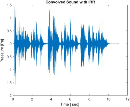A A A Volume : 44 Part : 2 A virtual reality tool to aid in soundscapes in the built environment (SiBE) through machine learning Semiha Yilmazer 1 Ray W. Herrick Laboratories Purdue University 177, S. Russell Street, West Lafayette, IN, 47907, USA Patricia Davies 2 Ray W. Herrick Laboratories Purdue University 177, S. Russell Street, West Lafayette, IN, 47907, USA Cengiz Yilmazer 3 CSY R&D and Architecture Engineering, Bilkent, Ankara, 06800, TurkeyABSTRACTCan we use virtual-reality tools to design audio-visual elements and optimize them for the user’s benefit? A sound simulation algorithm in MATLAB was developed to extract the room impulse re- sponse of the test environment in a virtual environment (IRV) and compare it with the real environ- ment (IRR). In the developed program, the image source model (ISM) was used to be performed the real-time acoustic source generation and real-time signal recording, image functions, data pro- cessing, and metric calculation operations. To achieve audio and psychoacoustic analysis, we used a nature sound (Bird) and human-generated sound (Speech) as the original sound signals. B&K 4292 Omni-power loudspeaker, B&K 2716 power amplifier, and B&K 2250 hand-held analyzer were used to measure impulse response in the real environment. In addition to impulse response, psychoacoustic metrics such as loudness, sharpness, roughness, and fluctuation strength were calculated in both environments. The results showed that sound simulation, based on the image source model, demon- strates validation of the virtual environment, and can be used to characterize virtual reality develop- ment environments.1. INTRODUCTIONIt is a fact that manipulation has been used for centuries to influence, direct, convince, and even trick people. Architectural space accommodates many elements that affect the space’s visual1 syilmaze@purdue.edu2 daviesp@purdue.edu3 censem64@hotmail.comi, orn inter.noise 21-24 AUGUST SCOTTISH EVENT CAMPUS ? O? ? GLASGOW perception, such as form, color, material, and light. Naturally, people can be impressed with a created space through its manipulation. Additionally, types of “dimensional, thermal, and audio” perception also affect our spatial perception. Can people’s perceptions of the spaces be manipulated by changing acoustic stimuli? Can we use the results of manipulations to design better spaces?The use of virtual reality aims to allow users to manipulate and experience the environment before it is physically modified or built. Would they change the virtual environment in the same way they would wish to alter the environment in the real world? Virtual reality is an immersive world where people can both explore and interact with the world that is created by using 3-dimensional computer technologies. Can we use virtual-reality tools to design audio-visual elements and optimize them for the user’s benefit? Can we imagine a system to create a virtual environment where we could overlap more than one sound object or get rid of the sounds that we do not prefer to hear, even when exposed to them due to the environment surrounding us? To answer these questions, we can refer to acoustics in architectural design, which would provide us with aspects such as sonic environment manipulation, visual-audio interactions, and the characterization/analysis of the space.i, orn inter.noise 21-24 AUGUST SCOTTISH EVENT CAMPUS ? O? ? GLASGOWWithin the sound quality assessment, psychoacoustic metrics such as loudness, roughness, sharpness, and fluctuation strength are used to help optimize the sounds within an environment to make them more pleasing 1 . This study enables the acoustic characterization of a virtual reality development tool to measure auditory perception based on user behavior. It aims to collect acoustic measurements from the real environment, create the virtual environment using the developed sound simulation program, and compare their results to validate the new virtual environment tool. 2. METHOD2.1. SettingsTo achieve audio and psychoacoustic analysis, we used a nature sound (Bird) and human-generated sound (Speech) as the original sound signals. Both have a 44100 Hz—file sampling rate. The duration of the bird signal is 2.45 s, while speech one is 9.94 s.(a) (b)an gh at an ae a ae | Vee N z a s 2 oy $ z 2 rm ee i)Figure 1: The spectrograms of original sound signals: (a) Bird and (b) Speech (F)SPEECH (F).wav Nv = x, > fs) c oy P] > 2 rm Ai il LS sD ed Figure 1 reveals the spectrogram of the original signals we used during the experimental setup. As seen in the spectrograms, the bird’s sound runs from left to right, with the high-pitched notes near the top, seeing in Figure 1 (a). It consists of reverse parts, separated by pauses approximately one-third of a second long. The phrases repeat except for the first ones. Like the bird spectrogram, the female speech spectrogram, given on the right side, shows the Fourier Transform of a signal as it varies with time. The magnitude of the frequency components is represented as changing colors from cold to warm colors, which means the warmer the color, the higher the magnitude. Color-mapped spectro- gram of a female voice says, “One of the universal rules of happiness is, always be wary of any helpful item that weighs less than its operating manual.” Voicing runs left to the right, and the lines represent a row of energy in very low frequencies, corresponding to the energy in the first and second harmonics. Figure 1 (b) shows that the pausing represents non-voicing, which is the silence between the vocals. Each vertical ‘line” means a single pulse of the vocal folds, a single puff of air moving through the glottis. Bird sound has the biggest energies at high-frequency components, from 5 kHz to 10 kHz, while speech has it from 125 Hz to 1 kHz. Some voiced fricatives increase the magnitude of the phrases through the 10 kHz sometimes, e.g., alwa-“ys” in 4s. and “le-ss th-an” in 8s. They sh