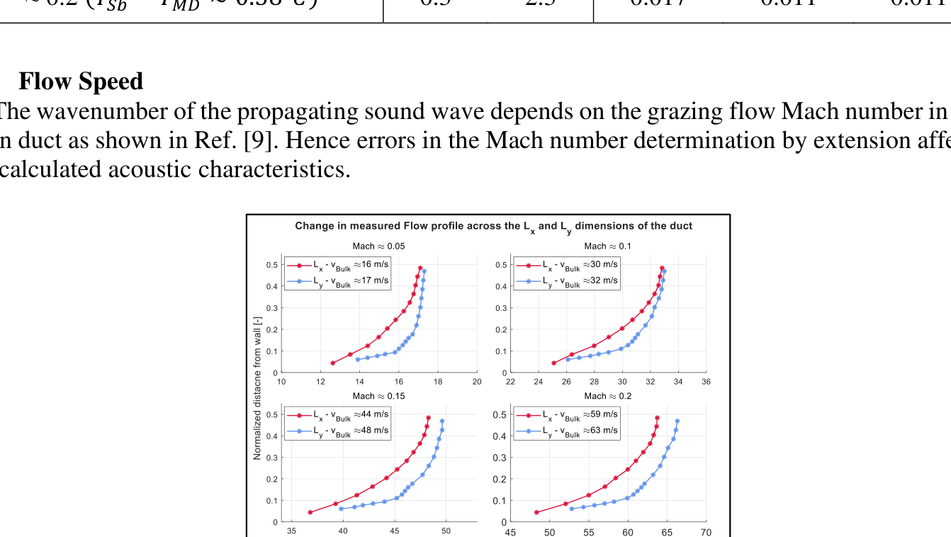 A A A Volume : 44 Part : 2 Study On the Effect of Operating Conditions on Acoustic Three-PortMeasurements of Perforates in presence of Grazing Flow Shail A. Shah 1 , Hans Bodén 2 , and Susann Boij 3 MWL, Dept. of Engineering Mechanics, KTH Royal Institute of Technology, Teknikringen 8, SE-100 44 StockholmABSTRACT Different impedance eduction methods have been previously used to study the acoustic proper- ties of perforated plates in the presence of grazing flow, giving varying results. The work pre- sented here is to contribute to the ongoing experimental research on the acoustic behaviour of perforates under different acoustic excitations and flow conditions. Here, a three-port tech- nique is used to study the aero-acoustic properties of perforates, which allows to observe the acoustic field on both sides of the perforate. Experimentally determined characteristics of the perforate are dependent on the operating conditions like grazing flow speed, microphone dis- tances, standing wave pattern, and temperature. This study aims to provide the experimental analysis on the effect these factors have on the calculated perforate properties, namely the transfer impedance and the scattering matrix. 1. INTRODUCTIONUsage of perforates and micro-perforates for sound attenuation and noise control has gained pop- ularity in the last few decades. Significant research contributing to study the aero-acoustic properties of perforates have been carried out in the last forty years, part of it summarized Refs. [1, 2]. A majority of the research is conducted on aircraft liners, of which perforates are an integral part. Impedance eduction methods are traditionally used to determine the aero-acoustic properties of liners which in- volve mapping the sound field in the lined section. However, this study involves usage of direct methods for the characterization of the perforates following Ref. [3]. The three-port method for acous- tic characterization of perforates is based on Refs. [4, 5], and has been implemented in Refs. [6, 7]. Using the three-port method a study of the aero-acoustic properties of the perforate was made under acoustic excitation from three-directions while under the effect of grazing flow, as shown in Figure 1.1 shail@kth.se2 hansbod@kth.se3 sboij@kth.seworm 2022 Sidebranch+Duct 3P 3Δ Pworm 2022uu_P 3_P 2D o w n str e a m++P 2P 1Duct 2𝜏 2→1 𝜌 2 𝜌 1 𝜏 3→1 𝜏 3→2Upstream𝜏 1→2_P 1Duct 1Flow𝜏 2→3 𝜏 1→3Test SampleFigure 1 a.) Schematic of the three-port setup; b.) Calculation of normalized transfer impedance; c)𝜌 3Scattering Matrix elements [7]P)- Nw aN Downstream Duct Upstream Duct Test Sample no er Sidebranch DuctKey parameters for the characterization of the acoustic properties of a perforate which are of in- terest in this study are its normalized transfer impedance, and the three-port scattering matrix [4], as shown in Figure 1. Calculation of these properties is carried out in presence of grazing flow using the multi-microphone method, as explained in Ref. [7]. Frequency response functions between the pres- sure signals acquired by the microphones and a reference signal under stepped sine excitation are considered for calculating the sound field in the three-port. This is done to avoid errors related to the presence of flow noise. Errors related to the acquisition of the pressure signal by the microphones deserve a detailed study of its own, and hence are not covered in the work presented here. However, errors pertaining to the operating conditions during the measurements, e.g., in-duct temperature, mi- crophone positioning and flow velocity affect the calculations significantly and are the focus of this study. Individual effect of these errors on the resulting resistance and S-Matrix coefficients curves is studied and the behaviour of the errors in presence of grazing flow is discussed. 2. ACOUSTIC CHARACTERIZATIONThe ratio of difference in the acoustic pressure over the perforate ( ΔP ) and the partic le velocity ( 𝑢 ) calculated at the perforate surface is defined as its normalized transfer impedance ( 𝑍 ), where the normalization is with respect to the characteristic impedance of air. The physical damping of the incoming pressure waves by the dissipation of its kinetic energy is described using the real part of the impedance, i.e., the resistance ( ℜ ). It is governed by Equation (1) [7]:ℜ= 𝑟𝑒𝑎𝑙(𝑍) = 𝑟𝑒𝑎𝑙ቀ 𝑃 3 −𝑃 0 𝑃 3− −𝑃 3+ ൗ ቁ , (1)where 𝑃 0 is the pressure wave amplitude measured by a microphone flush mounted on the duct wall at the intersection of duct- 1 and -2, opposite to the perforate, and 𝑃 3− , 𝑃 3+ are the decomposed pres- sure wave amplitudes in duct-3, as shown in Figure 1. Determination of 𝑃 0 can also be done averaging the total acoustic pressure wave amplitudes in duct-1 and -2, as shown in Ref. [7]. Apart from the resistance, the relation of the incoming and outgoing sound waves with respect to the sample are also studied using the three-port scattering matrix (S-Matrix), as governed by Equation (2) [4]:𝑃 1+ 𝑃 2+ 𝑃 3+𝑃 1− 𝑃 2− 𝑃 3−𝜌 1 𝜏 2→1 𝜏 3→1 𝜏 1→2 𝜏 1→3൩, 𝑜𝑟 𝐏 + = 𝐒𝐏 − , (2)𝜌 2 𝜏 2→3𝜏 3→2൩= ቈ𝜌 3where 𝑃 𝑥± is the decomposed wave pressure amplitudes in duct x. The subscripts '+' and '-' depict the directions as per Figure 1, ρ and τ describe the reflection and transmission coefficients, respectively, and the subscripts represent the respective ducts.In Equation (1), directly using 𝑃 0 from the measured pressure wave amplitudes makes it suscepti- ble to the presence of anti-nodes present at the microphone position and by extension errors created due to standing wave pattern. To avoid this, resistance can also be determined using S-Matrix coef- ficients as shown in Ref. [7], using Equation (3).(𝜌 1 +𝜏 1→2 +1)(𝜌 2 +𝜏 2→1 +1)1+𝜌 3 1−𝜌 3 