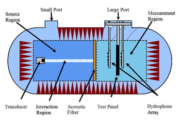 A A A Volume : 44 Part : 2 Comparing Acoustic Measurements of Underwater Materials in Pressure Tanks Using a Calibration Panel Scott E Kasprzak 1 Naval Surface Warfare Center, Carderock Division 9500 MacArthur Blvd Bethesda, MD 20817 USA Matthew A Craun 2 Naval Surface Warfare Center, Carderock Division 9500 MacArthur Blvd Bethesda, MD 20817 USA Stephen P Robinson 3 National Physical Laboratory Hampton Rd Teddington TW11 0LW, UKABSTRACT Researchers in the United Kingdom and the United States worked together to compare acoustic panel measurement methods and equipment using a calibration test panel in two temperature- and pressure-controlled tank facilities. Underwater testing can be used to calibrate various transducers or to measure acoustic properties of materials. The calibration panel used in this study consisted of a urethane material. Tests were initially conducted in the Acoustic Pressure Vessel (APV) at the National Physical Laboratory (NPL) in Teddington, UK and were subsequently performed in the Acoustic Pressure Tank Facility (APTF) at the Naval Undersea Warfare Center (NUWC) in Newport, Rhode Island, USA. The UK tank is a smaller-scale version of the US tank. However, the measurement approaches developed by the two groups of researchers differs. The UK utilizes a parametric source with a baffle and a planar hydrophone array for reflection and transmission measurements. The US uses a spherical source, a linear pseudo-array along with coherent subtraction for reflection, and a single hydrophone for transmission measurements. Results show that the measurement methods generally agreed on the panel’s acoustic response, but differences varied based on environmental conditions and as a function of frequency. Potential sources of error were enumerated and are discussed.1. INTRODUCTIONThe acoustic behavior of materials in water are of interest in numerous maritime applications such as sonar, noise control, and underwater communications. Underwater acoustic measurements of materials can be used to extract standard material properties [1] at various temperatures and pressures, as well as the dilatational wave speed [2] and the influence of the backing substrate [3]. But rather1 scott.e.kasprzak.civ@us.navy.mil 2 matthew.a.craun.civ@us.navy.mil 3 stephen.robinson@npl.co.uk than study the material properties of any material of interest, the purpose of this investigation was to compare and contrast the measurement equipment and methods developed separately by US and UK investigators. A calibration/reference panel was fabricated by the UK and tested at both facilities. The simplest method of capturing the energy incident upon, reflected from, and transmitted by the test panel is via a single hydrophone placed on either side of the test object [4]. The measurement quantity being investigated during this set of experiments was the reflection loss for the material. The reflection loss, RL, is defined as:𝒑 𝒓𝒆𝒇𝒍𝒆𝒄𝒕𝒆𝒅𝒑 𝒊𝒏𝒄𝒊𝒅𝒆𝒏𝒕 ) , (1)𝑹𝑳= −𝟐𝟎∗𝐥𝐨𝐠 𝟏𝟎 (where p is the reflected or incident pressure, as measured at the same source-side reflection hydrophone. The measurement of the reflection loss is particularly challenging in pressure tanks and thus was the focus of the experimental comparisons. The high sound speeds in the medium and the comparatively small dimensions of the tank limit the separation time between desired direct arrival and undesired wall reflections at the measurement point. Additional complications exist due to edge scattering from the panel itself and the rigging that supports the panel. The need to separate the incident and reflected pressures at the hydrophone(s), combined with signal contamination sources and arrival times, creates an experimental challenge especially at low kilohertz frequencies. It is, therefore, necessary to subtract from the reflection time history an incident signal recorded at the same point and under the same conditions without the test panel present [5]. Coherent subtraction, judicious timegating, proper window selection, and advanced signal processing are used to minimize the impacts of the undesired factors on the measurement. Of particular interest to the researchers at both locations was the level of the panel’s response as well as the frequency and amplitude of any peaks or valleys.The results of this paper focus on the reflection characteristics of the panel, but the techniques can be extended to transmission behavior. The transmission loss, TL, is defined as:𝒑 𝒕𝒓𝒂𝒏𝒔𝒎𝒊𝒕𝒕𝒆𝒅𝒑 𝒊𝒏𝒄𝒊𝒅𝒆𝒏𝒕 ) , (2)𝑻𝑳= −𝟐𝟎∗𝐥𝐨𝐠 𝟏𝟎 (where 𝑝 is the transmitted or incident pressure, as measured at the behind-panel transmission hydrophone. Typically the transmission hydrophone is placed as close behind the panel as practicable to minimize the impact of diffracted waves on the measurement. When measuring the transmission loss, it is not possible to capture the incident signal at the measurement point behind the test panel for reference, and for this reason a separate measurement must be made to capture the incident signal without the test panel present.2. TEST ARTICLE AND MEASUREMENT CONDITIONSMeasurements were conducted on a test panel designed to have suitable performance in the frequency range 1 kHz to 15 kHz. The panel was 800 mm wide, 900 mm high, and 125 mm thick. The test panel was designed and manufactured by QinetiQ, Ltd. and consisted of a two-layer acoustic absorber fabricated from polyurethane, to which Expancel spheres had been added as a filler material. The panel is shown in Figure 1. Figure 1: Test panel used for measurement comparisons.Conditions of measurement: Frequency range: 1 kHz – 15 kHz Pressures: 0.1 MPa, 0.7 MPa, 1.4 MPa, and 2.8 MPa, Temperatures: 8 °C & 20 °C3. TESTING FACILITIES AND EQUIPMENT3.1. United StatesThe Underwater Sound Reference Division (USRD) was e