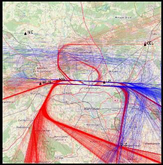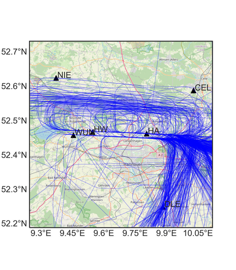 A A A Volume : 44 Part : 2 A quantitative approach to density–based clustering of flight trajectories for e ffi cient air tra ffi c noise simulationsShreyas M. Guruprasad 1 , Gil Felix Greco 2 , Tobias P. Ring 3 and Sabine C. Langer 4Institute for Acoustics (InA), Technische Universität Braunschweig Langer Kamp 19, D-38106 Braunschweig, GermanyABSTRACT The increased availability of air tra ffi c data has enabled the application of data–driven approaches to support the simulation of noise contours around airports. Aiming at e ffi cient aircraft noise simulations, this contribution proposes a framework for the probabilistic description of the air tra ffi c around an airport. The methodology is based on flight trajectory clustering using the density–based algorithm OPTICS. The clustered trajectories serve as a basis for the creation of backbone and dispersion tracks, which, together with a prescribed number of flight operations per aircraft type, provide a probabilistic description of the air tra ffi c to the noise simulations. A major focus is given to quantitatively assess the sensitivity of the OPTICS algorithm to di ff erent hyper–parameters to reduce the dimensionality of the problem. This framework is demonstrated utilizing a dataset of ADS–B flight trajectories associated with flights approaching the Hannover airport. Noise simulations based on the ECAC Doc. 29 best–practice method are conducted using the software SoundPLAN. A good agreement between noise contours is obtained when comparing simulations performed using the proposed framework and the full dataset while the computational time required is decreased. Furthermore, this approach identifies most of the trajectory patterns with the least amount of outliers.1. INTRODUCTIONThe expansion of Automatic Dependent Surveillance-Broadcast (ADS–B) technology has enabled open–source flight tracking data to become publicly available, supporting the analyses of aircraft operations at a large scale. This technology helps to track the position of an aircraft, along with other relevant parameters, by sending periodic messages to ground receivers and other aircraft. Recently, ADS–B data has been used in the context of many data–driven applications, such as the identification of air tra ffi c flows [1], to improve time of arrival estimations [2], and for the prediction of aircraft emissions [3], to name a few. Flight trajectory data provided by ADS–B sensors can be used for the study of aircraft noise in many di ff erent ways. Concerning aircraft noise simulations based on best–practice methods, such1 s.guruprasad@tu-braunschweig.de2 g.felix-greco@tu-braunschweig.de3 t.ring@tu-braunschweig.de4 s.langer@tu-braunschweig.deinter.noise % 2022 as the Doc. 29 from the European Civil Aviation Conference (ECAC) [4], ADS–B data is suitable to provide input information describing the aircraft’s trajectory in terms of geographical position, altitude and velocity. Moreover, the ADS–B data can be used indirectly for best–practice aircraft noise simulations based on a probabilistic representation of the air tra ffi c. This is achieved by identifying air tra ffi c flows around an airport, which are then individually described in the noise simulations as flight corridors by so–called backbone– and side–tracks along with its corresponding number of flight movements. Therefore, in this case the noise simulations are performed based on the probabilistic description of flight movements along a flight route instead of considering all individual flight movements occurring at the same route. The probabilistic approach is specially useful for the noise forecast of future air tra ffi c scenarios, when data concerning single flight trajectories explicitly is not yet available. Moreover, this approach has been previously demonstrated to be more e ffi cient in terms of computational cost when compared to the use of a full dataset of flight trajectories for the noise simulation of large air tra ffi c scenarios [5]. The identification of air tra ffi c routes around an airport requires a large dataset of flight trajectories and is typically performed using density–based clustering algorithms [6, 7] to automatically extract main air tra ffi c flows from a sample of flight track data in the region of interest. In this context, a flow can be defined as a pattern in which 1) entities move along the similar paths / routes in a spatial dimension and 2) the movements starts / ends within the same time interval. Moreover, the identification of air tra ffi c flows from aircraft tracking data can be framed as a problem of discovering spatial and temporal trends in the collective movement of aircraft through space and time [8]. Aiming at e ffi cient noise simulations, this contribution proposes a framework for the probabilistic description of the air tra ffi c around a medium–size airport based on density–based flight trajectory clustering. Traditional clustering algorithms are very sensitive to values of input parameters, often producing very di ff erent partitioning of the data set even for slightly di ff erent parameter settings [9]. Therefore, we quantify the influence of the input hyper–parameters on the clustering performance using local and global sensitivity analysis. Thereafter, an optimal input parameter setting for trajectory clustering is used for deriving a probabilistic description of the air tra ffi c. Finally, aircraft noise simulations are performed and the results obtained using the probabilistic model are compared to the results obtained using the full flight trajectory dataset, where each flight trajectory is individually simulated. This work is structured as follows: the methodology used for this purpose is introduced in Section 2, which includes the description of the steps involved in the pre–processing of the flight trajectories, evaluation of the performance of the clustering algorithm, and the details of the pr