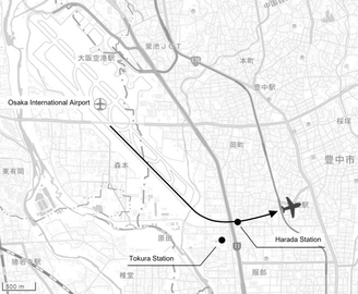 A A A Volume : 44 Part : 2 Runway determination using two-point time difference method Taichi Higashioka 1 Yoshio Tadahira Manabu Sugiura Etsushi Fujita Osamu Kohashi Nihon Onkyo Engineering Co., Ltd. 1-21-10 Midori Sumida-ku Tokyo, JapanABSTRACT Around airports having multiple runways, aircraft noise affected areas vary depending on the runway operation because the flight path changes by the operation. Therefore, it is important to figure out exactly which runway was used for analyzing the noise impact on the surrounding area. For this purpose, runway information included in flight data provided by the airport operator can be used in most commercial airports. However, for some airports, the data is unavailable or not always accu- rate. We developed “Takeoff/ landing runway determination system; DL-TLS” for determining run- way operations and have been utilizing it to aircraft noise analysis. However, that system requires to place measurement stations at the end of each runway to ensure the high level of accuracy. To solve this issue, we focused on difference in acquisition time of the same transponder signal at two meas- urement stations. This new approach achieved satisfactory level of runway determination accuracy, by matching the time difference changes with template for each runway. We proved that this method can be used in combination with the current DL-TLS with even higher accuracy. In addition, we showed the possibility of reducing number of measurement stations and eliminating the measurement location constraint.1. INTRODUCTIONAircraft noise measurement in Japan is required not only the calculation of annual assessment values at the monitoring point, but also noise analysis from various perspectives, such as the time period of noise occurrence, used runway, aircraft model, etc. Particularly, around airports having multiple runways, aircraft noise affected areas vary depending on the runway operation because the flight path changes by the operation. Therefore, it is important to figure out exactly which runway was used, for analyzing the noise impact on the surrounding area. In most commercial airports, flight log data provided by the airport operator can be used for understanding flight operations. The basic data required for noise analysis, such as takeoff and landing times, destinations, flight numbers and aircraft models, are included in the flight log data at most airports, however, in some airports, used runway information is unavailable or not always accurate.The authors developed the aircraft noise monitoring system [1] and automatic aircraft noise iden- tification by sound source discrimination [2] to monitor aircraft noise accurately at each measurement1 taichi_higashioka@hibino.co.jpworm 2022 station. It has been proved that aircraft noise can be automatically identified with high accuracy. In addition, the “Takeoff / landing runway determination system; DL-TLS” [3] was developed to iden- tify the aircraft as noise source by identifying runway operations and linking measured noise with flight log data. Using these technologies, detailed noise analysis has been carried out around many airports in Japan. However, it is also become clear that conventional DL-TLS methods are not always sufficiently accurate, and this paper proposes a new method to solve this issue.2. THE ISSUE OF CURRENT DL-TLSIn current DL-TLS, measurement stations are located at the end of each runway. The system ana- lyzes the transponder signal measured at each station to identify the takeoff and landing times. Then, by determining which station the aircraft passed over, the system identifies which runway was used.Figure 2.1: DL-TLS conceptual diagram Therefore, stations for DL-TLS should be located at the end of each runway to identify the runway operation accurately. Alternatively, even if it is not possible to place them at ideal location, runway determination can be carried out if the station is located directly under the flight path of the target runway. However, depending on the relationship between the station placement and the aircraft flight path, sufficient accuracy is not achieved in some cases, e.g., where aircraft does not pass over the station or pass over the station targeting a different runway.Monitoring points on the south side of Osaka International Airport with parallel runways are given as a specific case. As it was not possible to install equipment at the end of the runways, the two noise measurement stations directly under the northerly landing paths are configured to be also used for DL-TLS. The two southern stations target Runway 32 landing (L32R, L32L) for northbound opera- tions and Runway 14 takeoff (T14R, T14L) for southbound operations. Runways are labelled by the first two digits of the compass bearing, and when parallel runway points in the same direction, the runways are labelled Left (L) or Right (R). For Runway 32 landing, runway determination can be carried out with high accuracy because the aircraft passes over each station as shown in Figure 2.2.worm 2022 Figure 2.2: Runway 32 landing track map However, in the case of Runway 14 takeoff, the aircraft turning eastwards after takeoff often do not pass over the station of the target runway or pass over the station of the adjacent runway, making it impossible to determine the used runway accurately. Figure 2.3 shows the examples of relationship between the station placement and the aircraft flight path.Figure 2.3: Examples of Runway 14 takeoff track mapworm 2022 3. TWO-POINT TIME DIFFERENCE METHOD3.1. PrerequisiteThe proposed method uses the same transponder signal measured at two stations, to judge runway operations that are impossible or difficult to determine by using current DL-TLS. Since the acquisi- tion time of the same transponder signal is used as a parameter, the time of two stations must coincide. Also, before using this method, it is necessary to identify the takeoff and landing times of aircrafts t