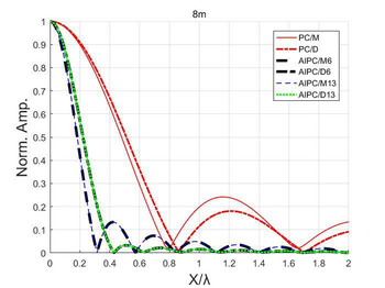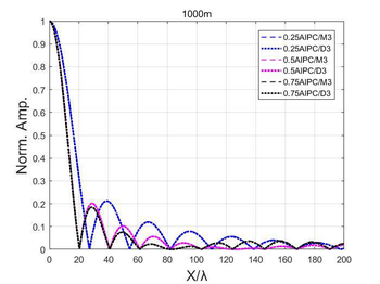 A A A Volume : 44 Part : 2 Focal spot enhanced by artificial iterative phase conjugated twin-line planar arrayTing Li 1 Department of underwater weaponry and chemical defense, Dalian Naval AcademyDalian China Zhu kou Department of underwater weaponry and chemical defense, Dalian Naval AcademyDalian China JiajingWang Department of underwater weaponry and chemical defense, Dalian Naval AcademyDalian ChinaABSTRACT It has been proven that the artificial iterative phase conjugated linear array can enhance the focus. In this paper, twin-line planar array based on artificial iterative phase conjugated processing focuses a point-like source in a homogenous medium. Theory analysis and numeri- cal simulations give conclusions. Contrasting with phase conjugation, artificial iterative phase conjugated twin-line planar array focuses a small focal spot and low sidelobes. Meanwhile, focal size and sidelobe amplitude decrease as iterate number increases. Furthermore, the focal spot size becomes sharp if the distance between the two linear array is larger than half a wavelength.1. INTRODUCTIONGetting an exact location of the source is always a popular topic for noise imaging and location domain [1-9], especially for low-frequency case[10].Phase conjugation is also referred to as time reversal in time domain. It can refocus the incident wave back and further achieving self-adaptive focusing. It is a popular method in acoustic focusing and imaging. However, because of the diffrac- tion limitation, focal spot size focused by phase conjugation is larger than half a wavelength. Artifi- cial iterative phase conjugated processing has been proven to enhance the focus and the diffraction limitation is overcome using uniform linear array[11]. Since the twin-line arrays can distinguishing the port/starboard problem, it is widely used in source location. Using a twin-line arrays to focus a point-like source by phase conjugation and artificial iterative phase conjugated processing may be an interesting research. He has treated the twin-line array as the planar array to focus a source and points out that the optimum space between two single lines is the one fourth of the wavelength[12]. In this paper, we employ the twin-line planar array to focus a point-like source in the free space us- ing phase conjugation and artificial iterative phase conjugated processing. Conclusions come out that focal spot calculated by artificial iterative phase conjugated processing is smaller than that cal- culated by phase conjugation. Increasing the iteration number, focal spot becomes sharp when the iteration number is a digit. If the space of the twin-line is larger than half a wavelength, the focus calculated by artificial iterative phase conjugated processing performs better.1 litingyouxiang@sina.comworm 2022 2. ARTICIAL ITERATIVE PHASE CONJUGATED PROCESSING USING TWIN-LINE PLANAR ARRAYs r In an infinite, homogeneous and isotropic medium, the point-like source is located at in Car- tesian coordinates in figure 1. The received sound is calculated by artificial iterative phase conju- gated processing (AIPCP) by computer[11].worm 2022Figure 1: Sketch map of the linear array, source, and field points In the Cartesian coordinates as shown in figure 1, source and field points are in the same planes r s R (XOZ plane). The distance between the point-like source and the origin point is . The angles R s s between and Z axis is denoted as in the YOZ plane and the azimuth angle is . The dis- r R tance between field point and transducer located at the origin of the coordinate is and the azi- y d 0 N muth angle is . The space of two linear array is . Each linear array has elements spaced inx d . The received sound are then phase conjugated and send back to the field. There two receiving and sending forms: the monopole one and the dipole one described as follows. If it is sent by monopole transducers, then this array form of PCM is called PC/M. For transducer j , , , , , , * / r r r r r r j j s j G G I M jPC (1)The normal derivate of pressure is conjugated and emitted by dipole sources. This array form of PCM is called PC/D. For transducer j r r r r r r*, ,, , , ,G G I jPC (2)j j s jD / nn , , j s r r G s r j r where denotes the angular frequency, is the Green function from to ,s P and denotes the sound pressure radiated by the source. There are two forms of AIPCP, the monopole one and the dipole one described as follows after N iteration loops: r r r r r r j j s j G G I PC (3)1 N * M / j N , , , , , , 1 *N G G I r r r r r r, ,, , , ,j j s j (4)N jPC/D nn where denotes the normal derivative operator of the array.n Taking the two element array located at Y axis for example, the sound pressure received by the mth element is described as follows.In the far field, according to Fraunhofer far-field approximation d m R jk P r r scos sin 1 exp ,1 1 π 4s s y s m R1s(5) r r (6)cos sin 1 exp , Rd m R jk G1 1 π 4y m1Taking the linear array located on the X-axis for example, the sound pressure received by the nth element is described as follows: d n R jk P r r ssin sin 1 exp ,1 2 π 4s s x s n R1s(7) r rsin sin 1 R exp , Rd n jk G x n1 2 π 41The normalized beam function of the twin-line planar array using AIPCP in the far-field : , , ,D D D1 2 N 1 π sin cos sin cos sin 2dy s s N 1 π sin cos sin cos 2sindy s s N 1 π sin sin sin sin sind Nx s s0 N 1 π sin sin sin sin sind Nx s s0(8) The focal spot size is described by the full width at half maximum (FWHM) when it falls to half of the peak height, that is, the half maximum width or half peak width.worm 2022 R r R R N d (9)3 sin sin 2π 11 1 s1s h s yAccording to the equation 9, increasing the number of iterations N can reduce the focal spot as other facts remain unchanged. When the iteration number N remain the same, increasing the space of the twin line or element number can also reduce the focal spot size.3. FOCUSING ANALYSIS BY NUMERICAL SIMULATIONIn this section, a point-like source locates at the orig