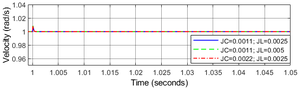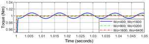 A A A Volume : 44 Part : 2 Active Vibration Control of a Rotating Mechanical System with a RigidCoupling using Active Disturbance Rejection ControlTingyu Lin 1 , Dunant Halim* 2 , Liaoyuan Ran 3 Department of Mechanical, Materials and Manufacturing Engineering The University of Nottingham Ningbo China Ningbo, Zhejiang, China 315100 Zhuang Xu 4 Department of Electrical and Electronic Engineering The University of Nottingham Ningbo China Ningbo, Zhejiang, China 315100 Chung Ket Thein 5 School of Aerospace The University of Nottingham Ningbo China Ningbo, Zhejiang, China 315100ABSTRACT The work aims to develop an active control method for mitigating torsional vibration of a rotating mechanical system with a rigid coupling, driven by an electric motor, in order to achieve good tracking and disturbance rejection performances. It is commonly known that torsional oscillations in a rotating system, which is normally used for various power transmission systems, can generate a significant level of vibration. In this work, therefore, an active control system that was based on the Active Disturbance Rejection Control (ADRC) approach was utilized to develop the control system that was robust against uncertainties associated with the internal dynamics and external disturbances affecting the system. The Extended State Observer (ESO) was used to estimate the generalized disturbance consisting of not only the external disturbances but also the disturbances associated with internal dynamics of the rotating system. The effectiveness of the developed control system was demonstrated, which showed that in the case of the varying coupling and load inertias, the control system could still perform well.1 tingyu.lin@nottingham.edu.cn* 2 dunant.halim@nottingham.edu.cn (Corresponding author)3 liaoyuan.ran@nottingham.edu4 zhuang.xu@nottingham.edu.cn5 chungket.thein@nottingham.edu.cn21-24 auGUST Scortsi event Cas La inter.noise | ee 2022 1. INTRODUCTIONWith the rapid development of automation industry over the past few decades, the demand for high-performance rotating machineries has grown significantly. Most rotating machines rely on the use of coupling to connect an electric motor with a mechanical power transmission system. For such machines, excessive torsional vibration can cause failures to different components in a machine so it needs to be suppressed accordingly, such as by using motor torque through an active control implementation. In [1], Qian proposed a motor torque control method based on the backstepping algorithm to control torsional vibration by selecting a suitable asymmetric tangent barrier Lyapunov function. An adaptive notch filter with an FFT analyzer and sorting algorithm was proposed in [2], and the low-order torsional vibration associated with varying natural frequencies can be suppressed. Abouzeid developed a torsional vibration suppression method using a Proportional-Resonant (PR) controller, which was found to be insensitive to mechanical parameter differences [3].However, uncertainties affecting the internal dynamics of a rotating system and the external disturbance can create difficulties for a model-based control system in achieving satisfactory vibration suppression. Active Disturbance Rejection Control (ADRC) was first proposed by Han in 1998 [4], which was found to be less dependent to an accurate dynamic model of the plan to be controlled. ADRC utilizes the Extended State Observer (ESO) to allow the real-time estimation of an extended state, that is the sum of internal and external disturbances. The estimated extended state is then utilized to decouple the system from the actual disturbances affecting the plant [5]. Non-linear ADRC was linearized to Linear Active Disturbance Rejection Control (LADRC) in [6], which also allowed ADRC parameters to be determined based on the consideration of the bandwidths of the observer and the controller. An artificial intelligence-based method [7] has also been used to automatically tune ADRC parameters, while another parameter tuning method for ESO has been proposed in [8]. ADRC has shown its potential in a wide range of industrial applications [9], including for vibration suppression of torsional systems [10, 11]. In the present work, therefore, an active vibration control system of a rotating mechanical system with a rigid coupling using ADRC is developed in this work. The performance of the developed motor control system will be investigated, including considering its robustness against uncertainties associated with the internal dynamics and external disturbances affecting the rotor system. 2. TORSIONAL VIBRATION OF A ROTATING SYSTEM WITH A RIGID COUPLINGA rotating mechanical system with a rigid coupling driven by an electric motor can be represented by a simplified three-inertia rotor system, as shown in Figure 1.Figure 1: A three-inertia rotor system.«tt AUT Tuan il om a re EZ . J ll 3 | Motor inertia ( 𝐽 𝑀 ) is connected to coupling inertia ( 𝐽 𝐶 ) by a torsional spring ( 𝐾 1 ) and a viscous damper ( 𝐶 1 ). In addition, another side of coupling inertia ( 𝐽 𝐶 ) is connected to the load inertia ( 𝐽 𝐿 ) by another torsional spring ( 𝐾 2 ) and a viscous damper ( 𝐶 2 ). A torque ( 𝜏 ) is acted on the motor part to drive the system. The angular positions, angular velocities, and angular accelerations of the motor, the coupling, and the load, are denoted as 𝜃 𝑀 , 𝜔 𝑀 , 𝛼 𝑀 , 𝜃 𝐶 , 𝜔 𝐶 , 𝛼 𝐶 and 𝜃 𝐿 , 𝜔 𝐿 , 𝛼 𝐿 , respectively. The equations of motion that govern the torsional vibration of the system can be obtained as:𝐽 𝑀 𝜃 ̈ 𝑀 + 𝐶 1 𝜃 ̇ 𝑀 −𝐶 1 𝜃 ̇ 𝐶 + 𝐾 1 𝜃 𝑀 −𝐾 1 𝜃 𝐶 = 𝜏 𝐽 𝐶 𝜃 ̈ 𝐶 −𝐶 1 𝜃 ̇ 𝑀 + (𝐶 1 + 𝐶 2 )𝜃 ̇ 𝐶 −𝐶 2 𝜃 ̇ 𝐿 −𝐾 1 𝜃 𝑀 + (𝐾 1 + 𝐾 2 )𝜃 𝐶 −𝐾 2 𝜃 𝐿 = 0(1){𝐽 𝐿 𝜃 ̈ 𝐿 −𝐶 2 𝜃 ̇ 𝐶 + 𝐶 
