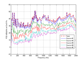 A A A Volume : 44 Part : 2 Diesel Engine Noise Source Visualization by Using Compressive Sens- ing Algorithms Tongyang Shi 1 Key Laboratory of Noise and Vibration Research, Institute of Acoustics, Chinese Academy of Sci- ence Beijing 100190, China J. Stuart Bolton Ray W. Herrick Laboratories, School of Mechanical Engineering, Purdue University West Lafayette, IN 47906, USA Frank Eberhardt Cummins Inc. Columbus, IN 47201, USAABSTRACT To identify sound source locations by using Near-field Acoustical Holography (NAH), a large number of microphone measurements is generally required in order to cover the source region and ensure a sufficiently high spatial sampling rate: it may require hundreds of microphones. As a result, such measurements are costly, a fact which has limited the industrial application of NAH to identify sound source locations. However, recently, it has been shown possible to identify concentrated sound sources with a limited number of microphone measurements based on Compressive Sensing theory. In the present work, sound radiation from the front face of a diesel engine was measured by using one set of measurements from a thirty-five-channel combo-array placed in front of the engine. The locations of significant noise sources were then identified by using two algorithms: i.e., l 1 -norm min- imization and a hybrid approach which combined Wideband Acoustical Holography (WBH) and l 1 - norm minimization. It was found that both algorithms could successfully localize and visualize the major noise sources over a broad range of frequencies, even when using a relatively small number of microphones. Finally, comments are made on sound field reconstruction differences between the two algorithms. 1. INTRODUCTIONDiesel engine noise is a concern in both municipal environments and in an occupational health and safety context due to the use of diesel engines in heavy industry and transportation. In order to reduce engine noise levels, an accurate knowledge of the major noise source locations is required to guide the efficient application of noise control resources. Near-field Acoustical Holography (NAH) is a useful method for reconstructing sound fields based on microphone array measurements close to a sound source, which can be used to visualize and identify sound source locations 1,2 . However, when1 charlesshi720@gmail.come L. e inter.noise scorsn ti ED DP applying conventional holography approaches, e.g., the Fourier transform method, or Statistically Optimized Near-field Acoustical Holography (SONAH) 3 , etc., a large number of measurements is usually required in order to avoid spatial aliasing and ensure good spatial resolution. Thus, visualizing diesel engine noise sources with conventional NAH methods can be time consuming, economically expensive and hard to perform in industrial environments.Previously, Wideband Acoustical Holography (WBH) 4 with the monopole based Equivalent Source Method (ESM) was applied to visualize diesel engine noise based on a limited number of measurements 5 . In order to further increase sound field reconstruction accuracy, the compressive sensing concept was then combined with monopole based ESM 6 . Previous studies showed that with the compressive sensing concept, sound sources can be identified when the number of measurements is significantly smaller than the number of parameters that need to be determined 7,8 . In the present work, one set of thirty-five channel array measurements was taken in front of a diesel engine, and then the noise sources on the engine front face were identified by using two compressive sensing algorithms: l 1 -norm minimization and a hybrid approach 9 which combined Wideband Acoustical Ho- lography (WBH) and l 1 -norm minimization. Finally, the noise source reconstruction results of two algorithms were compared and commented upon. 2. THEORY2.1. Introduction to Compressive Sensing Compressive sensing 10 , also known as compressive sampling, is a signal processing technique based on the principle that through optimization, a sparse signal can be recovered by finding solutions from an underdetermined linear system. With compressive sensing, the sparsity of a signal can be exploited to recover it from far fewer samples than would seem to be required by the Nyquist-Shan- non sampling theorem. However, two conditions are required under which the recovery is possible: sparsity and incoherence. Sparsity requires the signal to be sparse in the search domain, and incoher- ence is applied through the isometric property.2.2. The l 1 -Norm Minimization To find the sparse solution from an underdetermined linear system, the first recovery proce- dure that comes to mind is to search for the sparsest vector which satisfies the measurement. This leads to solving the l 0 -norm minimization problem.𝑚𝑖𝑛‖𝐳‖ ! 𝑠𝑢𝑏𝑗𝑒𝑐𝑡 𝑡𝑜 𝐀𝐳= 𝐲 , (1)where the signal that needs to be recovered is the vector 𝐳∈ℂ " , the m linear measurement vector resulting from signal 𝐳 is 𝐲∈ℂ # , and finally 𝐀∈ℂ #×" is the transfer matrix. Unfortunately, an al- gorithm that solves Eq. (1) for any matrix A and any right-hand side 𝐲 is generally computationally intractable. Therefore, l 1 -norm minimization was proposed in the literature as a tractable alternative, which approximates l 0 -norm minimization by minimizing the sum of the vector z . The l 1 -norm minimization approach considers the solution of𝑚𝑖𝑛‖𝐳‖ % 𝑠𝑢𝑏𝑗𝑒𝑐𝑡 𝑡𝑜 𝐀𝐳= 𝐲 , (2)which is a convex optimization problem 11,12 and can be seen as a convex approximation of Eq. (1). If the problem is real-valued, Eq. (2) is equivalent to a linear program and in the complex-valued case it is equivalent to second order cone programming. In the present work, the l 1 -norm minimization is applied to an equivalent source model with a mesh of monopole point sources fixed at certain loca- tions in a plane. The e