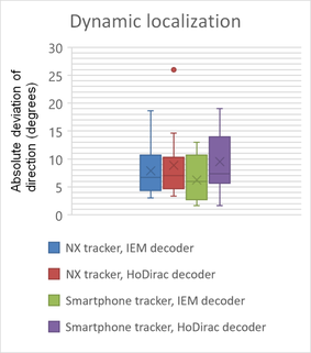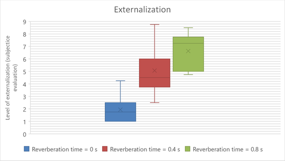 A A A Volume : 44 Part : 2 Virtual sound source perception challenges of binaural audio systems with head-tracking Vedran Planinec 1 Kristian Jambrošić 2 Petar Franček 3 Marko Horvat 4 Faculty of Electrical Engineering and Computing, University of Zagreb Unska 3, 10000 Zagreb, CroatiaABSTRACTWith the recent leaps in spatial audio technology, the use of binaural head-tracking for spatial audio can revolutionize the way how music and audio are experienced. Moreover, to research noise- related perception in laboratories, binaural head-tracking is frequently used as an audio reproduction system. Although this technology is getting significantly better in recent years, signal processing of binaural audio is often experiencing problems such as non-adequate sound source externalization and unacceptably high values of system response time since it influences the usability of the technology at fast head rotation. In this paper, the results of an experiment are presented, in which test subjects are determining the direction of a virtual sound source in the horizontal plane with multiple parameter changes. The experiment is done in a controlled environment in a listening room with known acoustical properties. Parameter variation includes: hardware head-tracker variation (commercial one and head-tracker based on simple embedded system), various software solutions for real-time binaural synthesis, and variation in the used Head-Related Transfer Functions. The problem of externalization of a virtual sound source via headphones is discussed, and possible solutions to the problem are given. Results of the experiment and recorded data are presented.1 vedran.planinec@fer.hr2 kristian.jambrosic@fer.hr3 petar.francek@fer.hr4 marko.horvat@fer.hr 1. INTRODUCTIONSpatial audio is a term that is increasingly being mentioned in the professional audio industry as “the future of listening audio” [1]. The stereo audio format has been a leading method of listening to a wide array of audio content for a long time, and spatial audio might just be the solution for the listening experience people are looking for. One of the biggest industries that could potentially benefit from spatial audio is the gaming industry, especially the part of the industry that develops virtual/augmented reality hardware and content. To experience the spatial audio properly, binaural head-tracking is used as a part of an audio reproduction system. Although this technology has evolved rapidly in recent years, signal processing of binaural audio is often experiencing problems such as non-adequate sound source externalization and unacceptably high values of system response time [2] (which influences the usability of the technology at fast head rotation). To better understand what makes the perception of virtual sound sources realistic and precise, an experiment was designed in which different hardware and software parameters were changed to determine if there were statistically significant improvements for any of the combinations. The externalization of a virtual sound source is potentially one of the bigger problems to solve [3], particularly how different reverberation times affect the feeling of externalization. Although it would be logical to set the reverberation time to match the room in which the person is, the assumption is made that greater reverberation time added onto a virtual sound source could be experienced as more externalized. This assumption only applies to augmented reality, because for virtual reality, room properties are negligible.In this paper, the results of the mentioned experiment are presented, in which test subjects are determining the direction of a virtual sound source in the horizontal plane with multiple parameter changes, as well as the level of externalization of a speech sound source. The experiment is done in a controlled environment in a room with known acoustical properties. 2. LISTENING EXPERIMENT2.1. Experimental setupFor setting up the audio reproduction system with head-tracking, the following equipment and software were required to conduct the experiment: DAW (Digital Audio Workstation), scene rotator, stereo encoder, binaural decoder, Ambisonics reverb, headphones, and head-tracker (see Figure 1).Figure 1: Head-tracker mounted on Sennheiser HD650 headphones The experiment was implemented using the IEM plug-in Suite [4] in Reaper DAW. The IEM Suite template for 5 th Order Ambisonics production was used for the required binaural rendering. (see Figure 2).Figure 2: Listening experiment in Reaper DAW with IEM template for 5 th Order AmbisonicTwo different head-trackers were used: a commercial Waves NX head-tracker and a smartphone iPhone 12. The variation in binaural decoding and Head-Related Transfer Functions (HRTFs) was achieved by using two different binaural decoders, each with a different set of HRTFs. The first one is the IEM Binaural Decoder plug-in which uses a Magnitude Least Squares binaural rendering method [5], and uses a set of HRTFs recorded with the Neumann KU 100 dummy head. The second one is the Ho-DirAC Binaural plug-in [6], which is based on Higher-Order Directional Audio Coding method [7], and uses a set of HRTFs measured on a Gras 45BB KEMAR head & torso with normal pinna. These two setups were chosen because they were widely used in previous research on binaural head-tracking synthesis. In order to check the influence of binaural rendering and HRTF database on the precision of sound source localization and externalization, these parameters should have been varied independently, which is planned for future research. The azimuthal direction of the virtual sound source was encoded using the IEM Stereo Encoder plug-in. The IEM Scene Rotator plug-in (see Figure 3) received head-rotation data via OSC protocol and controlled the rotation of the DAW project. Additional software was required for transferring the positional data (Nxosc software for Waves NX tracker, and iOS application G