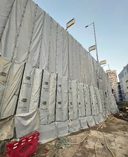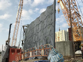 A A A Volume : 44 Part : 2 Lightweight Retractable Noise Barrier in Hong Kong Wilson HO 1 , Wylog WONG 2 , Eric CHU 3 Acoustics Innovation Limited Unit 106, Block A, Shatin Industrial Centre, Sha Tin, N.T., Hong KongABSTRACT Construction noise is one of the major noise pollution sources in urban area. In Hong Kong, the Noise Control Ordinance (NCO) states that construction works at night time and holiday with Pow- ered Mechanical Equipment (PME) are only allowed if the PME noise levels are controlled within the Acceptable Noise Level (ANL) calculated at nearby Noise Sensitive Receivers (NSRs). In many cases, night work required noise barrier to minimize the PME noise levels. However, conventional noise barriers of 3m to 6m height required a heavy base in order to sustain occasional heavy gust wind loading. Those heavy base required cranes to install and relocate which may not feasible under some site constraints. SilentUP ® Retractable Noise Barrier has been invented in Hong Kong to meet this demand. It is a 7m high noise barrier without concrete foundation. The modular design and magnet connecting mechanism allows SilentUP ® to form a continuous wall. It can be installed, unin- stalled and relocated by people without using any machines. The entire process is quiet enough to be completed at night. To enhance the stability and safety features, a patented automatic wind load relieving mechanism is incorporated so that the lightweight structure remains safe during occasional gusts. It reduces up to 95% structural loading requirement and hence a lightweight design can be adopted. The on-site insertion loss performance of SilentUP ® Retractable Noise Barrier is varied from 11-21 dB(A) depending on the noise source and size of barrier / enclosure. 1. INTRODUCTIONModern construction activities are governed by the legislation that regulate the time and type of work conducted in construction sites. The Noise Control Ordinance (NCO) of Hong Kong stipulates that the restricted hours for construction work are from 7 pm to 7 am on weekdays and full day on Sundays. Any work involving the use of Powered Mechanical Equipment (PME) during restricted hours must obtain a valid Construction Noise Permit (CNP) from the Environmental Protection De- partment (EPD) of Hong Kong. Construction companies need a noise mitigation measure to control the PMEs noise level within the Acceptable Noise Level (ANL) at Noise Sensitive Receivers (NSRs) so they can continue working during restricted hours. The erection process of conventional noise barrier with heavy foundation design is very slow and expensive which is not feasible to implement during restricted hours. In recent years, SilentUP ® retractable noise barrier that can be erected without machines is widely implemented in construction site for CNP purpose.1 who@aihk.hk 2 wylog.wong@aihk.hk 3 eric.chu@aihk.hkworm 2022 2. SilentUP ® Retractable Noise BarrierSilentUP ® is a lightweight, modular and relocatable structure which can be installed and unin- stalled by people without any machines even during restricted hours. SilentUP ® incorporated 3 major design features for use in restricted hours and space congested construction sites in urban areas, in- cluding 1) Patented wind load relieving mechanism, 2) Installation without machine and concrete foundation, 3) Magnetic automatic gap sealing to prevent noise leakage.Figure 1 : SilentUP ® Retractable Noise Barrier2.1. Patented wind load relieving mechanismIn order to avoid toppling during strong wind, SilentUP ® incorporated a patented wind load re- lieving mechanism. This advanced technology is invented to restrict the wind load induced on struc- ture by the use of magnets between the SilentUP ® panels. When the wind load increases past the magnetic attraction force between panels, the barrier able to react and prevent the barrier from top- pling. Under normal wind conditions, the barrier behaves as a continuous noise barrier wall and pro- vides noise insulation.As wind speed increases above 25kph, the panels can automatically open and allow passage of wind. This reduces the surface area of barrier and reduces wind load on structure.Figure 2 : SilentUP ® at wind speed <25kph Figure 3 : SilentUP ® opens when wind speed >25kphworm 2022 2.2. Installation without machine and concrete foundationSilentUP ® comprises lightweight noise insulation panels that can be easily mounted on a modular structure by people without using any machines. The panels are mounted from ground level and push up layers by layers until the panels have reached the desired height. Moreover, the wind load relieving mechanism allows SilentUP ® to be erected without concrete foundation.The lightweight components and easy to relocate features allows a manual installation and unin- stallation without machine, therefore the construction planning can be more flexible. The operating companies do not need to apply for a CNP for this barrier’s erection and relocation during restricted hours. The whole process is quiet enough to be conducted during nighttime.Figure 4 : SilentUP® lightweight components (less than 10kgs each) allows manual installation2.3. Magnetic automatic gap sealingSilentUP ® incorporated magnetic automatic gap sealing mechanism in the panels. When neigh- boring columns are held from ground level and brought closer, the magnets in panels are attracted to each other and locked. This effectively seals the gap between two columns and a continuous barrier wall can be formed.3. Application in Hong KongSilentUP ® has been used at various sites of Hong Kong. Major contractors have utilized SilentUP ® in different area in order to get CNP from the authority.worm 2022 3.1. Concreting worksConcreting works normally happens less than 3 times a week. Therefore, the quick installation feature of SilentUP ® helps the contractors install and dismount noise barrier in a short period.Figure 6 : 7m (H) x 43m(L) SilentUP ® atFigure 7 : 5