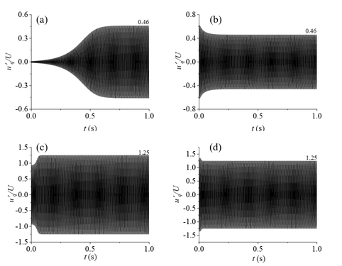 A A A Volume : 44 Part : 2 Three-dimensional nonlinear thermoacoustic instability analysis basedon Green’s function approach Weipeng Zhou 1 Research Institute of Aero-Engine, Beihang University 100191, Beijing, China Shuo Tian School of Energy and Power Engineering, Beihang University 100191, Beijing, China Guangyu Zhang Research Institute of Aero-Engine, Beihang University 100191, Beijing, China Xiaoyu Wang Research Institute of Aero-Engine, Beihang University 100191, Beijing, China Xiaofeng Sun School of Energy and Power Engineering, Beihang University 100191, Beijing, ChinaABSTRACT In this work, nonlinear thermoacoustic instability analysis is made in a hard-wall box to investigate the limit cycle of thermoacoustic oscillation and the interplay of two modes. The flame is assumed to be compact, and described by a generic flame describing function, i.e. an amplitude-dependent flame transfer function. The acoustic field in the hard-wall box could be described by an integral equation using a Green’s function tailored to a three-dimensional (3- D) rectangular box with hard-wall boundary conditions. Two different methods are used to solve this equation. The first is an iteration method to obtain the time history of the acoustic velocity at the flame. The other method is done in the frequency domain to determine the thermoacoustic eigenfrequency and growth rate of thermoacoustic modes. We observed the phenomenon of modes “jump” after two different time windows of the time history operated with the Fourier transformation. This result reveals that when there are two modes in the system, the interference between modes will occur. In the early stage, the two modes work together. After reaching the limit cycle oscillation, the role of one mode is dominant and the other mode basically disappears. 1. INTRODUCTION :Thermoacoustic instability, driven by constructive coupling between unsteady heat release and acoustic waves at one or multiple frequencies [1], has long been an urgent problem in the field of combustion. It is widely observed in boilers, furnaces, ground gas turbines, aero-engines, rocket engines and other devices with flame burning continuously in the cavity [2, 3]. Thermoacoustic instabilities will trigger the combustion device even the whole system to vibrate strongly, resulting in larger noise and heat load, higher pollutant emission ratio, affecting the normal operation of the system and even causing the failure of the whole combustion system in serious cases. In order to understand the mechanism of thermoacoustic instabilities and develop suitable control method with affordable time and computation cost, analytical tools that are able to predict the thermoacoustic instabilities including the stability and limit cycle are needful. 1 weipengz@buaa.edu.cn The present method is based on the tailored Green’s function (the acoustic field that is generated by an impulsive point source in a cavity). It’s firstly used by Heckl and Howe [4, 5] to model 1-D thermoacoustic systems. Wang and Heckl [6] then developed this method to 3-D thermoacoustic systems in order to study the 3-D effects, as is shown in figure 1. But the linear heat release model used in her model fails to capture the important thermoacoustic oscillation feature--limit cycle, which is important in studying thermoacoustic instabilities. Because we need only control the limit cycle amplitude in acceptable range rather than eliminate thermoacoustic instabilities completely when controlling thermoacoustic instabilities. Therefore, we use the nonlinear heat release model in order to capture the limit cycle in this paper as an extension of Wang and Heckl [6].(a) «, VA t peat a — 4,—Figure 1: Schematic of the rectangular combustion chamber; (a) 3-D geometry, (b) geometry forcase of no z-dependence [6].2. THE INTEGRAL GOVERNING EQUATION AND SOLUTION2.1 The integral governing equationAn integral governing equation giving the velocity at the flame in terms of the heat release is given − − = − − tG r r t t G u t q t dt c r c r t 2 0 2 2 0 01 ( , , ) ( ) ( )(1)q r r t r r r r= =q = =q q=r rqwith the two initial conditionr r t = = = = (2)0 , 0 at t q t0 0=where c is speed of sound and is specific heat ratio. 0 is the initial value of the velocitypotential at the flame. ( , , ) G r r t t −is the 3-D tailored Green function of a rectangular hard-wall cavity with side length x H , y H , z H . Its meaning is the response of an observer point ( , , ) r x y z =in the cavity to an impulsive point source at ( , , ) r x y z =. t t − is the time it takes the signal to travel from r to r.mnk mnk j t t j t t mnk m n k G r r t t g r r e e 1 ( , , ) ( , ) [ ] 2= − = − − − −( ) ( )(3), , 0 = 2 ( , ) ( ) ( ) m n k mnk mnk mnk mnk mnk g r r c r r j(4)w here m n k r k x k y k z k k k H H H = = = =( ) cos( )cos( )cos( ); , , ;mnk x y z x y z x y z(5)= = + + = = = 1 if 0 ; ; ; . 2 if m >0m k k k k k H H H c2 2 20mnk x y z m mnk x y z , , x y z k k k are the allowed wave numbers of the cavity in the , , x y z direction respectively, and, , m n k are the corresponding mode numbers. The detailed deviation about the integral equation and the Green function of a rectangular hard-wall cavity can be found in Wang and Heckl [6].The flame is assumed to be compact and locates at q r r =and the flame is flat and its surfacenormal is described by the angle and , as is shown in figure 1. We adopt the heat release model fitted by Heckl [7] according to experimental data.1 0 ( ) [ ( ) ( )] ( ) q r r q t K n u t n u t r r = − − −(6)where Q K US = is the heater power per mass flow, Q is the mean value of global heat releaserate, U is the mean flow velocity, is the mean density. The coupling coefficients and delay time is described as follows.20 1 0 1 0 1 1 1 ; ; ; 2 2 A A g g g g g n n U U − + = + = − = = (7)where 3 3 0 1 0 1 5 10 , 4.4 10 , 1.4, 0.3 g g − − = = = = that are measured experimentally. A isacoustic velocity 