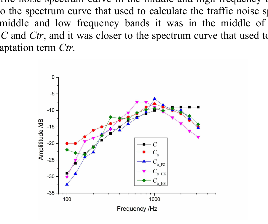 A A A Volume : 44 Part : 2 The Impact of China's Traffic Noise Spectrum on the Single-Number-Quantities (SNQs) Evaluation of Airborne Sound Insulation in theNew EraYangsheng Cai 1 ; 1. School of Architecture and Urban Planning, Fujian University of Technology, Fuzhou 350118, P,R China; 2. State Key Laboratory of Subtropical Building Science, School of Architecture, South China University of Technology, Guangzhou 510640, P,R China; Zhihui Chen 2 ; 3. School of civil engineering, Fujian University of Technology, Fuzhou 350118, P,R China; Yao Wang 3 ; Xufeng FU 4 ; Zhihong Wu 5 ; Ming Wang 6 ; 4. Cscec Strait Construction and Development Co., Ltd., Fuzhou 350015, P,R China;ABSTRACT The ISO 717-1 specified the spectrum adaptation terms Ctr, to take into account the spectra of is A- weighted urban traffic noise. It should be noted that the spectra Ctr was adopted from the Nordtest Method NT ACOU 061 (Nordtest, 1987). However, the means of transportation are undergoing great changes, so the characteristics of traffic noises are also changing significantly. Therefore, in order to better resolve the disputes caused by sound insulation and traffic noise in China, it is necessary to explore whether the existing evaluation standards are still applicable to various types of traffic noise. In this paper, the urban traffic noises in China have been measured and analyzed, a new spectrum adaptation terms for airborne sound insulation evaluation is established, and applied to the calculation of sound insulation of several common building components, and its applicability is discussed.1. INTRODUCTIONIn recent years, China's comprehensive transportation system has developed rapidly, which has 1 promoted the growth of the national economy effectively. At the same time, such development also brought many problems to the ecological environment. Traffic noise from main roads, urban elevated roads and high-speed railways will inevitably bring the negative effect to the normal life and personal health of residents along the line. These problems have gradually attracted attentions of scholars [1][2] .1 cys125@fjut.edu.cn 4 398540811@qq.com2 Milkyway0120@126.com 5 464192091@qq.com3 wangyao1@cscec.com 6 415597470@qq.comiti aac ta. Atal oohesiel 21-24 AUGUST SCOTTISH BENT asoow The "Annu a l Report on China Environmental Noise Prevention and Control" in recent years showed that the noise complaint rate was high in Chinese urban acoustic environment. The compliance rate was high during the day, but it was low at night, especially in municipalities and capital cities, it was much lower on both sides of the main road, cultural and educational districts and residential area [1] . Such high noise complaint rate may be related to the following three factors: 1) the increasing number of external environmental noise sources, especially low- frequency noise sources; 2) the insufficient sound insulation performance of buildings; 3) SNQs evaluation method of sound insulation performance of building fails to fully reflect the subjective perception.In order to facilitate the design and evaluation of building sound insulation performance, the weighted sound reduction index can be obtained according to the ISO 717-1:2020, which describes the sound insulation performance of the building in all aspects. In the calculation process, different spectrum adaptations can be made based on the spectrum types and frequency range of the noise source. It should be noted that the traffic noise spectrum adaptation term is the adaptation for the low-frequency noise, the value was adopted from the results of a Nordic test on measuring traffic noise in the 1980s. However, with the changes of the times, the characteristics of noise sources such as mechanical equipment and traffic equipment have undergone great changes, and people's requirements for building performance have also developed from "economical and practical" to "healthy and comfortable". To solve the complaints and disputes caused by these changes in China, simply copying the current international standards will not help at all. Therefore, this paper studied the characteristics of various types of traffic noise in the new era, and compared it with the current standard traffic noise spectrum adaptation curve ( C tr ), which will provide more sufficient basic data reference for the sound insulation design of the buildings along the road.2. SINGLE NUMBER QUANTITIESThe prediction and measurement results of buildings sound insulation performance were usually expressed as a function of frequencies, which reflects the insulation ability of buildings or building components to different frequencies of noise. Considering that the spectral characteristics of different noise sources have different effects on the actual sound insulation performance of building components, on the basis of using the weighted sound reduction index R w to evaluate the sound insulation performance of components, the pink noise spectrum adaptation term C and the traffic spectrum adaptation term C tr were introduced. The spectrum adaptation curve required to calculate the traffic noise spectrum adaptation term C tr was derived from the traffic noise data measured in Ref. [3]. C and C tr were the A-weighted sound pressure levels of pink noise and traffic noise that were normalized to 0dB, as shown in Figure 1. The application range of the spectrum adaptation terms with respect to these noise sources were shown in Table 1.Amplititude /dB 105 -10- -204 -30- 1000 Frequency /Hz Figure 1: Curve of Spectrum adaptation terms Table 1 Spectrum adaptation term for different types of noise sourceSpectrum adaptation term C C trLiving activities (talking, music,Disco music Urban road traffic Railway traffic at low speedsradio, TV) children playing Highway road traffic at >80 km/hTypes of noise sourceJet aircraft, large distanceJet aircraft short distance Factories emitting mainly mediumAircraft, propeller driven Factories emitting mainly