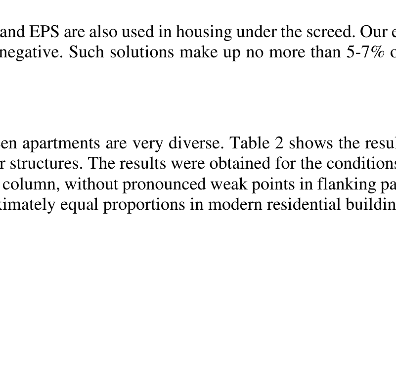 A A A Volume : 44 Part : 2 Overview of the acoustic quality of dwellings in Ukraine and CIScountries Yevhen Fridlib 1 Acoustic Consulting LLC Mayakovski 49a st, 98, Kyiv, UkraineABSTRACT At least 10 million square meters of dwellings have been built in Ukraine per year. Most of them are residential complexes in cities. What is the level of acoustic comfort in these buildings? What are the main complaints of residents? We will answer these questions in this report. The most popular partitions and floors types, their main problems and methods how to improve sound insulation will also be shown. We will analyze the requirements of national standards and assess how modern houses meet these requirements.This article shows the acoustics characteristics of many structures measured on site, taking into account various flanking transmission pathways. Particular attention is paid to additional insulation structures that are used in apartments, to the differences between laboratory meas- urements and field measurements. 1. INTRODUCTIONMore than 75% of the population of Ukraine lives in cities, at least that was the case as of 2021. The vast majority of residential assignments in cities are apartment buildings of different eras. In terms of structures, buildings can be divided into 3 groups.1.1 Built before 1955. About 15% of residential buildingsMostly low-rise buildings up to 5 floors. Thick brick walls in most cases. But sometimes there are thin partitions that appeared in the process of reconstruction and the division of large apartments into several separate ones. Ceiling and floor types can be varied - wooden, vaulted, made of concrete slabs and monolith concrete on a metal frame. For this type of building, the main problem is vertical sound insulation - airborne and impact sound.1.2 Built between 1955 and 2000 year. The vast majority of housing - about 65 %.In the early period, there was an active construction of "Khrushchevka" - prefabricated 5-storey buildings. Floor is a thin concrete slab 50-60 mm, the walls are plaster blocks or thin bricks. Sound- proofing in such houses is disgusting. Now, there are still many such houses, but they are gradually being demolished and reconstructed.Panel (prefab) houses of 9-16 stores are the solutions necessary for a quick recovery after the Second World War. Such buildings make up the majority of apartments in almost any city in the post- soviet area. Walls between apartments - concrete panel 140-180 mm thick. According to the results of field measurements, the sound insulation of such structures is 𝑅` 𝑤 = 47 … 52 dB. The value of sound insulation depends both on the thickness of the panel and on the quality of the work on sealing the seams and joints between the panels.The most common flooring is a multi-hollow slab with a thickness of 220 mm - Fig. 1. During construction, a leveling screed 40-50 was carried out over the slab, laid on a layer of sand or small1 eugen.acoustic@gmail.comworm 2022 construction debris. This design could achieve airborne noise isolation up to 𝑅` 𝑤 = 52 dB, but impact sound isolation has always been a problem. To reduce impact noise, it was proposed to use linoleum on an elastic substrate or wooden floors with substrates (in fact, substrates were almost never used). After the collapse of the USSR and the growth in the welfare of the people, during renovations in apartments, the screeds were dismantled in order to increase the height by 4-5 cm (before that, the average height in houses was 2.4-2.5 m) and as a result, the sound insulation of airborne and impact noise decreased. For such a floor slab with a thin screed 𝐿` 𝑛𝑤 = 72…76 dB.Figure 1. Hollow core slabIn addition to panel houses, houses up to 9 floors with load-bearing brick walls were also built, but the key difference from the first group is the predominant use of lightweight concrete floor slabs.Soundproofing requirements according to the standard that was valid from 1977 until the end of the 2000s: 𝑅 𝑤 > 52 𝑑𝐵 , 𝐿 𝑛𝑤 < 60 dB [1]. Both of these criteria were rarely met in reality.1.3 Modern construction after the 2000sThe predominant use of frame-monolithic technology. Apartment buildings with a height of 5-30 floors. The floor slab is monolith concrete with a thickness of 160-220 mm, which basically provides sufficient airborne sound insulation. Partitions between apartments - filling with various blocks. The use of heavy and lightweight bricks, hollow ceramic blocks and expanded clay concrete blocks, aer- ated concrete blocks and heavy concrete blocks is approximately equally popular. Less popular are three-layer partitions with a double contour and an air gap (sometimes filled with a sound absorber). Plasterboard frame partitions have begun to gain popularity only in recent years.Nowadays, frame-monolithic technology is predominantly on the market and it will be going on further. Panel houses and other buildings construction types are also being built, but in very small numbers.2. Sound insulation in modern construction in UkraineConsider the main solutions that are used in new construction and to solve soundproofing prob- lems in existing houses.2.1 Impact noise insulationA monolithic floor slab with a thickness of 200 mm usually provides airborne sound insulation within 𝑅` 𝑤 = 51. .54 dB . The differences are caused primarily by flanking noise transmission and re- radiation by partitions and facades. Impact sound insulation with bare slab 𝑳` 𝒏𝒘 = 𝟕𝟎… 𝟕𝟑 dB.According to the current standard in Ukraine, the required isolation between dwellings is 𝑹` 𝒘 > 𝟓𝟐 𝒅𝑩 , 𝑳` 𝒏𝒘 < 𝟓𝟓 [2] . For airborne sound insulation they are in most cases met by such slab, but additional solutions are needed to achieve impact sound insulation requirements. The most pop- ular is the implementation of a "floating floor"- screed on a thin elastic layer. Let's give an example for two co