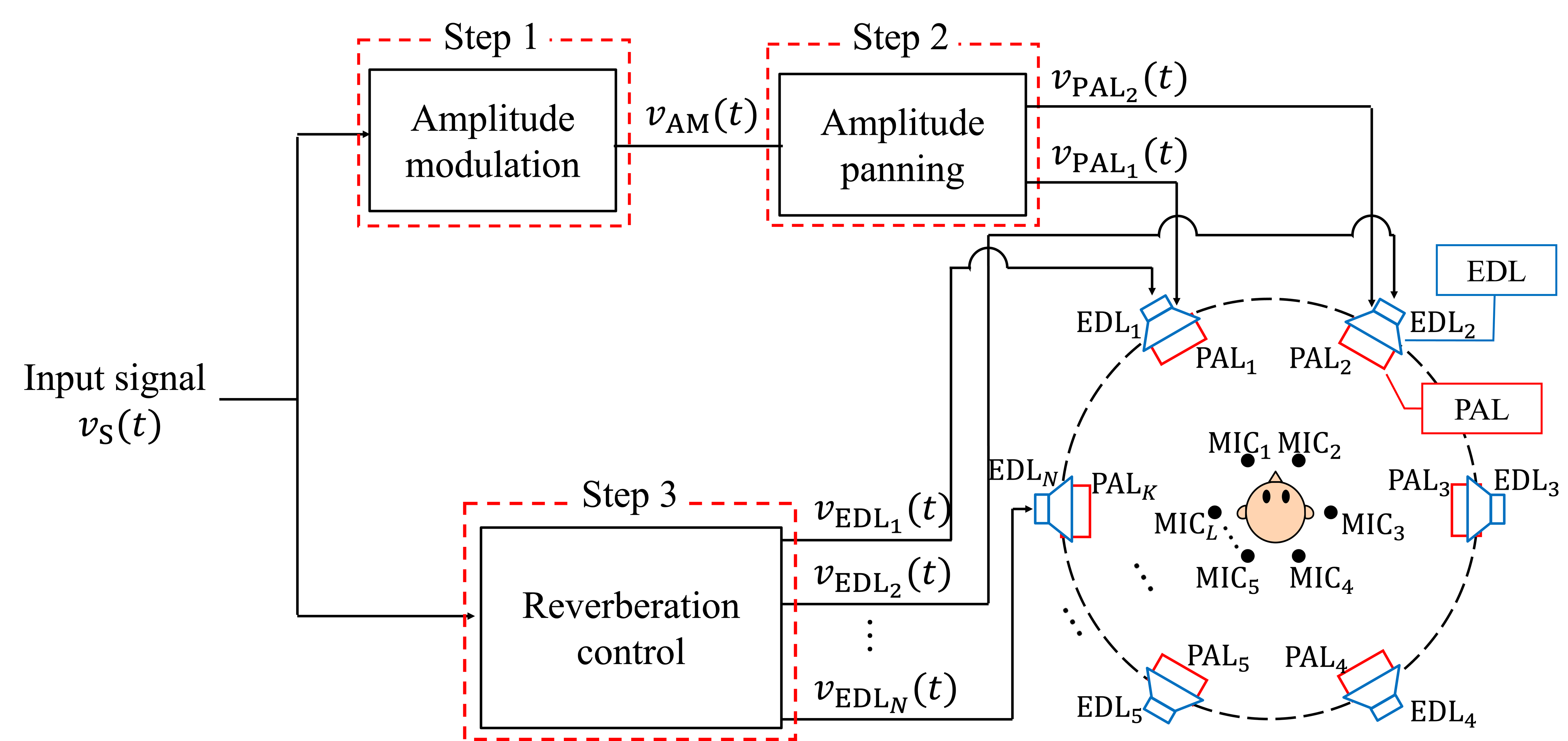 A A A Volume : 44 Part : 2 Subjective evaluation for sharp sound image construction based on reverberation control with surround sound system using parametric and electro-dynamic loudspeakersYuna Harada 1Graduate School of Information Science and Engineering, Ritsumeikan University 1-1-1 Nojihigashi, Kusatsu, Shiga 525-8577, JapanYuting Geng 2 , Kenta Iwai 3College of Information Science and Engineering, Ritsumeikan University 1-1-1 Nojihigashi, Kusatsu, Shiga 525-8577, JapanMasato Nakayama 4Faculty of Design Technology, Osaka Sangyo University 3-1-1 Nakagaito, Daito, Osaka 574-8530, JapanTakanobu Nishiura 5College of Information Science and Engineering, Ritsumeikan University 1-1-1 Nojihigashi, Kusatsu, Shiga 525-8577, JapanABSTRACT Three-dimensional sound-field reproduction systems can provide a high sense of presence. These systems commonly use electro-dynamic loudspeakers. Such loudspeakers tend to construct di ff use sound images due to their wide directivity and high reverberation. In contrast, parametric array loudspeakers can construct sharp sound images due to their sharp directivity and low reverberation. However, it is di ffi cult to provide reverberation presence when using parametric array loudspeakers because of this sharp directivity. We previously proposed a sharp sound image construction method that is based on reverberation control with a surround sound system using parametric and electro- dynamic loudspeakers. With this method, a sharp sound image is rendered using parametric array loudspeakers, and reverberation presence is provided by electro-dynamic loudspeakers, emitting reverberation signals synthesized with reverberation control filters. Through objective experiments, we confirmed that this method can construct a sharp sound image with reverberation presence. In this paper, we propose a sharp sound image construction method, which is based on our previous method, to construct a sharp sound image at any desired position. We conducted subjective evaluations to confirm if listeners can perceive the reverberation presence provided with the proposed method. From the subjective evaluation, we confirmed that the reverberation presence can be perceived.1 is0426sh@ed.ritsumei.ac.jp2 geng@fc.ritsumei.ac.jp3 iwai18sp@fc.ritsumei.ac.jp4 nakayama@ise.osaka-sandai.ac.jp5 nishiura@is.ritsumei.ac.jpMin aussi, inter.noise 21-24 AUGUST SCOTTISH EVENT CAMPUS GLASGOW 1. INTRODUCTION With the development of video technology, three-dimensional (3D) sound-field reproduction systems that can provide a high sense of presence have attracted attention. Conventional systems commonly use electro-dynamic loudspeakers (EDLs) [1], therefore, the sound image is di ff used when constructing a narrow sound image such as a point source [2]. Conventional systems with parametric array loudspeakers (PALs) [3] have been proposed, such as acoustic planetarium [4] and multichannel surround systems with PALs and EDLs [5]. PALs can produce sharper directivity than EDLs by using the straightness of ultrasound. PALs can construct a sharp sound image [5]; however, it is di ffi cult to present reverberation [2]. It is also di ffi cult to reproduce the low-frequency sounds with PALs [3]. In the acoustic planetarium [4], sound images can be rendered on walls and ceilings by the reflected sounds emitted from PALs. It is di ffi cult to present reverberation with PALs, so it is conceivable to add reverberation with EDLs. However, the acoustic planetarium requires reflective objects such as walls and ceilings, and it is di ffi cult to construct a 3D sound source at any position in the air. In surround sound systems with PALs and EDLs [5], loudspeakers are placed around the listener. PALs are used to create a sharp sound image in the air, and EDLs are used to reproduce low-frequency sounds, which are di ffi cult to reproduce with PALs. Such surround systems can achieve sharp sound images with high sound quality. However, the systems cannot reproduce reverberation because reverberation is not taken into account, and the sense of presence degrades. We previously proposed a method for 3D sound-field reproduction to achieve both sharp sound image and reverberation presence by combing PALs and EDLs in a surround sound system [6]. With this method, a sharp sound image is rendered using a single PAL, and reverberation presence is provided by EDLs. In this paper, we propose a sharp sound image construction method, which is based on previous method, for constructing a sharp sound image [2] at any desired position. Two PALs are used with the proposed method for sharp sound image rendering instead of a single PAL. The EDLs provide reverberation presence by emitting reverberation signals synthesized with reverberation control filters, which is the same as our previous method. The reverberation control filters are designed to reproduce the reverberation time [7] and direct-to-reverberation ratio (DRR) [7] of the target field in other environments. To demonstrate the e ff ectiveness of the proposed method, we carried out objective and subjective evaluations on the reverberation, sharpness, and direction of a sound image.2. PROPOSED SURROUND SOUND SYSTEM WITH PALS AND EDLS With the proposed method, we focus on the reverberation time and DRR [7] among room acoustical parameters because they represent reverberation characteristics. The method achieves both sharp images and reverberation presence by combing PALs and EDLs in a surround sound system. Sharp sound images are rendered using PALs, and reverberation presence is provided by EDLs. We design filters to reproduce the reverberation time and DRR of the target field in other environments by generating indirect sounds. Therefore, the proposed method can reproduce the sharp sound image of the target field. Figure 1 shows an overview of the proposed method. In this figure, l ( l = 1 , 2 , . . . , L ) denotes the index of control points, k ( k = 1 , 2 , . . . , K ) denotes the index of