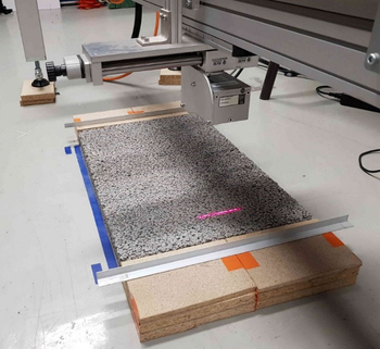 A A A Porous top layer optimization of cement concrete slabs for tyre/road noise reduction Philippe Klein 1 Univ Gustave Eiffel, CEREMA, Univ Lyon, UMRAE, F-69675, Lyon, France Julien Cesbron 2 Univ Gustave Eiffel, CEREMA, UMRAE, F-44344, Bouguenais, France Simon Bianchetti 3 Univ Gustave Eiffel, CEREMA, Univ Lyon, UMRAE, F-69675 Lyon, France Eric Gennesseaux 4 Univ Gustave Eiffel, MAST-MIT, F-44344, Bouguenais, France Thierry Sedran 5 Univ Gustave Eiffel, MAST-MIT, F-44344, Bouguenais, France Julien Waligora 6 EIFFAGE Infrastructure GD, F-69964, Corbas, France ABSTRACT The I-STREET CUD-SF project aims at developing an urban pavement made of cement concrete slabs that can be easily removed and replaced for maintenance purposes. These slabs are made of a dense cement concrete body and a functionalized porous top layer ensuring water drainage and sound absorption. In order to optimize the porous layer for the reduction of tyre/road noise, several mix recipes with different porosities and maximum aggregate sizes were considered. The recipes with the most interesting absorption properties were preliminary selected based on absorption coefficient measurements performed on cylindrical test specimens with an impedance tube. A second phase was dedicated to the evaluation of texture induced coast-by rolling noise levels with the tyre/road noise prediction model HyRoNE from 3D texture scans performed on rectangular laboratory samples. Fi- nally, based on a porous medium model and a propagation model considering the tyre/road noise 1 philippe.klein@univ-eiffel.fr 2 julien.cesbron@univ-eiffel.fr 3 simon.bianchetti@univ-eiffel.fr 4 eric.gennesseaux@univ-eiffel.fr 5 thierry.sedran@univ-eiffel.fr 6 julien.waligora@eiffage.com 21-24 AUGUST SCOTTISH EVENT CAMPUS. ? O? ? GLASGOW source as an omnidirectional point source over an impedance plane surface, the porous layer thick- ness of the selected mix was adjusted to minimize the predicted noise at roadside for different refer- ence rolling speeds. This paper gives an overview of the results obtained at the different stages of the optimization process, prior in situ assessment of the industrial solution in a near future. 1. INTRODUCTION The I-STREET project is a research operation funded by PIA3 French national program and operated by which brings together several projects concerning innovative road pavements. Among these, the I-STREET CUD-SF project aims to design a road surface adapted to the urban environment which is made up of cement concrete slabs that can be easily removed and replaced for maintenance or access to the under-pavement network (the French acronym CUD-SF stands for “Removable Urban Pave- ment with Functionalized Surface”). The slabs consist of a dense concrete body and a porous surface layer to drain water and absorb noise. The purpose of this article is to present the approach to optimize the acoustic performance of the slab surface with respect to rolling noise before in situ implementa- tion of the industrial solution. This optimization was carried out in several stages addressed in four parts. In Part 2, the principle of the pavement as well as the different mix recipes of porous cement concrete developed for the surface layer are presented. These recipes have been preliminary tested for sound absorption properties with an impedance tube for selecting the most interesting with respect to rolling noise reduction. This is described in Part 3. To complete the acoustic characterization, three-dimensional texture measurements were carried out on plates manufactured for each selected mix recipe. The readings were used to predict surface roughness-induced rolling noise levels using the HyRoNE [1] model for three reference rolling speeds. The results and ranking obtained are presented in Part 4. Finally, the combination of roughness induced rolling noise levels predicted with the HyRoNE model and the attenuation due to sound absorption was used to adjust the porous layer thickness of the slabs to minimize the noise levels received at roadside, for each of the considered reference speeds. The results are presented in Part 5, before conclusion in Part 6. 2. CEMENT CONCRETE SLABS AND POROUS TOP LAYER 21-24 AUGUST SCOTTISH EVENT CAMPUS. ? O? ? GLASGOW The general concept of removable urban pavement (RUP) is shown in Figure 1 and described in [2]. The cement concrete slabs are different from traditional paving stones. They are hexagonal in shape and quite large in size with an edge length of 46 cm and an inscribed circle diameter of 80 cm. The slabs are positioned so that their edges are not perpendicular to the rolling direction in order to limit impact noise that might be caused by gaps or steps between slabs. rolling direction Figure 1: Sketch of hexagonal cement concrete slab assembly. 2.1. Precast slabs The slabs are precast using a formwork. The porous layer is laid and compacted first in the formwork so as to ensure a flat slab surface through conformation of the surface aggregates against its bottom. The dense concrete of the slab body is then poured, with controlled percolation into the porous con- crete for bonding both layers. The slab structure and mechanical strength allow the adjustment of the porous top layer thickness to a certain extent. An example of a precast slab is shown in Figure 2. Lateral shoulders can be noticed that are intended to reduce gaps and rocking between slabs and to inter-connect the slabs to bear the traffic. 21-24 AUGUST SCOTTISH EVENT CAMPUS. ? O? ? GLASGOW Figure 2: Precast slab with porous top layer. 2.2. Porous top layer Due to the relative complexity of production, the study phase on the acoustic properties of the slabs was carried out on laboratory samples of the porous layer only. Several Porous Cement Concrete (PCC) mix recipes were considered with different aggregate sizes and target porosities. Three maxi- mum aggregate sizes were tested: 4 mm, 6 mm and 10 mm. For PCC 0/4 and 0/10, three target