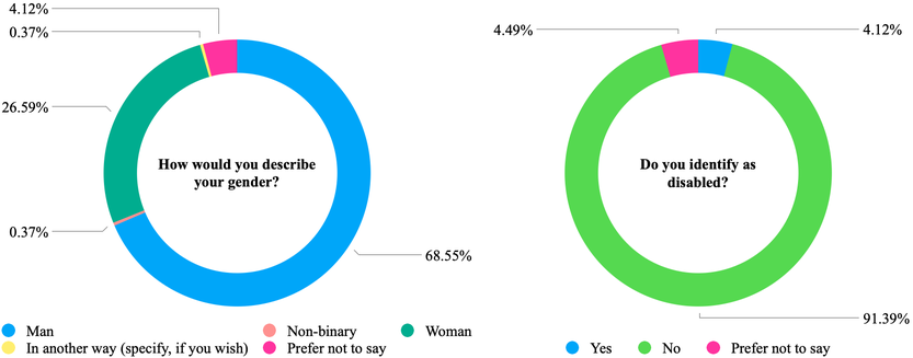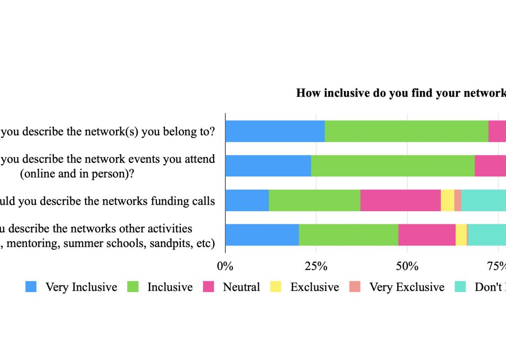 A A A Reflections on an EDI Survey of UK-Government-Funded Research Networks in the UK Simon Chandler-Wilde 1 University of Reading Department of Mathematics and Statistics, Whiteknights, PO Box 220, Reading, RG6 6AX, UK Samantha Kanza 2 University of Southampton Department of Chemistry, Highfield Campus, University Road, SO17 1BJ, UK Oliver Fisher 3 University of Nottingham Faculty of Engineering, Coates Building, University Park, NG7 2RD, UK Debra Fearnshaw 4 University of Nottingham Faculty of Engineering, Coates Building, University Park, NG7 2RD, UK Eleri Jones 5 University College London PETRAS, Department of Science, Technology, Engineering and Public Policy, Shropshire House, 11-20 Capper Street, London WC1E 6JA ABSTRACT We discuss the results of a Community EDI Survey run in 2021 by the Network of Networks, a union of largely physical sciences and engineering UK-based research networks. We discuss implications of the results for how we organise and support attendance at events across our networks and on feedback as to what does and doesn’t work for events blending in-person and online attendance. To put this work in context we survey relevant literature on the value or otherwise of blended and online events for supporting the diverse membership of a network. The survey results also provide interesting feedback on the diversity of our networks and how inclusive our networks are perceived to be as a function of the identity of the respondents. 1 s.n.chandler-wilde@reading.ac.uk 2 s.kanza@soton.ac.uk 3 Oliver.Fisher2@nottingham.ac.uk 4 Debra.Fearnshaw@nottingham.ac.uk 5 eleri.jones@ucl.ac.uk a slaty. inter.noise 21-24 AUGUST SCOTTISH EVENT CAMPUS O ¥, ? GLASGOW 1. INTRODUCTION In this paper we discuss the results of a Community Equality Diversity and Inclusion (EDI) Survey run by the Network of Networks, a union of research networks, largely funded by the UK Engineering and Physical Sciences Research Council (EPSRC). The Network of Networks (NoN) is coordinated by the Connected Everything Network led from the University of Nottingham. The anonymous survey, sent out to members of our networks from July 2021 with a closing date in September 2021, asked: – How inclusive are our networks and their activities? – For the diversity characteristics of the respondents – About barriers / enablers for event attendance, and what does / doesn’t work with blended events – About travelling and Covid, and for any other comments In total we received 267 responses from 19 networks. Relevant to the subject area of this conference, 70% (187) of the responses were from members of the UK Acoustics Network (UKAN, acoustics.ac.uk). The response rate was rather modest, but these responses, in particular the free-form responses, have provided us with a wealth of data which we discuss below. 1.1. Motivation for the Survey From March 2020 onwards, two factors intersected to provide the motivation for the survey. The first was the now widely accepted fact that fostering inclusion is essential for a high-performing research and innovation (R&I) system. Over recent decades, there has been a wealth of global and UK-based research to examine the widespread disadvantages faced by under-represented groups in academia, and setting out the significant benefits of EDI to universities and research outcomes [1]. In the UK, UK Research and Innovation (UKRI), has made EDI a priority since it was formed in 2018. UKRI states that they have a responsibility to ensure the health of the R&I system, now and in the future, and that this requires a diversity of people and ideas. The organisation has initiated work streams to support this aim, building on work undertaken by its individual component research councils, including EPSRC. For example, EPSRC recently set out their ‘Expectations for EDI’ [2], co-authored by Debra Fearnshaw, one of the authors of this paper. ‘Expectation Three’ notes that activities undertaken as part of EPSRC grants should be explicitly inclusive, accessible and diverse for speakers and attendees, recommending that Networks should publish a code of conduct for organised activities. Within this context of a drive to improve diversity and inclusivity across all UKRI-funded grants, NoN has recognised the importance of EDI and held focused sessions in February and May 2021 to examine how networks could be more inclusive. This led to a small working group being formed to develop a survey to establish a benchmark. The second motivating factor was the widely made observance that remote working during the COVID pandemic had enabled a more diverse attendance and participation at academic conferences and events [3, 4], especially regarding post-doctoral scholars (up 344%) and women (up 254%) [4]. Given the importance of fostering a more inclusive and diverse sta ff in UK HE, and the suggested impact of remote working on this, it was therefore important to NoN that the impact of online events was explored and analysed. The aim of this was to ensure that any benefits in relation to increasing inclusion and diversity were not lost as we moved back to in-person meetings and events. 1.2. The Survey Development The survey design and implementation working group was led by Dr Samantha Kanza (AI 4 Scientific Discovery Network), with Debra Fearnshaw (Connected Everything Network) and Eleri Jones (PETRAS), all authors of this paper, plus Beth McEvoy (E Futures Network), Dr Andrea Johnston (CMAC), and Dr Pamila Sharma (Digitalised Surface Manufacturing Network). The draft went back to the wider NoN for approval. After looking at di ff erent examples of questions to probe the diversity of our members, the working group recommended using the Advance HE - Guidance on the collection of diversity monitoring data, as of March 2021. It also proposed to add questions on caring responsibilities and socioeconomic background. We received full ethics approval from the University of Southampton Ethics and Research Gov