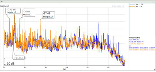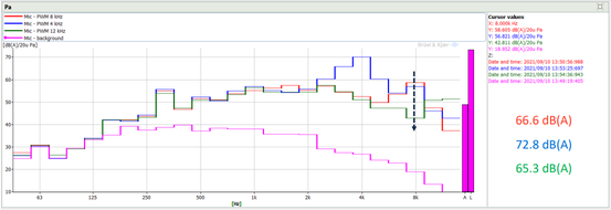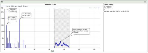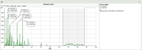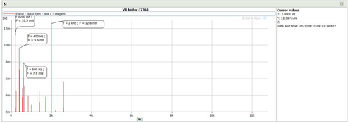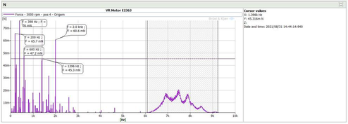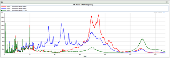 A A A Analysis of high frequency noise sources on air conditioning variable speed compressors Vitor Almeida 1 Tecumseh do Brasil LTDA Rua Cel Augusto de Oliveira Salles, 478, São Carlos Osmar Pinheiro 2 Tecumseh do Brasil LTDA Rua Cel Augusto de Oliveira Salles, 478, São Carlos ABSTRACT The improvement on energy consumption requires application of new technologies in existing products. On the past decades, optimization of power consumption on variable speed rotary compressors for air conditioning applications was achieved by replacing induction mo- tors to permanent magnets (PM) motors driven by a frequency inverter. Besides the positive impact of improving the compressor efficiency changing the electric motor type, the acoustic problems on the compressor became more complex. This article makes a revision of the main noise generation mechanism by PM motors of an air conditioning compressor via numerical finite element and experimental analysis aiming a noise reduction on a tonal component around 8 kHz band. Results indicate harmonic components on the forces exciting some specific reso- nance frequencies of the stator. The harmonic components show up in the force signals via pulse width modulation of the electronic controller. The structure-born noise is radiated through the compressor shell. Among the possibilities to mitigate the noise issues, it was chosen to optimize the electronic control, reducing the excitation levels of the stator and the tonal component of 8 kHz band in about 10 dB improving the sound quality of the compressor. 1. INTRODUCTION Energy saving have always been a concern on refrigeration industry. On the past decades, the inverter technology based on the variable speed compressors shows up as an efficient solution on refrigeration industry. By an electronic inverter this technology converts the household AC power supply current, with fixed frequency of 50Hz or 60Hz, to a DC current and using a pulse width mod- ulation (PWM), then the inverter generates an AC in a specific frequency [1]. On this design, to apply the inverter technology, the usual induction motors of the compressors are replaced to Permanent Magnet Synchronous Motor (PMSM) based on Interior Permanent Magnets (IPM). On air conditioning devices, the major amount of energy consumption is due to the rotary compressor. The application of variable speed technology makes possible to vary the rotation of the compressor from low rpms until high speeds, such as 7000 rpms. The electronic controller changes the compressor speed according to the thermal loads, prioritizing low rotations, regions in which the 1 vitor.almeida@tecumseh.com 2 osmar.pinehiro@tecumseh.com worm 2022 compressor is more efficient. On the other hand, in household appliances, the noise levels generated is a key point for the final customer, making the noise characteristics of the product so important as the energy consumption. Thus, the project of a rotary compressor must aim both characteristics: en- ergy consumption and noise levels. Besides the several advantages of IPM motors, this type of motor has more possible noise sources than other motor types, being a set of excitations straightly attached to the compressor shell and other compressor parts [2] [3]. This paper brings a case study of an inverter rotary compressor with accentuated noise level on 8 kHz band. Starting from the characterization of the issue and contextualization to theoretical background of electromagnetic noise sources, this paper maps the main noise and vibration transmis- sion paths of rotary compressors. Numerical finite element method (FEM) and experimental data provides guidelines to a deep understanding of the noise source around a frequency of 8 kHz, sup- porting several proposals to mitigate noise sources due electromagnetic phenomena. 2. OVERVIEW OF NOISE ISSUE During the development of a new rotary variable speed compressor, it was noticed a tonal component in the third-octave band of 8 kHz. This unusual behavior hazards the sound quality of the product and is identified as an issue to be mitigated. Figure 1 shows the sound power levels measured according to ISO3744 standard. Although the middle frequency (between 800 Hz to 1600 Hz) has similar levels compared to 8 kHz band, the tonal behavior of the last one is a key point for product quality. worm 2022 Figure 1: Sound power level of a rotary compressor. On the rotary compressor, the three main natures of noise sources which make the overall compressor noise are the gas pulsation on the suction and discharge pipelines; the mechanical forces and moments which appear due the movement of the parts during the compression cycle; the driven forces of the motor due to the electromagnetic field on the stator. Figure 2 summarize the main noise generation path on the rotary compressor. Understanding the mechanism of noise generation is crucial on troubleshooting of noise, vibration, and harshness (NVH) issues. ‘swt [2B] 108 PPPEPSORPEEPPEPIEPOEP Frequency) Figure 2: Noise generation path. Measurements of noise, vibration and suction and discharge pressure under different condi- tions point to a problem related to the compressor motor. 3. THEORETICAL BACKGROUND worm 2022 The noise sources on IPM motors can be divided in three types: (a) Cogging Torque; (b) Rip- ples of mutual and reluctance torque; (c) Fluctuations of radial magnetic attractive forces between rotor and stator. 3.1. Electromagnetic Forces The electromagnetic forces on an IPM motor can be calculated by the Maxwell stress tensor method [4]. The time and angle dependence of the forces and flux densities (t, α) are suppressed for the sake of notation. 𝑓 𝑟 = 1 2 − 𝐵 𝜃 2 ൯ , ൫𝐵 𝑟 (1) 2 𝜇 0 𝑓 𝜃 = 𝐵 𝑟 𝐵 𝜃 , (2) 𝜇 0 where 𝑓 𝑟 and 𝑓 𝜃 are the radial and tangential forces, B r and B θ are the radial and tangential flux den- sities and µ 0 the permeability of free space. The radial forces take more a