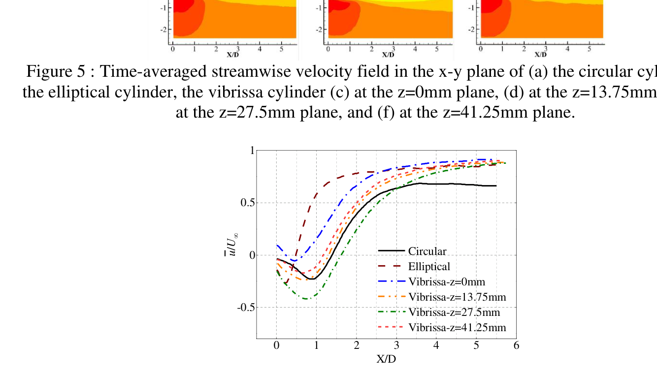 A A A The effect of the vibrissa shaped cylinder on the aeolian tone mitigation Guanjiang Chen 1 , Xiao Liu 2 , Bin Zang 3 , Mahdi Azarpeyvand 4 Faculty of Engineering, University of Bristol, United Kingdom, BS8 1TR ABSTRACT This paper studies vibrissa shaped cylinder as a passive control method for reducing the aerodynamic noise of the flow past a cylinder. One elliptical cylinder and a circular cylinder are also investigated for comparison. The far-field noise results show that compared with the circular cylinder case, the tonal peak almost disappears in the vibrissa shaped cylinder case and the sound pressure level (SPL) could be reduced by about 20dB at Re ≈ 36,000. The elliptical cylinder only shows a slight SPL re- duction by about 4 dB with a shift in the tonal peak frequency from St=0.2 to St=0.36. Furthermore, some noticeable variations occur in the noise directivity pattern for the vibrissa shaped cylinder case. The shift in the tonal peak frequency, the reduction in noise and modifications in the noise directivity are related to the changing and breakdown of the vortex shedding caused by the interference with the elliptical and vibrissa shaped cylinder surfaces. The PIV experiments are conducted to the three cases for the flow field information to further understand the mechanism of the noise reduction caused by the vibrissa shaped cylinder and the elliptical cylinder. 1. INTRODUCTION Flow past a bluff body is a frequently encountered topic in aerodynamic and aeroacoustic research due to its extensive engineering application. Circular cylinder is the basic model for the bluff body, which has been studied in many previous works. Revell, et al. [1] built the relationship between sound pressure level (SPL) and drag coefficient ( 𝐶 𝑑 ) experimentally for the Reynolds number range from 45,000 to 450,000. Alemaroglu, et al. [2] used acoustic pressure measurements and hot wire velocity measurements to study the relationship between the far field acoustic pressure and the surface bound- ary layer condition. The coherence at the fundamental vortex shedding frequency was intense in the subcritical and the supercritical regimes, while the value became low in the transcritical regime. Through cross-correlation analysis, Oguma, et al. [3] experimentally evaluated that the sound sources were near both separation points of two sides of the cylinder and in the near wake. The simulation work of Orselli, et al. [4] used the CFD/acoustic analogy method to get the near field and far field pressure results. With the correction method of Kato, et al. [5] , the SPL calculated from the 3-D LES matched well with the experiment of Ref. [1] . Lysenko, et al. [6] simulated the flow past a cylinder using LES and concluded that the sound source had a dipole nature. More studies could be found in reviews of Blevins [7] and Porteous, et al. [8] . For the sake of environment protection, studies about the noise mitigation are of great concern. [9, 10] . Two classes of methods are usually adapted to reduce the noise: the active flow control, which 1 PhD Student, Department of Aerospace Engineering, guanjiang.chen@bristol.ac.uk 2 Technical Specialist, Wind Tunnel Laboratory, xiao.liu@bristol.ac.uk 3 Lecturer in Aeroacoustics, Department of Aerospace Engineering, nick.zang@bristol.ac.uk 4 Professor of Aerodynamics and Aeroacoustics, Department of Aerospace Engineering, m.azarpeyvand@bristol.ac.uk worm 2022 changes the flow structure using energy inputs; the passive flow control, which modifies the geome- try. Compared with the active flow control methods which usually introduce extra flow [11, 12] , the passive flow control methods such as using the porous medium and the geometry modification are more robust. The porous medium could mitigate the interaction between the fluid and solid surface. [10, 13-15] . The geometry modification introduces various disturbances [9] or changes the surface shape to alter the near wall flow structures and will reduce the flow-induced noise [16] , which is easy to be implemented. This paper focused on a bio-inspired shape based on Harbour Seals’ vibrissa, which is reported to change the vortex shedding process and reduce the vibration [17] . There has been some research about the flow past a vibrissa shaped cylinder. Wang and Liu [18] experimentally studied the wake behind a vibrissa shaped cylinder through time-resolved particle image velocity. The vortex shedding process of the vibrissa cylinder was disrupted by the irregular surface, which suppressed the vortex-induced vibration. Kim and Yoon [19] conducted LES for the flow past an elliptical cylinder and the flow past a vibrissa cylinder. The shear layer of the vibrissa case was much longer than that of the elliptical case. When the angle of the attack increased, two flow structures between the vibrissa case and the elliptical case became similar because the bluff body flow overcame the flow induced by the vibrissa cylinder. Jie and Liu [20] simulated the flow past a vibrissa cylinder using LES. The results showed the fluctuation of lift force is reduced by approxi- mately 79.2% for the vibrissa case compared with the circular cylinder case. The POD analysis re- vealed the wake shedding processes on the nodal and saddle planes are not synchronous. The flow structure near the vibrissa cylinder results in smaller velocity and pressure fluctuations. The LES research of Chu, et al. [21] also showed the flow past a vibrissa cylinder presented the three-dimen- sional separation, and the out-phase vortex shedding on the nodal and saddle planes made a signifi- cantly influenced the lift fluctuation. In summary, most research on the flow past a vibrissa cylinder focus on the aerodynamic charac- teristics, and it is worthwhile to study the noise reduction effects of the vibrissa cylinder. Detailed aerodynamic characteristics and noise performances of a circular cylinder, an elliptical cylinder and a vibrissa cylinder are prese