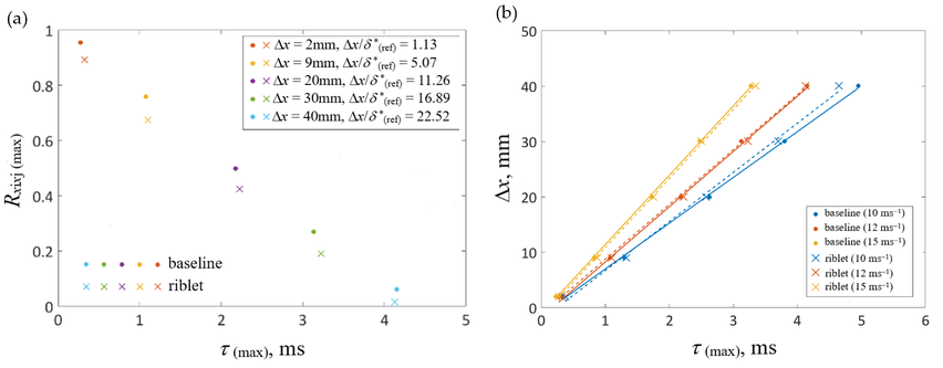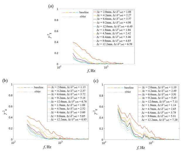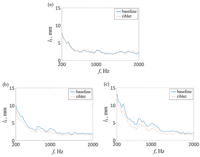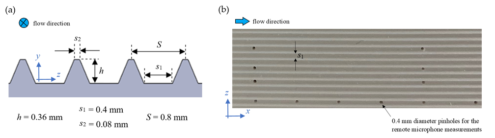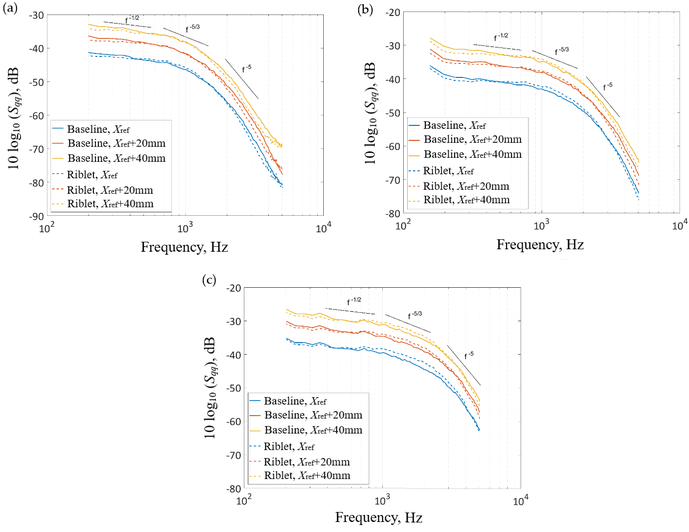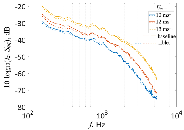 A A A A Feasibility Study of Riblets for Aeroacoustics Applications Chioma Muhammad Tze Pei Chong 1 Brunel University London Kingston Lane, Uxbridge, UB8 3PH, United Kingdom ABSTRACT One of the most e ff ective strategies to reduce the aerofoil trailing edge self-noise is to manipulate the turbulent noise source directly. This paper is a feasibility study to investigate the riblets, which have so far been quite successful as a drag-reducing device, for its potential to reduce the turbulent pressure sources that are important for aerofoil self-noise radiation. The results show that the riblets used in the current study can reduce the skin friction coe ffi cient, as well as the turbulence intensity in the boundary layer profiles. In addition, the turbulence structures in the convective field can be dissipated more rapidly when crossing the riblets surface. More interestingly, it is found that (1) the riblets produce a slight reduction of the wall fluctuating pressure power spectral density level at the low and high frequency ranges, but experiences an increase at the mid frequency, (2) the riblets can reduce the lateral turbulence coherence length scale across a large frequency range. The product of these two hydrodynamic sources, which has a direct implication to the self-noise radiation, reveals that the riblets have a potential to reduce the trailing edge noise at the low and high frequency regions, respectively. 1. INTRODUCTION One of the major noise sources for an aerofoil is the trailing edge self-noise. The descriptive wording of self-noise stems from the fact that the far field radiation originates from the hydrodynamic field near the trailing edge. However, it is also important to note that the radiation is dependent on the state of the boundary layer, which is governed by several external factors such as the surface roughness, Reynolds number, pressure gradient and so on. One type of self-noise that is especially relevant to the industrial applications is when the boundary layer has undergone a complete transition to fully turbulent at the trailing edge. In this scenario a cascade of turbulent length scale eddies are scattered into a broad frequency band of acoustic disturbances into the far field. Source targeting can be an e ff ective principle to reduce the radiated turbulent broadband noise level. More specifically, one can aim to manipulate, alter or inhibit the growth mechanisms of the turbulent boundary layer. Mounting finlets near the trailing edge has been shown to significantly alter the turbulent boundary layer structure and reduce the radiated noise level [1]. Attaching a serration at the trailing edge represents another proven method for self-noise reduction. In addition to the 1 t.p.chong@brunel.ac.uk a slaty. inter.noise 21-24 AUGUST SCOTTISH EVENT CAMPUS O ¥, ? GLASGOW acoustical destructive interference mechanism [2,3], a serrated trailing edge can also trigger additional streamwise structures to interfere with the turbulent boundary layer, and slow down the propagation rate of the eddies near the oblique edges [4]. Although this represents a di ff erent form of source targeting approach, it can still be very e ff ective in the reduction of self-noise radiation. Acoustical destructive interference can also be enforced in a trailing edge with a structured porous surface. For example, Scholz et al. [5] demonstrated that placing a single row porous array at the rear part of aerofoil can force the turbulent eddies to scatter twice: first at the spanwise porous row, and second at the trailing edge. The phase di ff erence between the scattering locations thus gives rise to a frequency tuning capability. However, the dominant mechanism of noise reduction by porous trailing edge is the source targeting. A turbulent boundary layer passing over a porous surface with a strong wall- normal permeability can lift up the near wall low-speed streaks [6], thereby displacing the turbulence away from the wall surface and reducing the near wall turbulence source strength. Indeed, making the aerofoil trailing edge porous has been shown to produce low level of self-noise radiation [7]. From the first observation of the fast swimming capability of sharks to the discovery of dermal denticles on their skin, the use of riblets to reduce skin friction on engineering surface is one of the most researched topics in the fluid mechanics community. The riblets can be configured in di ff erent forms, such as the v-groove (or sawtooth) [8], trapezoidal-groove [9], and scalloped [10]. Each of the configuration mentioned above has achieved various degree of success in realising the drag reduction potential. However, there seems to be conflicting findings on some of the mechanisms exerted by the riblets to the turbulent boundary layer structures. For example, some have found that the bursting frequency of the low-speed streak remains unchanged under riblets [8, 11], but others observed that the weakened near wall burst is one of the main reasons for the reduced turbulence production [12,13]. When the riblets geometry is optimised, the low-speed streaks in the sublayer can be constrained in the trough between the riblets protuberances, thereby restricting the spanwise meandering of the wall vortices in their turbulence self-generating process. Many studies have also reported a reduction of the boundary layer turbulence intensity level on the riblets surface. These observations suggest that the riblets have a potential to execute the source targeting principle in the self-noise reduction. Unlike the previous candidates (finlet, serration and porous), the riblets can even reduce the drag. This work represents a feasibility study to investigate the potential of a riblets to reduce the turbulent pressure sources that are important for aerofoil self-noise radiation. To the best knowledge of the authors, the change in the turbulence structures by riblets has not been studied much from the perspective of t