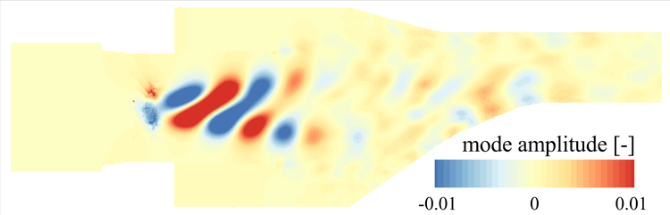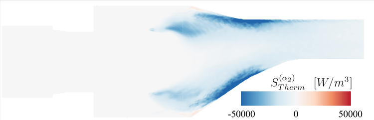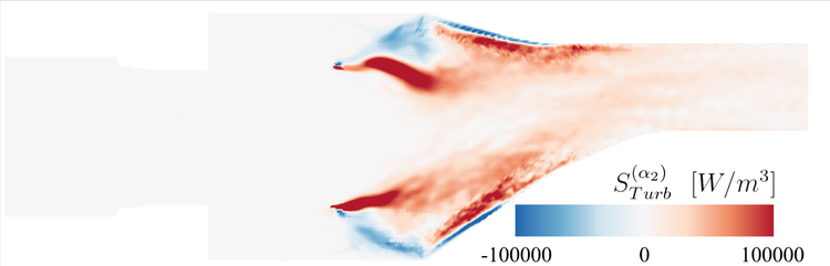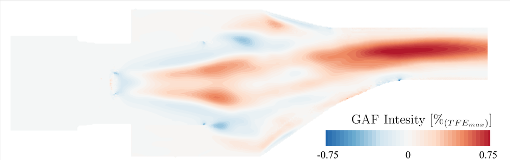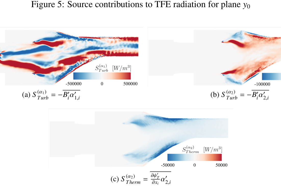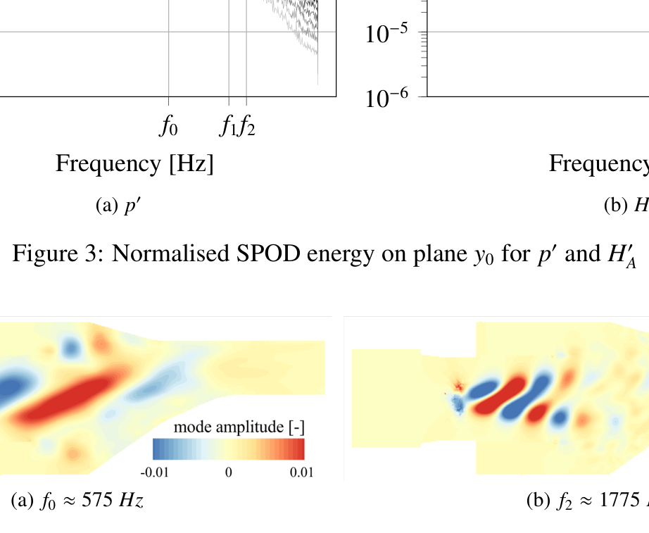 A A A Analysis of combustion noise sources using Doak’s momentum potential theory Ra ff aele D’Aniello 1 German Aerospace Center (DLR) Department of Engine Acoustics, Müller-Breslau-Straße 8, Berlin - Germany Karsten Knobloch 2 German Aerospace Center (DLR) Department of Engine Acoustics, Müller-Breslau-Straße 8, Berlin - Germany Carolin Kissner 3 German Aerospace Center (DLR) Department of Engine Acoustics, Müller-Breslau-Straße 8, Berlin - Germany ABSTRACT Noise emissions of modern lean combustors are related to di ff erent sources. Direct combustion noise is generated by heat release fluctuations, while indirect noise sources are caused by the acceleration of entropy and vorticity inhomogeneities through the nozzle-guide-vane at the combustor exit. The latter noise source is characterised by the coupling of fluctuations. When convected in non-uniform mean flow, this coupling can e.g. cause vortical or entropic fluctuations to be partly transferred into acoustics. Due to the complexity of the sources, a clear and quantitative separation of the di ff erent phenomena in terms of primitive variables presents a significant challenge. This study therefore proposes an alternative framework for the description of combustion noise generation based on Doak’s Momentum Potential Theory (MPT). The MPT defines a Generalised Acoustic Field (GAF) and describes the sound production in terms of mean energy fluxes carried by the respective acoustic, thermal and turbulent fluctuating momentum components. To confirm the ability to identify the di ff erent combustion noise sources, the method was applied to Large-Eddy Simulation data of a non-reacting swirl-combustor simulator. The coherent character and spectral behaviour of the GAF were investigated using a Spectral Proper Orthogonal Decomposition analysis and the GAF mean fluxes correlated to the source distributions. 1. INTRODUCTION Noise emissions associated with combustion processes can significantly contribute to the overall engine-core noise of aeronautical engines and gas turbines [1]. They typically feature a broadband, low-frequency behaviour that can a ff ect the dynamics of the flow in the combustion chamber as well as of the jet-exhaust gas [2]. Nevertheless, they are of particular interest for modern combustor devices, which are characterised by high-temperature, unsteady combustion processes [3]. In fact, the heat release fluctuations resulting from the dynamics of lean premixed flames cause sound production within the combustion chamber, which commonly referred to as direct combustion noise. Another noise source, called indirect combustion noise, is related to the acceleration of flow inhomogeneities- 1 ra ff aele.daniello@dlr.de 2 karsten.knobloch@dlr.de 3 carolin.kissner@dlr.de such like entropy, vorticity or mixture inhomogeneities through the nozzle-guide-vane (NGV). Even though highly dependent on geometry and operating conditions, the indirect combustion noise can dominate combustion noise [4] and is thought to play an important role in the feedback mechanisms which cause combustion instabilities [2]. A proper understanding of the combustion noise production thus represents an important milestone in realising safer, more e ffi cient and consequently greener combustor devices. The transfer mechanism between vortical, entropic and acoustic fluctuations, which is typical for the production of indirect combustion noise, can be explained by mode coupling [3]. In general, if the fluctuations propagate in a uniform mean flow, three uncoupled types of disturbances (i.e. acoustic, vortical and entropic modes) can propagate with the flow without any mutual interaction. Conversely, if the mean flow is non-uniform as is typical in a combustion chamber, the disturbances couple with each other. For instance, entropy disturbances can then be transferred into acoustic perturbations [5]. Chu et al. [6] showed, however, that the mutual influence between the modes generally results in a complex interdependence of the primitive variables due to the non-linearity of the model flow. This, in turn, makes the distinction between the di ff erent noise sources as well as the quantification of the respective sound production challenging. Conventional combustion noise models tend to focus on the propagation of modes and to make strong simplifying assumptions for the sources characterisation. As a consequence, these models, which mostly rely on the works of Marble and Candel [7] and Cumpsty and Marble [8], define unambiguous transfer functions for acoustic fluctuations, although several extensions exist. The main assumptions include an isentropic propagation of the disturbances, a quasi-one-dimensional framework and a compactness of the nozzle. Moreover, the sources, typically treated as a known input for the system, are modelled as periodic oscillations. Several studies question these assumptions. For instance, De Domenico et al. [9] showed that a non-isentropic extension is necessary to capture the indirect combustion noise components and match the observed experimental behaviour. Weilenmann et at. [10] compared di ff erent one-dimensional models for the propagation of entropy waves with experimental and simulation data showing that the waves should be modelled by using at least a two-dimensional approximation. Semlitsch et al. [11] applied mode decomposition techniques to analyse the generation of entropy and vorticity waves for CFD simulation data of a realistic gas turbine combustor configuration. Their findings point out the unsteady and three-dimensional character of the coherent structures featured by the fluctuations, which question idealised wave assumptions. A complex and at the same time reliable description of the acoustic sources is however crucial to match the acoustic emissions at the NGV entrance. Therefore, this study proposes an alternative framework for the description of combustion noise generation based on the Momentum Potential