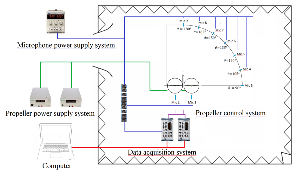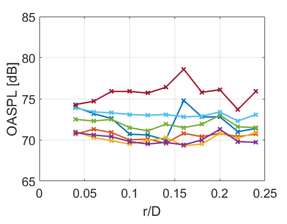 A A A Experimental investigation on a side-by-side twin rotor system in pusher configuration Elisa de Paola 1 Department of Engineering, Roma Tre University Via della Vasca Navale 79, 00146, Rome, Italy Alessandro Di Marco 2 Department of Engineering, Roma Tre University Via della Vasca Navale 79, 00146, Rome, Italy Luana Georgiana Stoica 3 Department of Engineering, Roma Tre University Via della Vasca Navale 79, 00146, Rome, Italy Leonardo Falcini 4 Department of Engineering, Roma Tre University Via della Vasca Navale 79, 00146, Rome, Italy Roberto Camussi 5 Department of Engineering, Roma Tre University Via della Vasca Navale 79, 00146, Rome, Italy ABSTRACT Growing interest in electric propulsion, together with the increased deployment of unmanned aerial vehicles, results in the consequent need for a clear understanding of the physical phenomena under propeller interactions which represent a primary noise source in multi-rotor configurations. To this purpose, the e ff ect of rotor-to-rotor interactions of a twin pusher propeller configuration at static thrust conditions was experimentally investigated through aerodynamic and aeroacoustic measurement campaigns. The propellers tested refer to the APC-8x45MR rotor with an 8 inches diameter. The aerodynamics and aeroacoustics of several configurations were investigated using PIV technique, and microphone measurements performed in an anechoic environment. The propeller speed was varied within a typical range in the applications for both co-rotating and counter-rotating layouts. To define critical relative positions, many tip-to-tip separation distances were considered 1 elisa.depaola@uniroma3.it 2 alessandro.dimarco@uniroma3.it 3 luana.stoica@uniroma3.it 4 leo.falcini@stud.uniroma3.it 5 roberto.camussi@uniroma3.it a slaty. inter.noise 21-24 AUGUST SCOTTISH EVENT CAMPUS O ¥, ? GLASGOW highlighting the general e ff ects. Owing to the deformation exhibited by the rotor wakes due to their proximity, the pressure and velocity signals are analysed to inspect the driving mechanisms responsible for the noise emission. Results provide an insight into the physics involved and show di ff erent types of interaction e ff ects on the fluid-dynamic field as a function of the propeller position, allowing the identification of the main critical configurations. 1. INTRODUCTION In the last decades, the demand for air transportation has dramatically risen and the prevision for the next years shows that the air tra ffi c will double within 2034, [1]. Concerns about the growing impact on the environment revived enthusiasm for propeller technologies since e ffi cient propulsion systems are required to achieve a step-change in the performance of future aircraft designs. In this framework, interest in hybrid-electric [2] and fully-electric [3] propulsion made the investigation of propeller–propeller interactions more relevant. In terms of multi-propellers, propeller-blade, and propeller-airframe interactions, the noise problem has been addressed by extensive research principally focusing on CRORs, [4, 5], together with the problem of the integration of an isolated rotor over the airframe, [6,7]. Moreover, there exist several concepts of distributed electric propulsion that can be found in the literature, but most of them are analyzed for their applicability in designing boundary layer injection (BLI) configurations [8, 9]. Electric propulsion is expected to modify the classical frequency spectrum of the sound emission, being dominated by the fan noise. According to Rizzi et al. [10], the combination of multiple propellers has the potential to alter the relationships currently used between noise exposure and annoyance, concerning their combined amplitudes and phase modulation. Additionally, the use of systems that are flown without a human pilot aboard, known as UAVs, is nowadays rapidly growing in several industries and public applications with the consequent need for noise reduction methods, in consideration of the fact that propellers interactions are the primary source of noise of contemporary multi-rotor configurations. The noise from UAVs is mainly due to propellers, power sources, and the interaction between them. Spatial configuration plays an important role in the specific noise characteristics, and levels will vary for di ff erent arrangements. The electric motor tends to have a high-frequency noise and contributes to the overall sound level, as presented by Hu ff and Henderson who found that strong motor tones can be amplified by propellers loading from anywhere between 5-15dB, [11, 12]. Electrical motors can be a significant noise source at harmonics greater than the 5th blade passage frequency, [13]. However, it is not as significant as the one generated by the propeller, [14,15]. The noise emitted by UAV rotors has been experimentally and numerically investigated in many research studies, focusing on the directivity of the isolated propeller, [14], as well as on the e ff ect of the blade geometry and on the rotor-airframe interactions, [16]. Only a few studies can be found in the literature that examined the rotor-to-rotor interactions e ff ect on the aeroacoustic performance of modern UAVs. Intaratep et al. [15] performed acoustic measurements on a commercial quad-copter analyzing the noise from one, two, and four propellers. The radiated noise from multiple propellers did not follow a linear trend with the number of operational rotors, showing to be a ff ected by the phase angle of each tonal source. The acoustics level at static thrust conditions dramatically increases in broadband noise proportionally with the number of rotors operating. A di ff erent approach was followed by Tinney et al., [17], to compare the noise due to isolated rotors, quadcopters, and hexacopters operating at static thrust. Time-frequency analysis of the sound field demonstrates modulations of the pressure levels associated with the first few BPFs. Zhou et al. [18] perform