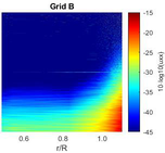 A A A Pressure-velocity measurements of a small automotive fan at different working conditions. A noise generation perspective. Luana Georgiana Stoica 1 University of Roma Tre, Engineering Department Via Vito Volterra, 62, 00146 Rome, Italy Alessandro Di Marco 2 University of Roma Tre, Engineering Department Via Vito Volterra, 62, 00146 Rome, Italy Elisa de Paola 3 University of Roma Tre, Engineering Department Via Vito Volterra, 62, 00146 Rome, Italy Enrico Mollica 4 SPAL Automotive Srl Via per Carpi n. 26/B, 42015 Correggio, Italy ABSTRACT Although noise from large fans has been extensively studied by the scientific community, few experi- mental studies have been performed on small-scale fans, where aerodynamic effects due to low Reyn- olds numbers need to be taken into account. For this reason, some preliminary experimental investi- gations have been carried out on cooling fans for automotive applications. The experimental cam- paign has been focused on the characterization of the flow outlet, and its correlation with the noise generation on a 5.5-inch five-bladed fan. Simultaneous measurements of velocity with hot-wire ane- mometry (HWA) and pressure fluctuations with microphones have been carried out, the HWA probe being located downstream, two microphones positioned in the far-field of the fan, and another mi- crophone measuring the wall pressure fluctuations on the shroud. The fan has been also studied at different working conditions, varying the rotational speed, and applying specific fine grids at the intake, in order to well reproduce the presence of the cooler. Analyses in the time and frequency domain have been performed on the measured data, including cross-correlation between pressure and velocity signals, in order to find the main driving mechanisms that are related to the noise gen- eration. 1. INTRODUCTION Automotive noise has become a relevant focal point in automotive industry, and a major contrib- utor to the overall noise is the cooling fan. Consequently, the design process of automotive cooling fan systems cannot exclude their acoustic performances. Noise radiated by fans can be divided in two 1 luana.stoica@uniroma3.it 2 alessandro.dimarco@uniroma3.it 3 elisa.depaola@uniroma3.it 4 e.mollica@spal.it worm 2022 main components: the tonal component occurring at the blade passage frequency harmonics, and the broadband noise component. Several mechanisms concur to this latter component. The blade or fan self-noise component is the one generated by blades operating in a clean undisturbed flow [1], thus it represents the minimum noise a fan would emit, even when no installation effects are involved. An- other contribution is represented by the noise due to the upstream turbulence ingested by the rotor, shed for instance by other parts of the automotive cooling module. An important mechanism involved is the trailing-edge noise, caused by the interaction of the blade turbulent boundary layer with the geometrical discontinuity represented by the trailing edge. In addition, blade tip vortices and leakage flows may also contribute significantly to fan noise [2]. Fan design often involves numerical simulations, such as RANS ([3]), Lattice-Boltzmann [4], LES [5], DES [6], or BEM [7], usually coupled with the Ffowcks Williams and Hawkings analogy to solve the acoustic part. Due to the complexity of the three-dimensional flow generating inside the fan, numerical simulations are very computationally expensive, thus some approximations are required to be able to analyse different design solutions, especially when noise investigation in involved. It is therefore very important to have experimental data for the validation of these codes. Few studies can be found in literature with acoustic experimental data from automotive shrouded fans. Among these, Rynell et al. [8] have carried out acoustic measurements on a cooling module composed of an automotive radiator, a shroud, a fan, a frame and a hydraulic motor, at different rotational speeds. Tip-leakage flow noise was investigated in Canepa 2016 [9] and Canepa 2019 [10], using acoustic measurements and particle image velocimetry. Amoiridis et al. [11] investigated the acoustic emissions from an automotive cooling module by means of sound source localization using beamforming and directivity measurements. In this paper, fan noise is investigated varying the radiator grid type and rpm and correlating the acoustic data with the velocity measured in the propeller wake and with the wall pressure fluctuations on the propeller shroud. Section 2 gives an overview of the experimental set-up, while in section 3, results are presented and discussed in terms of aerodynamics and aeroacoustics. 2. EXPERIMENTAL SET-UP worm 2022 The fan under investigation is a shrouded automotive cooling fan, with a diameter of 0.14 m (5.5 in.) and five forward-skewed evenly spaced blades. Its hub to tip ratio is 0.43, and the tip clearance ratio 3%. Figure 1: Experimental set-up. Red points indicate HWA measurement points. The design point corresponds to a flow coefficient 𝜑= 0.162 , a head coefficient 𝜓= 0.225 , and a rotational speed of 5500 rpm. The fan rotates clockwise seen from upstream and is driven by a brushed DC motor. Velocity fluctuations were acquired using a hot wire anemometer (HWA), while acoustic pressure and wall pressure fluctuations on the shroud were acquired by three Microtech Ge- fell M360 electret microphones. All the instruments were acquired simultaneously using a NI PXI- 6143 DAQ, with a sampling frequency of 65536 Hz and an acquisition time of 20 seconds. A sketch of the experimental set-up can be seen in Figure 1. A B worm 2022 a) b) Figure 2: Grids used to simulate the radiator: a) type A; b) type B. Three rotational speeds were considered and two different grid types simulating the radiator (Figure 2). Grid A is a PLA 3D printed radiator-type grid, with 4x1.3 mm cells and 5 mm thickness, while grid B is an aluminium grid with 0.5x0