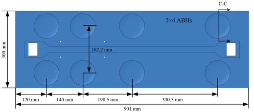 A A A Vibration characteristics optimization of a rectangular plate embedded with two-dimensional acoustic black holes Xiaofei Du 1 School of Mechanical Engineering, Nanjing Institute of Technology No. 1 Hongjing Avenue, Jiangning District, Nanjing 211167, China Qing Gu 2 Nanjing Institute of Technology No. 1 Hongjing Avenue, Jiangning District, Nanjing 211167, China ABSTRACT The acoustic black hole (ABH) structures have the potential to achieve structural vibration suppres- sion and noise reduction through the effect of the ABH on concentration and manipulation of flexural waves. In this paper, FEM models of the damping ABH plate with different geometric parameters of acoustic black holes and damping layers are established to investigate the comprehensive effect of the 2-D ABHs and the damping layers on the vibration characteristics of the plate through vibration response analysis and the Kriging surrogate model was used to obtain predictive values of the vibra- tion response of the ABH plate. Based on the constructed surrogate model, the vibration velocities of the four monitoring points of the ABH plate were optimized by using multi-objective genetic algo- rithms. This paper can provide guidance for the optimal design of acoustic black hole structure in engineering applications. 1. INTRODUCTION In recent years, due to the convergence and manipulation of flexural waves in the structure, the acoustic black hole (ABH) has become a new type of vibration and noise reduction technology. The characteristics of the acoustic black hole are that the local thickness of the solid structure gradually decreases in the form of a power index and finally approaches zero, then this region can gather the flexural waves spreading in the structure here, thereby reducing the vibration of other regions of the structure [1]. Different researchers have carried out many researches on the spread of flexural waves, vibration characteristics, and acoustic characteristics of acoustic black hole structures [2~4]. The acoustic black hole is becoming an important research direction in the field of sound and vibration, and it is expected to play an important role in the vibration and noise reduction of various mechanical structures in engineering. The research on vibration reduction applications of the acoustic black hole in different engineering fields mainly includes: Bowyer et al. [5] studied the vibration suppression effect of one-dimensional ABH on engine turbine blades under excitation of mechanical force and airflow through experiments. He et al. designed a new type of box-type acoustic black hole structure for the beam structure of the 1 duxiaofei@njit.edu.cn 2 1442808104@qq.com inter.noise 21-24 AUGUST SCOTTISH EVENT CAMPUS. ? O? ? GLASGOW aircraft wing and studied the vibration reduction effect within the broadband range through the FEM simulation and experiments [6]. In our previous research, the vibration suppression effect of the acoustic black hole on the refrig- erator rectangular support plate has been analyzed [7]. On this basis, the effects of different acoustic black hole parameters and damping layer parameters on the vibration reduction effect of the rectan- gular support plate of the refrigerator were further analyzed in this paper and the Kriging surrogate model was used to obtain predictive values of the vibration response of the ABH plate. Based on the constructed surrogate model, the vibration velocities of the four monitoring points of the ABH plate were optimized by using multi-objective genetic algorithms. 2. FEM MODELING OF THE ABH PLATE The rectangular plate embedded with 8 two-dimensional acoustic black holes is shown in Figure 1, and the size of the rectangular plate is 901×300 mm. The upper and lower rows of ABHs are symmetrical about the middle line of the rectangular plate, and the distance between the centres of the two row ABHs is 182.2 mm. For the single ABH in Figure 1 (a), Figure 1 (b) shows its profile 1.8 mm p h = view. The thickness of the uniform region of the rectangular plate is , the relationship between the thickness and radius of the ABH region is: ( ) m h x x b ε = − (1) inter.noise 21-24 AUGUST SCOTTISH EVENT CAMPUS. ? O? ? GLASGOW Where ε is a constant, and m is the power exponent of the thickness change of the ABH region 2 m ≥ ( ), b is the distance between the center of the ABH region and the coordinate origin in y -axis direction. However, due to the manufacturing technology, there will always be a truncation existing in the actual ABH structure. The thickness of the truncated region can be expressed as: p t h h b = − (2) 2 When the flexural wave propagates from the uniform region of the ABH plate to the ABH region, as the thickness of the plate decreases sharply with a power exponent, the velocity of the flexural wave will also gradually decrease, so as to achieve the concentration effect of the flexural wave. Utilizing the aggregation effect of the ABHs on the flexural wave, the vibration suppression of the rectangular plate can be achieved [8]. (a) (b) Figure 1: Schematic diagram of the rectangular plate embedded with ABHs. The second-order tetrahedral unit C3D10 is used to mesh the damping ABH support plate. The grid size of the ABH regions and damping layers is 1 mm, and the mesh in the small curved area of the ABH regions and damping layers is encrypted to ensure a smooth transition from small cells to large cells and the minimum cell size is 0.2 mm during encryption. The contour curve of the damping layers is the same as the curve of the acoustic black hole region. Therefore, the damping layer can be fully attached on the acoustic black holes. The thickness of the damping layer is 0.89 mm, and the maximum diameter of the damping layer is 33.14 mm. The material parameters of the rectangular plate and the damping layer are shown in Table 1. inter.noise 21-24 AUGUST SCOTTISH EVENT CAMPUS. ? O? ? GLASGOW Figure 2: The FEM model of the damping ABH plate