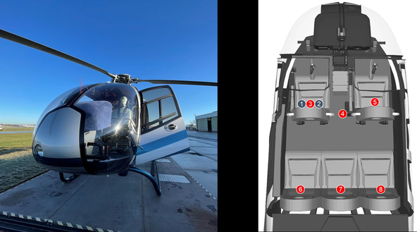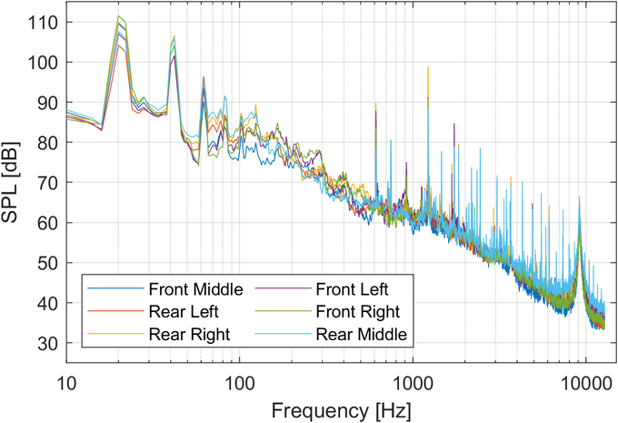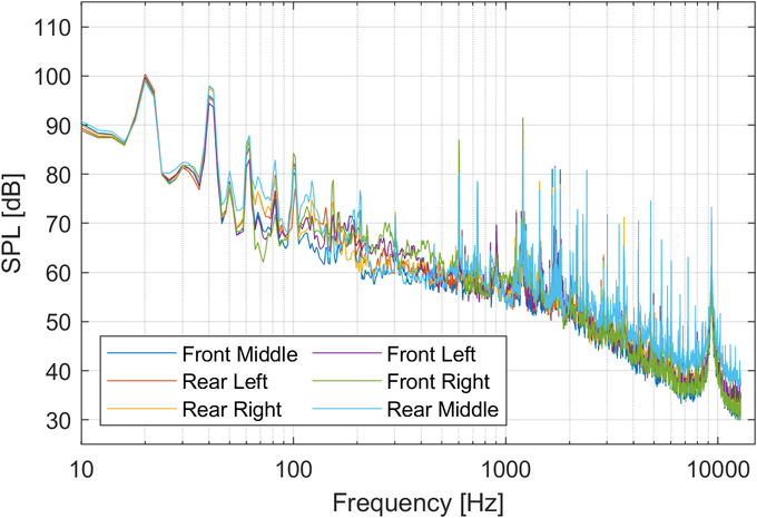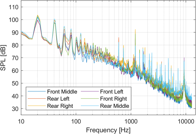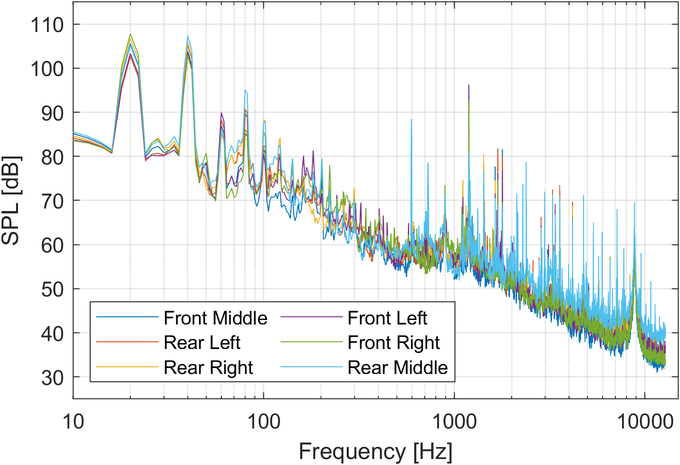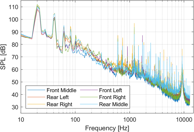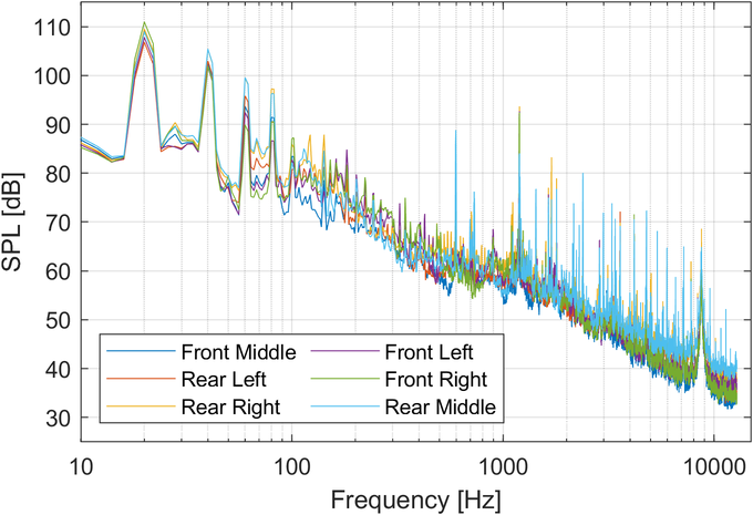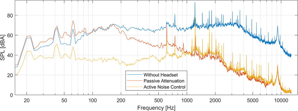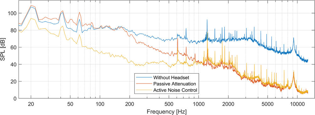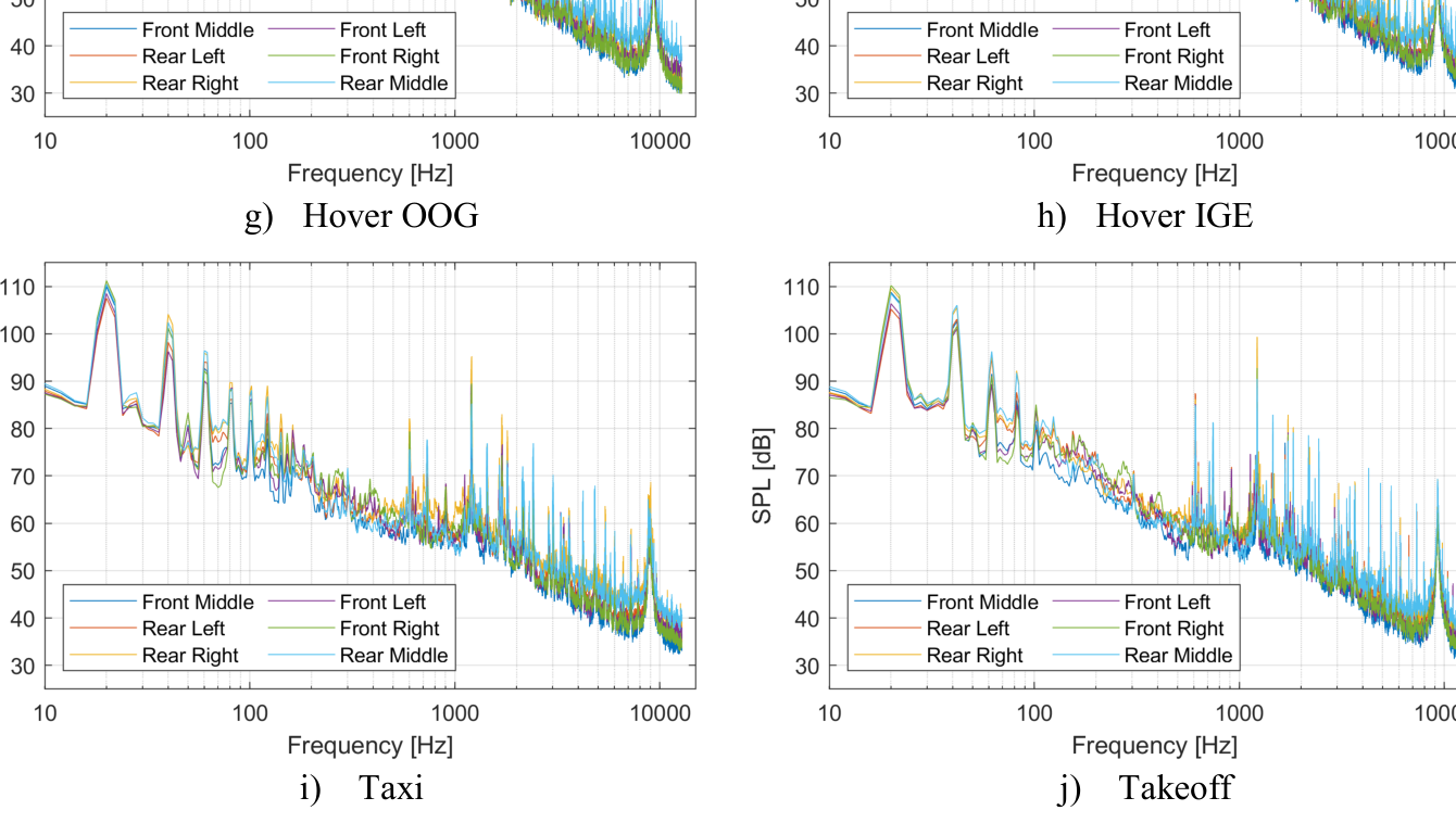 A A A Cabin noise analysis of an H120 B helicopter for active noise control applications Florian Ernst 1 Delf Sachau 2 Helmut-Schmidt-University / University of the Federal Armed Forces Hamburg Holstenhofweg 85 22043 Hamburg, Germany ABSTRACT Helicopter pilots are exposed to high noise levels during flight induced by the rotor, engine and airflow. To reduce this noise exposure, headsets with active noise control functions are increasingly being used. In addition to the passive noise reduction these systems reduce low frequency noise by local destructive interference of the sound waves. The development of active noise control (ANC) systems requires detailed analysis of the acoustic environment, which is rarely available for helicopters. For this reason, sound measurements were taken for different flight parameters on board an H120 B helicopter. Multiple microphones were placed at the crew and passenger positions and in the center of the cabin. In addition, a head and torso simulator (HATS) was placed in the copilot seat to measure the passive attenuation and the ANC performance of a commonly used commercial ANC headset in flight. The results of the analysis provide useful information about the noise characteristics for different flight conditions of the H120 B and identify the most critical noise components. 1. INTRODUCTION Helicopters are widely used for their special ability of vertical takeoff and landing as well as for hovering flight. Due to this capability, they are often used for special operations, such as search and rescue, surveillance and related tasks. With vertical takeoff and landing abilities, helicopters can operate even in urban regions where normal airports can not operate. This however, comes at the price of high noise emission, mainly induced by the helicopter’s rotor and engine. To reduce noise, special designs for helicopters aiming to reduce noise emission have been developed [1-3]. Noise emission is however not limited to the surrounding area but to the helicopter cabin as well. While classic passive dampening can be applied in the helicopter, lightweight construction is very important in aviation applications. For this reason, weight expensive noise reduction measures are not feasible. To counter high noise levels in the cabin, crew and passenger use passive damping headsets. Noise can be further reduced by using active noise control (ANC) headsets, that further attenuate low 1 ernstf@hsu-hh.de 2 delf.sachau@hsu-hh.de tt inter-ncie’” SCOTTISH evENT CAMPUS 3) O , o iLASGOW frequency noise. Even with this measure, noise levels for the passenger are still very high, leading to high risk for hearing loss or damage, especially for daily operating crews [4]. In previous studies a digital active noise control headset has been developed and tested in an anechoic chamber [5]. During the development, estimates of a sound field in a helicopter were used, as detailed analysis of the acoustic environment is rarely available for helicopters. Publications on helicopter sound measurements can be found for example in [4, 6, 7, 8], although these refer to different classes of helicopters and sound files are not available. For this reason, sound on board of an Airbus Helicopters H120 B helicopter was measured during this study using multiple microphones in different positions within the cabin. Different flight parameters were used to show sound spectra for various flight conditions. The Airbus Helicopters H120 B (formerly known as Eurocopter EC120 B) is a small type helicopter with a capacity of up to 6 persons on board, depending on the configuration used. It is powered by a single twin-spool free-turbine turboshaft engine, powering a three-blade main rotor with a diameter of 10.0 m [9, 10]. To counter the main rotors torque, the H120 B is equipped with an enclosed 8-blade anti-torque tail rotor. This arrangement is called Fenestron TM and leads to a reduction of the tail rotor noise due to the special design. The enclosure in the fin allows shorter blades which are operated at higher speeds. During forward flight, the fin helps to stabilize the aircraft thus reducing the necessary tail rotor power and noise [1]. The division into several blades leads to a higher blade pass frequency, while an asymmetrical arrangement of the blades further reduces noise emissions. In contrast to conventional tail rotors with two-blade propellers, this makes the helicopter much quieter for an observer on the ground, since high frequencies are attenuated more over distance. However, the higher blade pass frequency lies in the frequency range that is well perceived by humans. Such a tail rotor is therefore perceived quieter from distance, but louder in the cockpit. In addition to the sound measurements, a widely used commercial ANC headset is used to measure the noise reduction performance and serve as a benchmark, as well as to identify optimization potential for further development. 2. MEASUREMENTS In order to determine the acoustic conditions on board, an H120 B helicopter is equipped with calibrated measurement microphones at 8 positions as shown in Figure 1. These positions include all crew and passenger positions as well as a centered microphone (4) between the front pilots. A Brüel & Kjaer (B&K) Type 5128 head and torso simulator (HATS) is placed in the copilot’s position (1, 2). During flight a widely used commercial ANC headset is placed over the ears of the HATS, to measure the passive reduction and ANC performance of a standard headset. For the acoustics measurements, B&K 4986 omnidirectional Microphones are used. These microphones have a nearly flat frequency response up to 20 kHz. The signals were recorded by a battery powered frame module containing one B&K 3050 and one B&K 3053 LAN-XI-Frontend using a sample rate of 56 kHz. All microphones are calibrated using a Gras 42AP Calibrator. According to ISO 5129:2003-10 [11], all ventilation ports are closed and no external sound sour