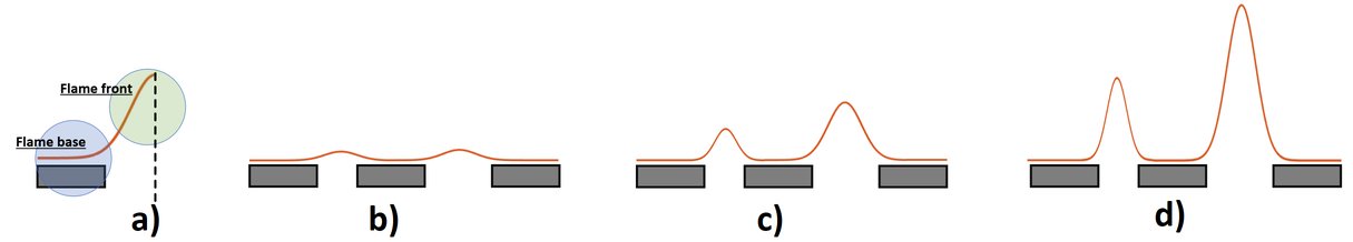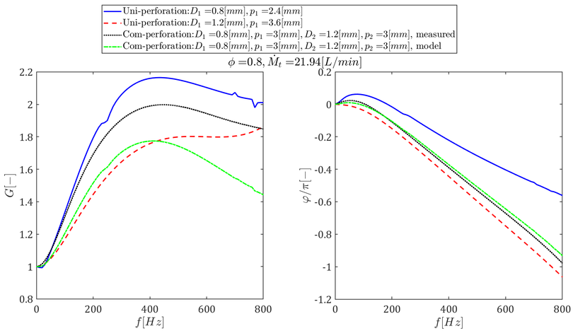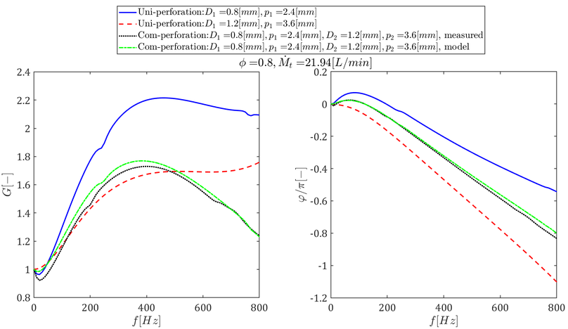 A A A Characterization and identification of thermoacoustic behavior of flames anchored on burner decks with multiple perforations; Transfer Function (de)composition approach Hamed F. Ganji 1 Department of Mechanical Engineering, Eindhoven University of Technology, the Netherlands Viktor Kornilov 2 Department of Mechanical Engineering, Eindhoven University of Technology, the Netherlands Jeroen van Oijen 3 Department of Mechanical Engineering, Eindhoven University of Technology, the Netherlands Ines Lopez Arteaga 4 Department of Mechanical Engineering, Eindhoven University of Technology, the Netherlands Department of Engineering Mechanics, KTH Royal Institute of Technology, Sweden ABSTRACT The appearance of thermoacoustic instability in combustion systems depends on thermoacoustic property (e.g., Transfer Function (TF)) of used burner / flame. Therefore, an attractive approach to cope with the instability is the purposeful design of the burner thermoacoustics. One of the ideas of how the flame TF can be altered / designed is based on the heuristic idea that the acoustic response of one flame can be counteracted by the appropriately phased response of another flame. For the particular case of premixed, burner deck anchored conical flames, the TF depends on the diameter of perforation. It suggests the concept of combining di ff erent size and shape of perforations in one burner deck. In the present work, the acoustic response of sintered ceramic fibre burners with mixed perforation is investigated using the TF (de)composition principle. By this approach, the cumulative flame TF can be represented as a weighted sum of elemental TF’s of the groups of flames on the basis of the additive nature of the individual flame heat release rate. The capability of this principle to o ff er a designing framework for optimization of burner deck patterns aiming desirable acoustic characteristics will be tested by a course of measurements. Possible simplifications and extensions of the TF (de)composition principle will be discussed. 1. INTRODUCTION The thermoacoustic instability arises from a closed-loop feedback between the unsteady combustion and the acoustic modes of the entire system. The acoustic wave disturbs the heat release rate of the 1 h.faghanpourganji@tue.nl 2 v.kornilov@tue.nl 3 j.a.v.oijen@tue.nl 4 i.lopez@tue.nl a slaty. inter.noise 21-24 AUGUST SCOTTISH EVENT CAMPUS O ¥, ? GLASGOW flame, which in turn generates acoustic fluctuations. This phenomenon not only results in loud noise, but can also cause severe physical damage to the equipment. This is still one of the highest risks in the power generation and propulsion industry. Therefore, extensive studies have been conducted to predict and control thermoacoustic instability [1–3]. There are two ways to design this flame-acoustic wave coupling. First, one can adjust the upstream and downstream acoustics in the system-based model by using custom-built silencers / terminators [4]. Second, designing an acoustically stable combustor for the given upstream / downstream acoustics by combining di ff erent sizes and / or shapes of perforations [5]. This design approach is based on the heuristic idea that the acoustic response of one flame type can be compensated or cancelled by other flame types. These two strategies are expected to eliminate thermoacoustic instability. In the current work, However, we focus on the latter to investigate the possibility of such TF superposition. Broadly speaking, many experimental and numerical works have been devoted to the study of the capability of flame / burner TF technique for acoustically compact flames [6–8], and even some analytical models [9–13] have been proposed. One can use these simplified mathematical expressions to identify the key parameters that a ff ect the flame / burner dynamic response. Schuller et al. [9] obtained the acoustic response of a perturbed Bunsen-type flame due to the motion of the flame front motion caused by a uniform and convective velocity perturbation. The accuracy and validity of these models depend on the type of flow disturbance that occurs in the fresh flow. Therefore, Cuquel et al. [10] considered an incompressible divergent free convective velocity perturbation to improve the modeling of the flame front e ff ect. Kornilov et al. [6] studied the role of flame foot motion on flame TF. The result showed a frequency- dependent radial direction of motion of the anchoring point of the flame. Cuquel et al. [11, 14] proposed an analytical TF model of flame foot motion using the Rook model [15,16] for the motion of planar premixed flames stabilized near the burner deck and subjected to acoustic disturbances. They included the e ff ect of flame foot / anchor perturbations induced by an incompressible divergence-free convective velocity perturbation. The contribution of the flame foot motion in combination with the flame front motion (Bunsen-type flame) shows a saturation mechanism of the timee delay at high frequency, which has been validated by a detailed measurement. Despite significant advances in flame TF theory and identification of key parameters in thermoacoustic response of burners, its application in deliberate and systematic design has not received much attention. Kagiya [17] first proposed to select the perforation pattern such that the phase of FT for one group of holes is in antiphase to the TF phase of a second group of holes at the onset unstable frequency. Because of the mutual interaction of the flames and the di ff erence in gain and thermal power of the grouped flames, the idea of phase opposition cannot be fulfilled. However, the idea of TF compensation / cancellation can still work through grouped flames. Kornilov et al. [5] proposed a superposition approach to decompose the TF of multiple groups of laminar Bunsen flames. The cumulative TF was formulated for a particular composite pattern with two di ff erent circular holes and tested experimentally. The a