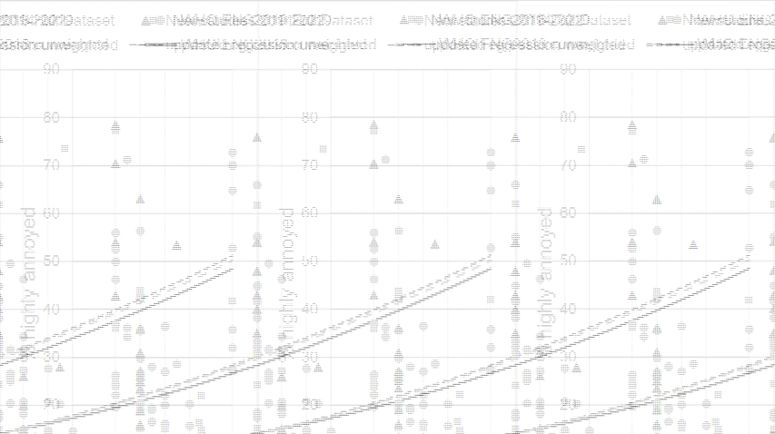 A A A An update to the WHO 2018 Environmental Noise Guidelines exposure response relationships for annoyance from road and railway noise Benjamin Fenech 1 , Sierra Clark, Georgia Rodgers Noise and Public Health team, Radiation Chemical and Environmental Hazards, Science Group, UK Health Security Agency, United Kingdom ABSTRACT The systematic review on environmental noise and annoyance commissioned by the World Health Organization (WHO) to inform its 2018 Environmental Noise Guidelines proposed new aggregate exposure response relationships (ERRs) for transportation noise, based on studies published between 2000 and 2014. A subsequent scoping review commissioned by the UK’s Interdepartmental Group on Costs and Benefits Noise Subject Group identified 12 new studies for road and nine new studies for rail, published between 2014 and 2019, and recommended that an update to the WHO ERRs may be warranted. This paper proposes updated aggregated ERRs for the percentage of people highly annoyed (%HA) from road and railway traffic noise incorporating data from a subset of recent studies, published between 2014-2022, that met certain eligibility criteria. In light of the ongoing debate on the temporal stability of community annoyance (observed or modelled), we also discuss some of the important considerations that need to be taken into account when deciding if and how often a reference exposure-response relationship is updated for policy and practice. 1. INTRODUCTION The World Health Organization (WHO) 2018 Environmental Noise Guidelines (ENG) [1] were informed by systematic reviews of scientific literature on the health effects of noise published between 2000 and 2014/2015. The systematic review for noise annoyance identified 26 studies on road-traffic noise (total of 34,211 respondents), and 10 studies for railway noise (total of 10,970 respondents) published between 2000 and 2014 [2]. The exposure response relationships (ERR) between road and rail traffic noise and annoyance were derived predominantly from studies conducted in Europe and Asia [2]. For the road-traffic noise studies, the authors of the systematic review identified a subgroup of studies from Asia and the Alpine valleys in Austria with several study characteristics that could influence the results: the range of noise exposure levels investigated, housing characteristics linked to ventilation and air conditioning, geographical terrain, and annoyance scale cut-offs used to determine the highly annoyed category. Therefore, two ERRs were presented: one using the full dataset of 26 studies and one excluding five Alpine studies and the ten Asian studies. For the railway studies, a study of highspeed rail (Shinkansen) was excluded from the estimation of an average rail ERR because it differed considerably from the other studies of conventional rail. Since the WHO-commissioned systematic reviews, numerous new studies with a diverse geographical spread have been published. The purpose of this present review and meta-analysis was 1 Corresponding author benjamin.fenech@phe.gov.uk to derive new ERRs between road and railway-traffic noise and annoyance including new studies published between 2014-2022. 2. MATERIALS AND METHODS 2.1. Search for additional studies published between 2014 – 2022 The search for new studies, screening, and extraction of the data occurred in two separate phases. First, a scoping review commissioned by the UK Department for Environment, Food & Rural Affairs (Defra) on behalf of the Interdepartmental Group on Costs and Benefits Noise Subject group (IGCB(N)) and undertaken by van Kamp et al. [3] identified several new studies published between January 2014 and June 2019, which we refer to as the 1 st update. Next, a follow-up search was conducted by the UK Health Security Agency (UKHSA) in February 2022 to find additional studies published between 2019 and early 2022, referred to as the 2 nd update. 2.2. Database search and paper screening A detailed description of the protocol for searching through bibliographic databases and title and abstract screening of retrieved papers for the 1 st update can be found in van Kamp et al. [3]. In brief, Scopus, MEDLINE (PubMed), EMBASE, and PsycInfo bibliographic databases were searched in the Spring/Summer of 2019. Search terms followed the protocol of the WHO evidence reviews as much as possible (see Table 1). All retrieved Dutch, English, French and German papers were screened independently by two researchers for relevance to the topic (based on the search protocol), and papers that did not match the inclusion criteria were excluded. Table 1. S ear ch profile (adapted from [3]). 1 Published or Accepted Papers in Peer-Review Journals 2 Published papers in conference proceedings 3 Individual studies (no reviews, meta-analyses or “commentaries”) 4 Language: Dutch, German, English and French 5 Population: General population 6 Setting: Environmental exposure at home (No exposure to noise in occupational setting nor in health care setting (e.g., hospital)) 7 Study design: Study design: observational studies only (No experimental studies following the WHO protocol) 8 Relevant outcome: Annoyance (s pe c if ically highly annoyed) The UKHSA conducted an additional search in early 2022 to identify English language studies published between 2019 and 2022. The search protocol followed the same procedures as the 1 st update (See Appendix 1 for search terms), with the exception of the language requirement. The search and study selection process was documented for the 2 nd update by following the PRISMA reporting method (Appendix 2) [4]. 2.3. Full text screen and eligibility criteria For consistency with the WHO-commissioned systematic review [2] and guidelines [1], studies were screened in the 1 st and 2 nd update for inclusion based on the following criteria: (1) Study type: cross-sectional or longitudinal surveys, using an explicit protocol for selecting respondents. (2) Participants: Stu