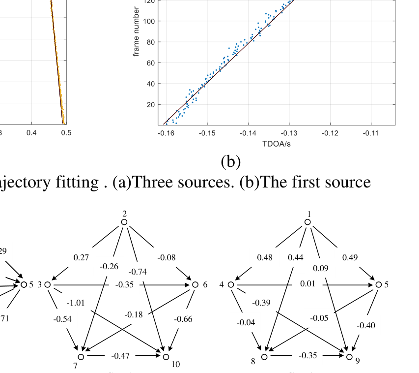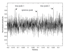 A A A A Multiple Target Data Association Method for TDOA Passive Localization Miao Feng 1 Key Laboratory of Underwater Acoustic Signal Processing of Ministry of Education Southeast University, Nanjing, 210096,China Shiliang FANG 2 Key Laboratory of Underwater Acoustic Signal Processing of Ministry of Education Southeast University, Nanjing ,210096,China Hongli Cao 3 Key Laboratory of Underwater Acoustic Signal Processing of Ministry of Education Southeast University, Nanjing ,210096,China ABSTRACT To solve the problem of multi-target data association in an underwater acoustic passive positioning system, a new algorithm focused on data association of Time Difference of Arrival (TDOA) is studied. Firstly, the TDOA trajectory is modeled as a linear function. According to the continuous measurement values within a certain period, the expectation maximization algorithm based on the gaussian mixture model is used to fit the TDOA trajectory. Then TDOA measurements that come from the same acoustic source are associated based on zero cyclic sum condition. A quality factor is defined to measure the correct association probability. Finally, simulation results show that the method proposed in this paper can effectively solve the TDOA measurement association problem, and can be used for subsequent source locations. 1. INTRODUCTION The localization of underwater acoustic sources is an active research field, which has been applied in the fields of marine environment detection and exploitation. Among them, there are many researches on multiple targets data association but mainly focus on using azimuth information obtained from direction finding to locate targets, while there are few researches on data association using TDOA directly. In terms of multi-target localization based on TDOA Claudio et al. employ the ROOT-MUSIC algorithm and estimate source positions by clustering of raw TDOA estimates [1]. This technique requires several frames of data to get a consistent cluster. Claudio et al. show This work was supported in part by the Fundamental Research Funds for the Central Universities under Grant No. 2242021k30019, in part by the Belt and Road Fund on Water and Sustainability(Hydro-Lab, Hohai University & Nanjing Hydraulic Research Institute) under Grant No. 2021490811, and in part by the National Natural Science Funds of China under Grant Nos. 91938203. 1 230189078@seu.edu.cn, 2 slfang@seu.edu.cn, 3 honglicao@seu.edu.cn that cluster centers are robust estimates of source locations. Lee et al. considered all delays corresponding to the threshold GCC-PHAT as candidates. A conditional data likelihood model based on a measurement hypothesis is implemented by the particle filter [2]. This method can be applied to initialize the source location. Scheuing and Yang [3] consider the conditions that TDOA from the same source must meet, such as the zero cycle sum condition and the grating condition, to eliminate invalid TDOA combinations before positioning. This paper proposes an algorithm to locate multiple underwater targets. According to the time continuity of TDOA, the expectation maximization algorithm based on the Gaussian mixed model is used to fit the trajectory of TDOA measurement values among sensors. After obtaining multiple TDOA trajectories, it is required to correctly associate TDOA data with different sources for target positioning. The zero cyclic sum condition based on TDOA trajectory is used to evaluate the possibility that TDOA values of different sensor pairs are from the same target. According to the evaluation results, a method similar to DATMM is applied to associate multi-target TDOA [3]. 2. SIGNAL MODEL We assume N acoustic source targets and M sensors are distributed in a certain area, as shown in Figure 1. Assuming that there is no multipath effect caused by reflection, the signal received by the sensor u is given by N = = − + = (1) u u i i u i u i x t A S t n t u M , , 1 ( ) ( ) ( ) , 1,2,..., where ( ) i S t is the signal of source i , , u i A is the attenuation factor from source i to sensor u , ( ) u n t is the environmental noise. The TDOA between sensor u and sensor v for source i is , , , uv i u i v i = − (2) sensor u , u i source i , v i , u j v sensor , v j , w i , w j source j w sensor Figure 1:Assuming N acoustic sources and M sensors We use the classical GCC method to estimate the TDOA between sensor u and sensor v . Since there may be true peaks and spurious peaks at the same time due to the existence of noise, a conservative threshold is used to extract TDOA in order not to lose the true peaks. 1 ˆ ˆ { : } uv uv uv R = (3) where uv R is generalized cross correlation and 1 is the threshold. Usually, the number of TDOA extracted is greater than the number of targets. 3. MULTIPLE TARGET TDOA DATA ASSOCIATION Due to the influence of environmental noise and measurement error, the TDOA measurement is not always accurate, and the corresponding relationship between TDOA measurements and specific target is ambiguous in the case of multiple targets. Considering these two factors, multi-target localization is divided into two parts. The first step is to find the correct TDOA trajectory, and the second step is to associate multiple TDOA trajectories obtained in the first step with the target. 3.1. TDOA Trajectories Fitting of Multiple Sources Studies show [4] that although sometimes there is no peak at the real TDOA, the distribution of the real peak is relatively stable over a period, while the spurious peak caused by noise is randomly distributed, as shown in Figure 2 and Figure 3. Hence, although not all the TDOA values we extracted in the previous section are correct, we can still use the time stability of the real TDOA peak to extract the TDOA trajectory as a whole. Figure 2: Cross-correlation between sensors Figure 3: TDOA trajectory We model the TDOA trajectory as a linear function which is a valid approximation in the case of slow target movement or short time interva
