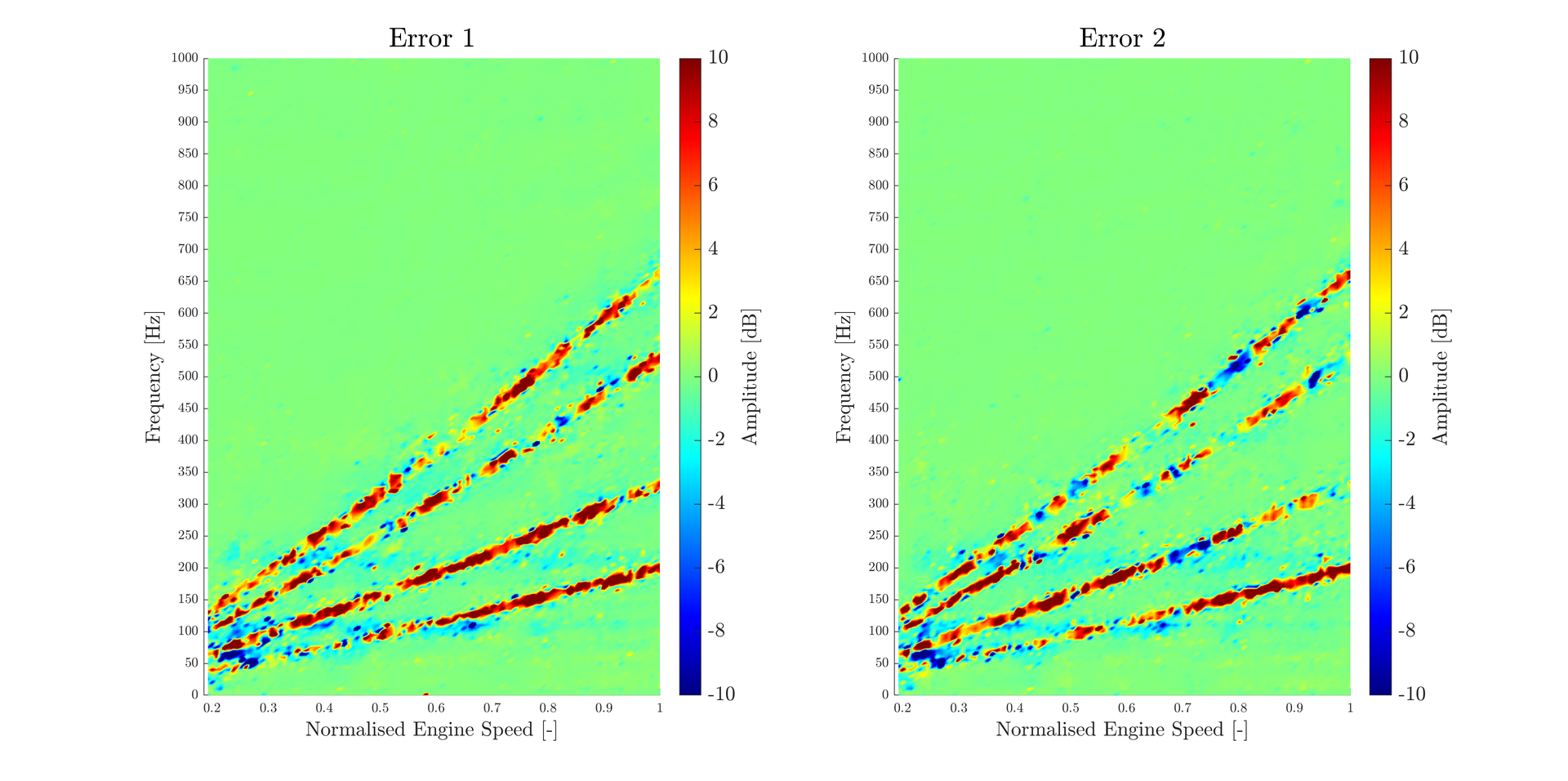 A A A Engine Order Cancelation in a super sports car cabin Cesare Lupo Ferrari 1 Department of Mechanical Engineering, Politecnico di Milano Via La Masa,1, 20156 Milano, Italy Jordan Cheer 2 Institute of Sound and Vibration Research, University of Southampton Southampton, SO17 1BJ, UK ABSTRACT Active Noise Control (ANC) has been used in several systems to improve acoustic performance while avoiding increases in the size and weight required by passive noise control solutions. This paper considers an ANC application aimed at controlling the sound field in the cabin of a super sports car with a naturally aspirated engine. This work studies the performance of a system that employs microphones and loudspeakers in the car cabin and uses a reference signal obtained from CANbus data. The controller exploits a multichannel, multi-order Fx-LMS algorithm to control the sound only in the region surrounding the driver’s ears. Due to the nature of the car, this ANC application provides an interesting and challenging case study because of the rapidly changing acoustic excitation provided by the engine. The paper therefore describes a system for noise reduction, focusing on engine order reduction, aiming at achieving control during the most representative manoeuvre known as the “Wide-Open Throttle” (WOT). The investigated controller - acting locally and only on some orders simultaneously - shows good sound attenuation over the entire spectrum, with peaks of reduction exceeding 10 dB, and achieving a 5% overall decrease in the loudness, which is calculated according to ISO 532-1. 1. INTRODUCTION Passive noise control treatments are an e ff ective way to attenuate the noise that humans experience in various environments. However, because of weight and size constraints, their e ffi ciency is often limited to noise reduction at high frequency range. Active Noise Control (ANC) has been extensively researched to overcome this constraint and obtain high levels of low frequency noise reduction [1–3]. Active control systems eliminate undesirable disturbances by introducing secondary sources that provide extra noise to attenuate the primary noise. Active control has been proven to be e ff ective in a range of technical applications where the acoustic feeling is crucial [4, 5]. In the maritime environment, for example, low frequency tonal noise created by generators in the master cabin has been successfully suppressed using a feedforward active noise control system [6]. Active control 1 cesarelupo.ferrari@polimi.it 2 j.cheer@soton.ac.uk a slaty. inter.noise 21-24 AUGUST SCOTTISH EVENT CAMPUS O ¥, ? GLASGOW technology has been used to, e.g., reduce fan noise [7], tonal noise induced by propellers in aircraft [8], sound radiation from a helicopter transmission [9], and actively isolated headphones [10]. The application of active control in a car has been studied previously both from the point of view of road noise reduction [11–13] and engine noise attenuation [14–16]. This paper investigates the implementation of ANC system to attenuate the noise produced by the engine in a super sports car, with the specific aim of creating a quiet region surrounding the driver’s ears. In this work, an adaptive feedforward control system is used to control the noise in the cabin under a specific driving condition, i.e., a ramp-up manoeuvre. This manoeuvre provides a good characterisation of the vehicle’s behaviour, with the engine revolutions increasing from low speed, around 800 rpm, up to speed well above 7000 rpm over a time period of 10 seconds. In the automotive field, research usually starts from static manoeuvres, such as constant speeds, and then goes on to test the algorithm’s performance during dynamic manoeuvres such as a "Wide- Open Throttle" (WOT) that better characterise vehicle behaviour. So far, researchers have analysed and studied passenger cars, such as small cars [14,16,17] and SUVs [15], which are all cars with slow dynamics. This paper, to the best of the authors’ knowledge, presents the first attempt to implement an active control system in a super sports car, characterised by a naturally aspirated engine, very rapid and sudden changes in engine speed; thus, it presents an interesting challenge in terms of controller stability and performance. The introduced system is based on a feedforward control architecture, since a reference signal can be straightforwardly derived from an engine tachometer. The paper investigates the application of a multi-tonal feedforward system to control the time-varying sound produced in the cabin of a super sports car by the engine. The car noise issue is discussed in Section 2. Section 3 describes the feedforward active noise control algorithm, and Section 4 presents the system’s performance in terms of both attenuation and perceived loudness reduction. Finally, section 5 presents the conclusions. 2. SUPER SPORTS CAR ENGINE ORDER CONTROL PROBLEM The car selected for measurement and testing is a two-seat super sports car powered by a naturally aspirated engine. The longitudinal engine is in a mid-rear position. In order to highlight the acoustic excitations and their variability over time, a manoeuvre has been chosen for the study reported in this article: a WOT manoeuvre, i.e., a ramp up. Figure 1 shows the configuration of the control system: on the left of the figure, the location of the instrumentation in the actual vehicle is depicted; on the right, the figure shows the block diagram of the control system. From the block diagram, it can be seen that the algorithm has three inputs (two microphones and data from the engine, indicated in Fig. 1 as e 1 , e 2 and x respectively) and two outputs (two loudspeakers, indicated in Fig. 1 as u 1 and u 2 ). In fact, the ANC system consists of two error microphones – positioned at the driver’s ears –, two 4-inch loudspeakers – positioned inside the doors – and, finally, the system takes the digital signal 