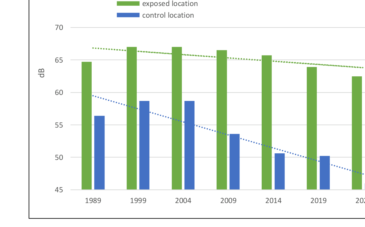A A A Environmental Noise Annoyance Trends in Selected Locations in Bratislava Ľubica Argalášová 1 , Alexandra Filová 1 , Katarína Hirošová 1 , Martin Samohýl 1 , Jana Babjaková 1 , Lenka Matejáková 1 , Jana Jurkovičová 1 1 Institute of Hygiene, Faculty of Medicine, Comenius University, Bratislava, Slovakia, Špitálska 24, 813 72 Bratislava, Slovakia ABSTRACT The rapid development in traffic density and the economic transformation since 1989 has brought new problems concerning road traffic noise in Slovakia. The aim is to follow the time trends of noise annoyance in monitored localities in Bratislava at time intervals of 10, 20, and 30 years. We used the validated methodology for subjective assessment of noise annoyance in young and healthy individuals, as well as a method of objectification by direct measurement of sound levels. Respondents (n=3,675) were university students, living in the exposed and control dormitories representing a homogenous sample. The sharp increase in traffic noise burden in the exposed area was found at the first 10-year interval (1989–1999) (L Aeq =67.5 dB). A slight decrease occurred in 2019 up to L Aeq =63.9 dB and during lockdown due to COVID-19 pandemic it dropped to L Aeq =62.5 dB. A sharp increase in road traffic noise annoyance was observed in the first 10-year interval (OR MH =2.56 (95 % CI=1.93–3.42) vs 6.01 (95% CI=4.97–7.95) with a slightly decreasing trend in 2020-2021. An increase in noise annoyance from entertainment facilities was observed as well. Despite a slightly declining trend, road traffic noise annoyance is still an important issue and there is a need for preventive measures to reduce such exposure in residential areas. 1. INTRODUCTION The harmful effects of noise on human health and development have been underestimated for a relatively long time. This may be due to the fact that noise endangers human health in an indirect manner, as opposed to other harmful substances in the workplace or environment. However, noise is pervasive in everyday life and can cause both auditory and non-auditory health effects [1, 2, 3]. Environmental noise has traditionally been dismissed as an inevitable fact of life and has not been targeted and controlled to the same extent as other health risks. A growing body of research linking noise to adverse health effects coupled with proactive legislation, primarily in the EU, is now driving change [2, 4]. Environmental noise has often been referred to as the ‘forgotten pollutant’ but is now recognised as an environmental and public health issue which needs to be addressed in modern society [2, 3, 4]. Around 56 million people (54%) in the European Union live in places with more than 250 000 people, and they are subjected to road traffic noise of more than the average L DEN (day- evening-night) 55 dB per year, which is regarded health-threatening [2, 3]. According to the WHO, at least 1 million healthy life years (disability-adjusted life-years) are lost each year due to environmental noise in high-income European States (population around 340 million people) [2, 5]. More specifically, an estimated 113 million people are affected by long-term day-evening-night traffic noise levels of at least 55 dB. In addition, 22 million are exposed to high levels of railway noise, 4 million to high levels of aircraft noise and less than 1 million to high levels of noise caused by industries [3]. Annoyance is the most prevalent community response in a population exposed to environmental noise. It is a psychic condition that occurs at involuntary perceptions of the effects or at subordination to circumstances to which the individual has the attitude of rejection, because they break his/her privacy, hinder the implementation of the activities or affect the quality of rest. The response are the feelings of resistance, irritability and, in some cases, psychosomatic disorders [1]. The level of noise annoyance, together with noise sensitivity are often used as the indicators of noise exposure in relation to extraaural (non-auditory) noise effects (especially in cardiovascular system) [6]. The adverse effects on sleep belong to the other adverse effects of noise. Noise alters not only the sleep quality but also the physiological response of the organism in the form of changes in blood pressure, heart rate or respiratory rate. With insufficient sleep the other symptoms are subsequently joined: difficulties to concentrate, fatigue, mood swings, headaches, etc. As several studies show, even when the man seems to get used to noisy surroundings, the actual adaptation of the organism to noise is not even after many years [1, 2, 7, 8, 9]. Sleep disturbance by noise (especially from road traffic) is the most serious environmental burden of disease, representing 903,000 disability-adjusted life-years (DALYs) [1, 2]. In Slovakia, the rapid development in traffic density connected with the economic transformation since 1989 has brought new problems in relation to environmental noise, particularly road traffic noise. The aim of the study is to follow the time trends of noise annoyance in long-time monitored localities in Bratislava at time intervals of 10, 20, and 30 years. We also focused on the situation during the global COVID-19 pandemic in the given locations. 2. MATERIAL AND METHODS In this study, we follow the time trends of noise load of selected population groups in Bratislava agglomeration at different time intervals (10, 20, 30 years). In addition to the overall degree of annoyance from different sources of environmental noise, we follow sleep disturbance and interference with various activities during the day, evening and night. We used the validated methodology for the subjective assessment of "annoyance" and psychosocial well-being, as well as the objectification of noise levels by direct measurement method using sound level analyzer with a module for frequency analysis. Statistical and epidemiological analyses