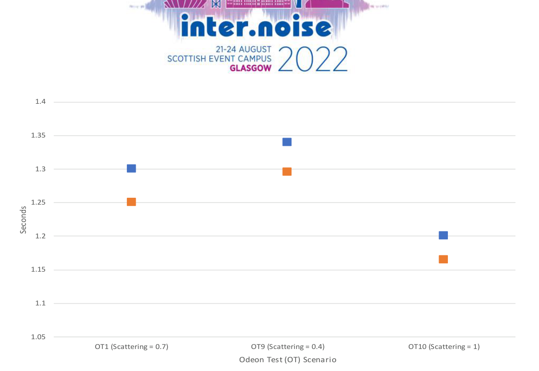 A A A USING NON-WAVE BASED MODELLING TO EXPLORE HOW MUCH ACOUSTIC DIFFUSION IS TOO MUCH IN A CONCERT HALL Michael Fort 1 London South Bank University 103 Borough Rd, London SE1 0AA ABSTRACT This report explores the relationship between acoustic surface diffusion and acoustical character in concert halls by using non-waved based modelling. Measurements were undertaken in a small con- cert hall to use as a baseline, which is then transferred into ODEON to experiment with the acous- tic parameters further. Using the ODEON modelling results, the relationship between amount of diffusion vs scattering coefficient to achieve optimal objective parameters in a concert hall accord- ing were visualised. These trends were then tested on existing famous concert hall models, e.g. Musikvereinssaal. The experiments showed that when considering how much diffusion is too much in a concert hall, the statistical amount of diffusion is less of a factor, when compared to retaining strong early re- flections from side walls and ceilings and the amount of scattering provided by diffuse surfaces. For example, a hall with a high amount of diffusion, can still be a subjectively “good” hall, if it still has strong early reflections on the side walls and ceilings, when compared to a hall with geometry that does not provide strong lateral reflections. 1. INTRODUCTION This paper explores the relationship between acoustic surface diffusion and acoustical character in concert halls by using geometric modelling. Measurements were undertaken in a small concert hall to use as a baseline, which is then transferred into ODEON to experiment with the acoustic parameters further. Using the ODEON modelling results, the relationship between amount of diffusion vs scat- tering coefficient to achieve optimal objective parameters in a concert hall according were visualised. These trends were then tested on existing famous concert hall models. 2. EXISTING KNOWLEDGE 2.1. Diffusion in Auditoria In concert halls and performance spaces, acoustic diffusion is an important aspect of the room. It will provide diffuse reflections across all angles, reducing unwanted strong reflections or focusing. How- ever, in modern concert hall design, there is more and more diffusion being added, with some new halls having almost all surfaces diffuse, such as the Elbphilharmonie in Hamburg. Recent research has shown that engaging concert hall acoustics are made up of temporal envelope preserving reflec- tions, which means that rooms are identified by the strong early reflections 1 . This relies on the early acoustic signature of the hall and less on the diffuse and reverberant sound field. Therefore, too much surface diffusion can reduce the effect of this early acoustic signature, which in turn can make the acoustics of the hall less engaging. 1 fortm@lsbu.ac.uk worm 2022 Reflections from textured surfaces at least partly follow Lambert’s law of reflecting acoustic energy to all directions irrespective of angle of incidence. They therefore tend to “hold” acoustic energy close to the stage, as surfaces closer to the stage more strongly irradiate than surfaces further away 2 . When measuring in real halls however, a decrease in variation of reverberation time with increased diffusion is shown. Conversely, a higher variation in sound strength, relating to source-receiver distance, when there is an increase in diffuse surface texture. Measurements of both speech and sound were undertaken by Wettschurek in the 1970s, testing the perception thresholds of early reflections using a binaural virtual acoustics system 3 . Wettschurek’s research showed that when the perception threshold measurements were being undertaken, reflections at different delay times and directions had very different subjective effects 3 . Additionally, the overall listening level had an influence on the subjective quality, even when the reflection level was close to the perception threshold 4 . An example of this is during a musical crescendo, the side reflections are more perceivable than the frontal or rear reflections. Therefore, this research is consistent with the listening experience, and that concert halls lacking lateral reflections also typically exhibit poor dy- namic spatial responsiveness 4 . This is a prime example of too much diffusion in a concert hall being a negative feature, as the early reflections will not be as strong as the reverberant and diffuse sound field. On the other hand, in Mike Barron’s research he states that overall, the diffuse sound field with a suitable reverberation time is likely to offer good acoustics 5 . However, subjective diffusion (i.e., envelopment in the listeners position) and good values for strength and clarity can be achieved in other ways, without need the space to be physically highly diffuse 5 . 2.2 Simulating Diffusion in Computer Models In order to easily predict and design a hall with regards to diffusion, computer models can be used. Computer models have been used in this research using data based on physical measurements taken in the small concert hall. Ray-based methods such as ray tracing and radiosity are considerably faster and less computationally expensive than wave-based methods. However, the negatives include the loss of accuracy in low frequencies and the wave nature of sound demonstrated in phenomena (e.g., diffraction) not being considered 6 . The ray tracing method uses a large number of particles, which are emitted in various directions from a source point. These particles are then traced across a room, and lose energy at each reflection, dependent of the absorption coefficient of each surface 7. 2. 2.1 ODEON modelling The ODEON computer model for acoustics in auditoria is intended for use both in design (by quickly predicting room acoustical indices) and in research (by forming the bases of an auralisation system and promoting the study of various phenomena in room acoustics). Both conflicting demands use