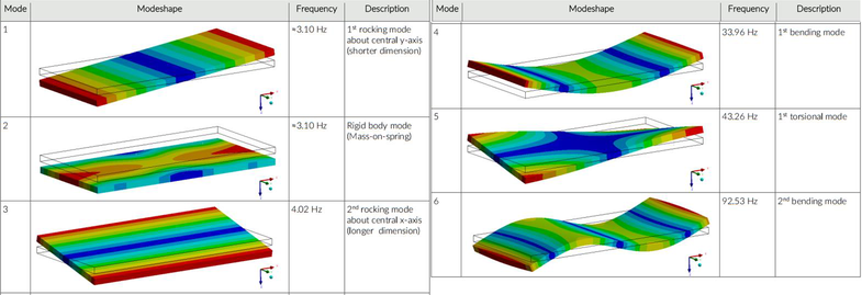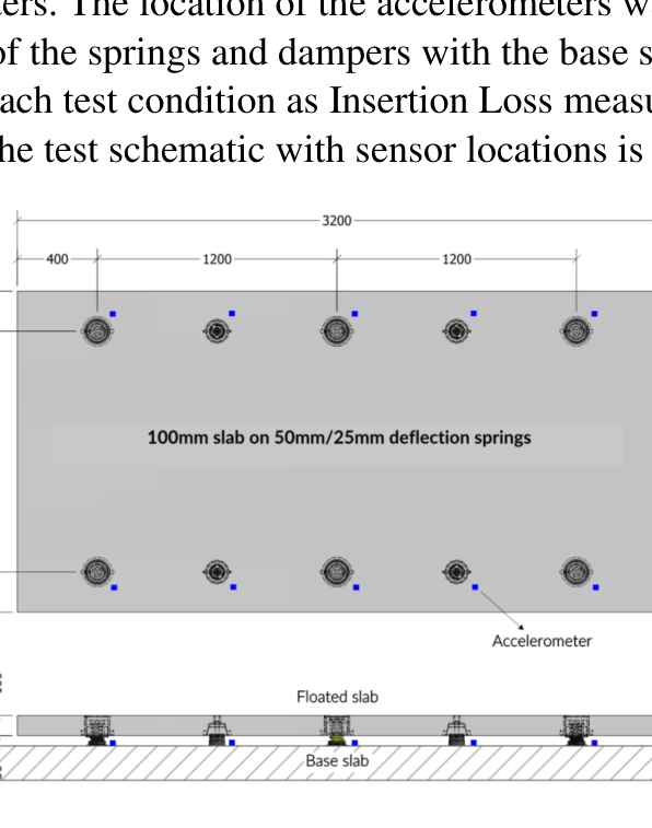 A A A Characterisation testing of floating floor systems under impact conditions Adam Fox CEng MIMechE AMIOA 1 Mason U.K. Ltd Unit 6 Abbey Business Park Monks Walk Farnham Surrey GU9 8HT ABSTRACT Characterising the nature of vibration produced by impact events from sporting activities remains a challenge. The variables of the impactor, isolation measures and response of the supporting structure inherently make this and prediction of resultant noise levels a significant challenge. This paper presents research into the performance of floating floor systems. Under several excitation events such as weight drops and treadmill activity, the behaviour of the floating floor was characterised through generation of a validated finite element model. The insertion loss of the system was confirmed through extensive testing for a wide range of typical gymnasium activities. The effect of floor dampers and use of covering layers was also investigated. This paper presents these results which provide a validated understanding of how varying the nature of the impact generating activity affects floating floor insertion loss and how the floating slab responds dynamically to impact. This information provides data suitable for extrapolation to other installations, which is highly sought by industry to predict the implication of gymnasia installations. 1. INTRODUCTION 1.1 Typical gymnasia activities can generate significant impact forces, which can cause unwanted noise elsewhere in a building. This is a common problem, especially for residential developments with gyms adjacent to living areas. It is also common to see gyms installed in existing buildings which were not designed for the purpose. 1.2 Most gym activities are formed around energetic activities such as running, cycling, the dropping of weights. Energy from these and other activities impart impulsive energy into the floor which, if not controlled, can cause a vibration which reradiates as noise. 1.3 There are tried and tested methods of controlling impact noise on the market, but all have implications to the end client and selecting the most efficient solution can be difficult because of inherent complexities; the performance is dependant on not only the activity but the specific structural response to that activity. The nature of the existing structure is a very significant variable, rendering most generic test data ineffective. 1 adam@masonuk.co.uk 1.4 Mason Industries have been designing and installing isolating floating floors in gymnasia for decades and there is a catalogue of data illustrating reductions in noise which can be achieved. However, applying prior data to new projects without knowledge of the underlying structure cannot be done, plus site testing has further uncertainty due to size of the test surface and constrained air effects. 1.5 Tests on a representative floating floor were commissioned to better understand the underlying dynamics, with a view to producing a validated dynamic model. This paper describes the testing carried out and results which provide a route to a prediction model, the ultimate aim of which is to provide certainty on the isolation provided for future projects through the use of a scalable and validated model. 2. BACKGROUND TO REQUIREMENT 2.1 The principle of isolating noise and vibration from gym activities is one of physics. The isolation system used needs to attenuate frequencies of energy which would otherwise excite or be carried by the structural slab into other structural elements. Ultimately, any employed attenuation measures should be sufficient to avoid risk of disturbance elsewhere in the building. 2.2 The principles of impact isolating floors have been established for decades. Structural floors can be made stiffer and thicker to make them less responsive to impact, but this adds mass and cost which is inefficient relative to the acoustic benefit. Introducing a separating air gap tremendously increases isolation, far more than can be achieved with a much thicker structural slab saving space, materials, and cost. Supporting a floating floor with correctly compressed and selected isolators results is key to a well performing system explained by the physics of transmissibility. 2.3 The criticality of the air gap is why most clients insist on a jack-up system which involves constructing the floor directly on the structural floor and ‘jacking’ once cured. This provides certainty of the correct air gap, removal of formwork layers susceptible to humidity and the ability to adjust the compression of every isolator irrespective of floor level. 2.4 Test data are well established for projects focussed on the control of audible sources, such as cinema, studios, and entertainment venues. Jack-up floating floors using natural rubber isolators are highly effective as natural frequency of support can be achieved below 10Hz, transmissibility theory shows that isolation will begin at √2 above the natural frequency so well below the threshold of hearing. Dynamic stiffness of the isolators is key, needing to be part of the calculation of natural frequency. 2.5 All elastomeric isolators, including natural rubber isolators using a low dynamic stiffness formula have damping which introduces slight lag on response. This is a functional limitation under impact since the duration of a pulse is small, meaning common for energy at lower frequencies to be amplified while higher are damped. Since this commonly marries with structural response frequencies switching to undamped springs reduces this effect. worm 2022 2.6 However, the stiffness of the supporting structure still dominates. Physical testing removes some risk but a method of predicting performance is not currently viable. For this reason, Hoare Lea were approached to carry out characterisation testing of a floating floor with an ultimate aim of producing a scalable and validated prediction method. 3. DESIGNING THE RESEARCH 3.1 Testing was carried out at in the bas