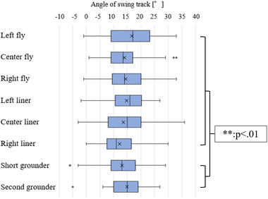 A A A Differences in acoustics characteristics of hitting sounds in baseball games Ryohei Futamura 1 Satoshi Miharu 2 Koji Nitta 3 Kanagawa Institute of Technology 1030 Shimo-ogino, Atsugi, Kanagawa, JAPAN Takahiro Miura 4 National Institute of Advanced Industrial Science and Technology (AIST) 6-2-3 Kashiwanoha, Kashiwa, Chiba 277-0882, Japan. Mari Ueda 5 Kanagawa Institute of Technology 1030 Shimo-ogino, Atsugi, Kanagawa, JAPAN ABSTRACT In sports, athletes use visual and auditory information to perform full-body exercises. Some studies reported that auditory information is an essential cue for athletes: They utilized auditory information to predict ball behavior and determine body movements. However, because athletes instinctively use situation-related sounds, there is no systematic methodology to improve auditory-based competitive ability. Few studies attempted to approach the utilization of sound in games from the perspective of acoustics, and the functional acoustical features have not been quantitatively revealed. Therefore, the objective of this study is to clarify the acoustical characteristics of auditory information to max- imize its utilization in baseball games. In particular, to analyze the acoustical features of batted ball sounds that enhance defensive skills, we conducted acoustic measurements of batted ball sounds in realistic situations. The results showed that the peak gain values of fly and liner batted balls were greater than those of grounder, and the frequency components included in the hitting sound were also different among them. 1 s2185016@cco.kanagawa-it.ac.jp 2 s2185017@cco.kanagawa-it.ac.jp 3 nita@kait.jp 4 miura-t@aist.go.jp 5 m-ueda@ic.kanagawa-it.ac.jp worm 2022 1. INTRODUCTION Sounds related to baseball games mainly include hitting sounds, catching sounds, and cheers. In sports, athletes use these various sounds to determine body movements and predict ball behavior. For example, when Shigeo Nagashima coaches Hideki Matsui over the phone, he hears only the sound of his swing and decides whether it is a good swing or a bad swing. In addition, Shohei Ohtani states that he is using sound potentially, and Ichiro says that "the sound of hitting is an important judgment factor". In this way, there is a need for professional athletes to utilize sound in sports, and auditory information such as sound is considered to be an important source of information and judgment ma- terial in sports. However, athletes often use sound sensuously, and measures to improve competitive- ness regarding sound use are not systematized. Therefore, there are few research examples that ap- proach from sound such as acoustic characteristics, and it has not been clarified quantitatively. The authors have reported on the relationship between the analysis of hitting sounds and movements in baseball competitions, and the practical use of auditory information [1-3]. As a result, it was sug- gested that sound may be utilized if the number of years of experience is long. The purpose of this study is to continue to make the best use of auditory information in baseball games and to obtain scientific knowledge for practically improving competitiveness from the sound of hitting a ball. In the previous report [4], acoustic measurements were taken at three points: 3 m behind the home base of the outdoor stadium, on the second base, and 100 m in front of the home base. In this paper, in order to clarify the acoustic characteristics of the hitting sound due to the difference in the defensive position of the outfield, the acoustic measurement of the hitting sound for 49 active baseball team members at the left, center, and right, which are the defensive positions of the outfield. Was carried out. 2. Measurement outline worm 2022 Figure 1 shows the measurement points. The measurement location is Kanagawa Institute of Tech- nology KAIT Stadium. The recording points are Point L (left): 75 m left front from the home base, Point C (center): 100 m forward from the home base, and Point R (right): 75 m right front from the home base. Figure 1: Measurement outline diagram 3m Polat PL 10m Point © 3m Poiat R 2.1. Measurement equipment A PCM recorder (Roland, R-07) and a precision sound level meter (RION, NL-52) were installed at each measurement point 1 m above the ground (fs = 96 kHz, 16 bit). Furthermore, in order to measure the ball speed, swing speed, swing trajectory, and swing angle, a speed gun (TOA, HP-2) is installed 3 m behind the home base, and a swing meter (GARMIN x SSK, IMP001) is installed at the grip end of the bat. Was attached. The ball was a rigid ball (MIZUNO), the bat (YANASE, YUM-056) was 84.5 cm, and a 900 g wooden bat was used. 2.2. Measurement participants There are 49 male members of the Kanagawa Institute of Technology baseball club (average years of experience: 12 years) who belong to the first part of the Tokyo Metropolitan Area Baseball Federa- tion. Participants stood at bat one by one and had them batting with 10 balls per person as a guide. 3. Measurement result The recorded hit balls were classified into eight types: left fly, center fly, right fly, left liner, center liner, right liner, short ground ball, and second ground ball. Table 1 shows the results for 41 valid data (right-handed: 38, left-handed: 3) by hitting type and hitting direction. Of the total number of hits of 334, fly: 179, liner: 79, ground ball: 76, and the average pitching speed was 92.6 km / h. Table 1 Number of hits by hit type / direction Category Direction Frequency Left fly 38 Fly Center fly 80 Right fly 61 Left liner 34 Liner Center liner 20 Right liner 25 Short grounder 49 Grounder Second grounder 27 3.1. Eight types of hit balls and differences in noise level at each point Table 2 shows the results of the Tukey test to see if there is a difference in sound pressure level due to the difference in defensive position for each of the eight types of hitting sounds. As a result, there was a significant differ